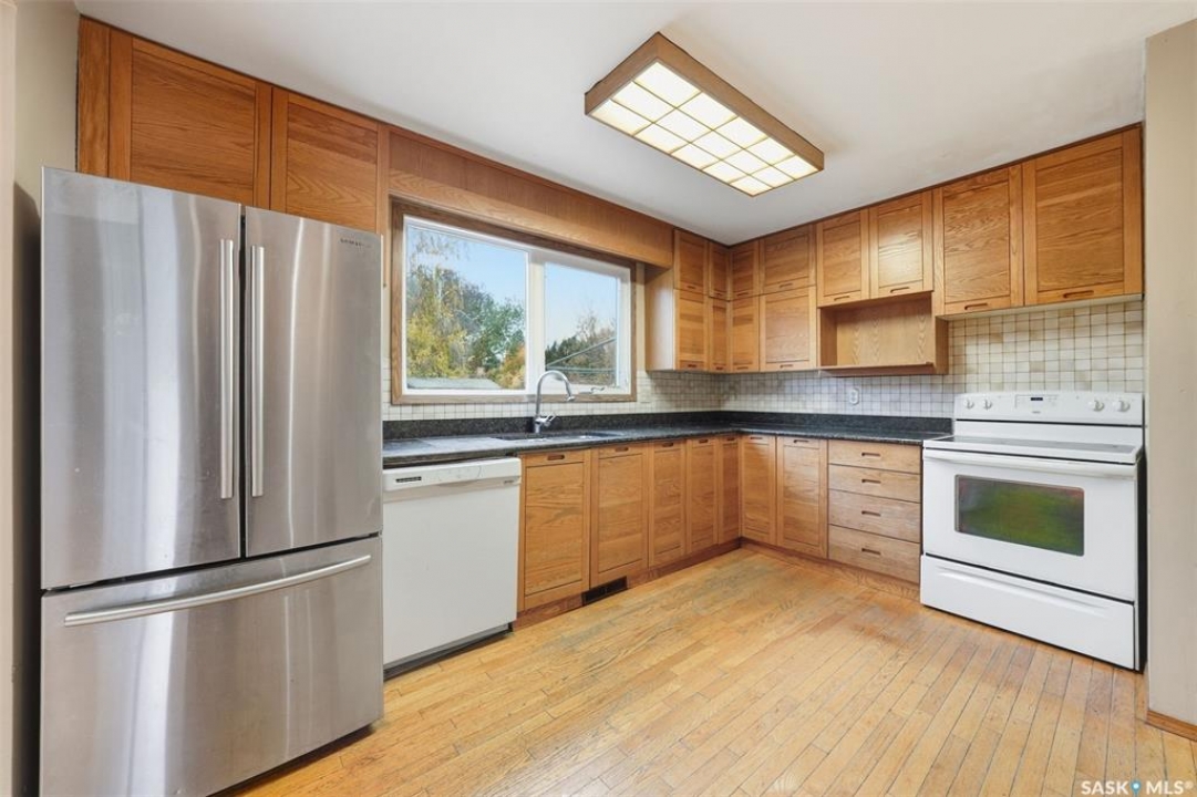 Welcome to West College Park! This spacious 1,564 sq. ft. two-storey home is a rare find having four bedrooms upstairs, three bathrooms throughout, and a single attached garage. Located on a quiet, mature street surrounded by beautiful trees, this home presents an incredible opportunity for someone ready to bring their vision to life. The main floor is bright and inviting, featuring large picture windows in the living and dining areas that flood the space with natural light. The kitchen overlooks the private park-like backyard, offering plenty of potential to create your dream culinary space. Upstairs, you'll find four well-sized bedrooms, perfect for growing families or those needing extra office or hobby space. Several big-ticket items have already been updated, including some newer windows and shingles replaced in 2018, giving you a great head start. This home offers great potential for buyers eager to personalize and update to their own taste, with a little vision and cosmetic updating, it's a wonderful opportunity to create lasting value in a well-established neighborhood. Outside, the large, tree-filled backyard provides privacy and space for kids, pets, and summer entertaining. Conveniently located near schools, parks, the University of Saskatchewan, and all amenities, this home combines location, space, and potential—a rare find in today's market. Bring your ideas and make this West College Park gem your own!