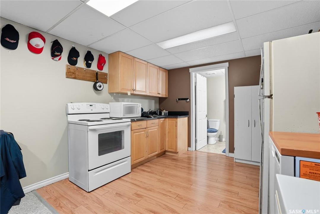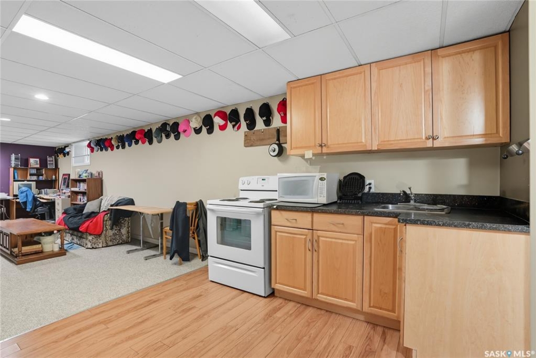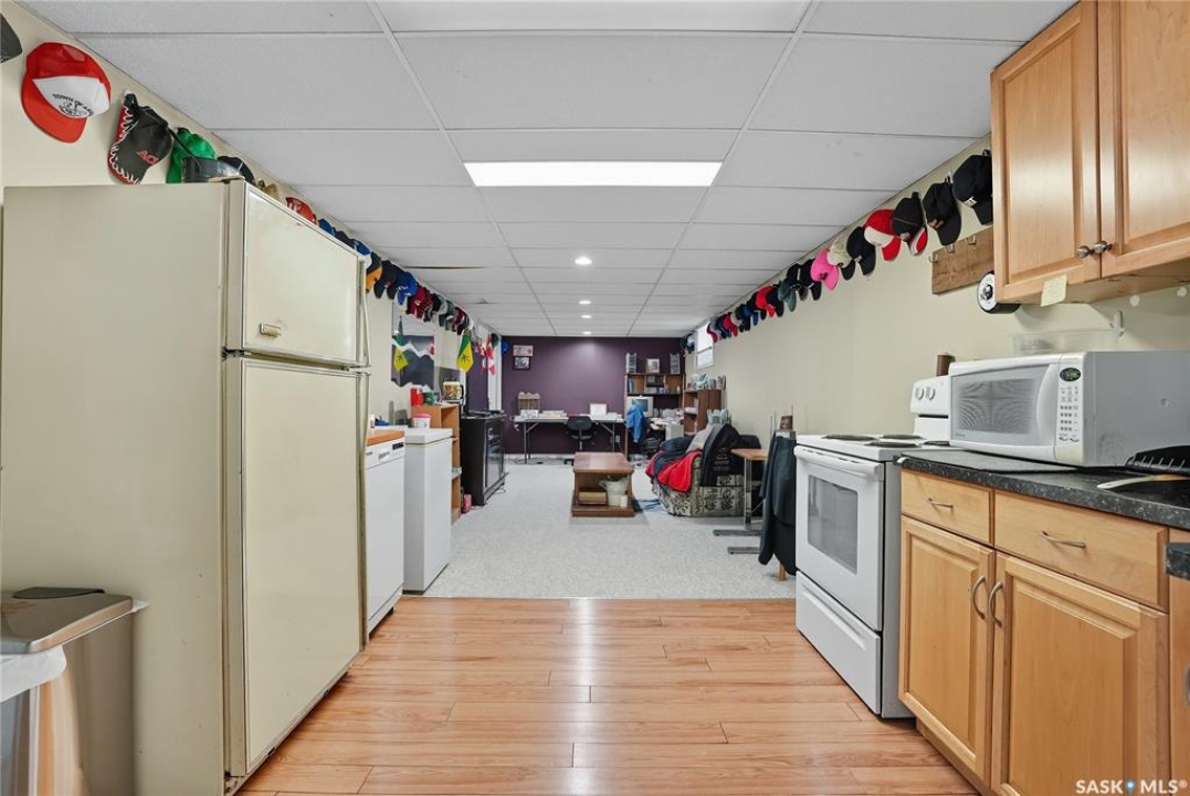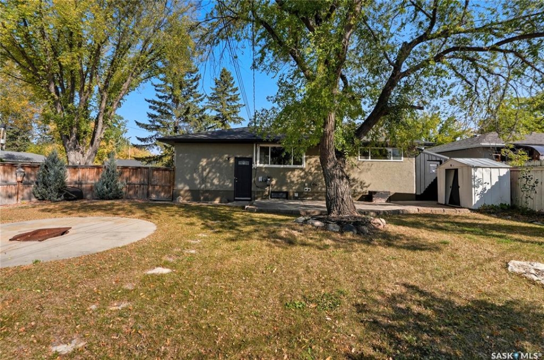 Welcome to 2 Young Crescent. This 960 sq ft bungalow located on a generous 6,479 sq ft corner lot in the sought-after Avalon neighborhood. The main floor features a bright and spacious layout with hardwood and lino flooring throughout. The large living room flows into the dining area and a classic Heritage-style kitchen, complete with an abundance of cabinetry, including fridge and stove, and lovely views of the backyard. Three well-sized bedrooms and an updated 4-piece bathroom with tiled surround and modern vanity complete the main level. Downstairs, you'll find a fully developed 1-bedroom suite with separate entrance. The suite includes an open-concept living and dining area, a functional kitchen, a generous bedroom, and a 4-piece bathroom. The lower level also houses the shared utility and laundry area. Outside, enjoy a spacious, fully fenced backyard with a firepit, patio space, and a large shed for additional storage. With lane access, there's plenty of potential for a future garage. You'll love the quick access to all areas of the city and proximity to schools, shopping, parks, dog parks, and more.