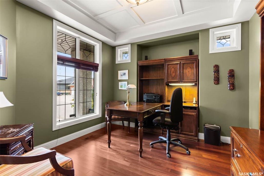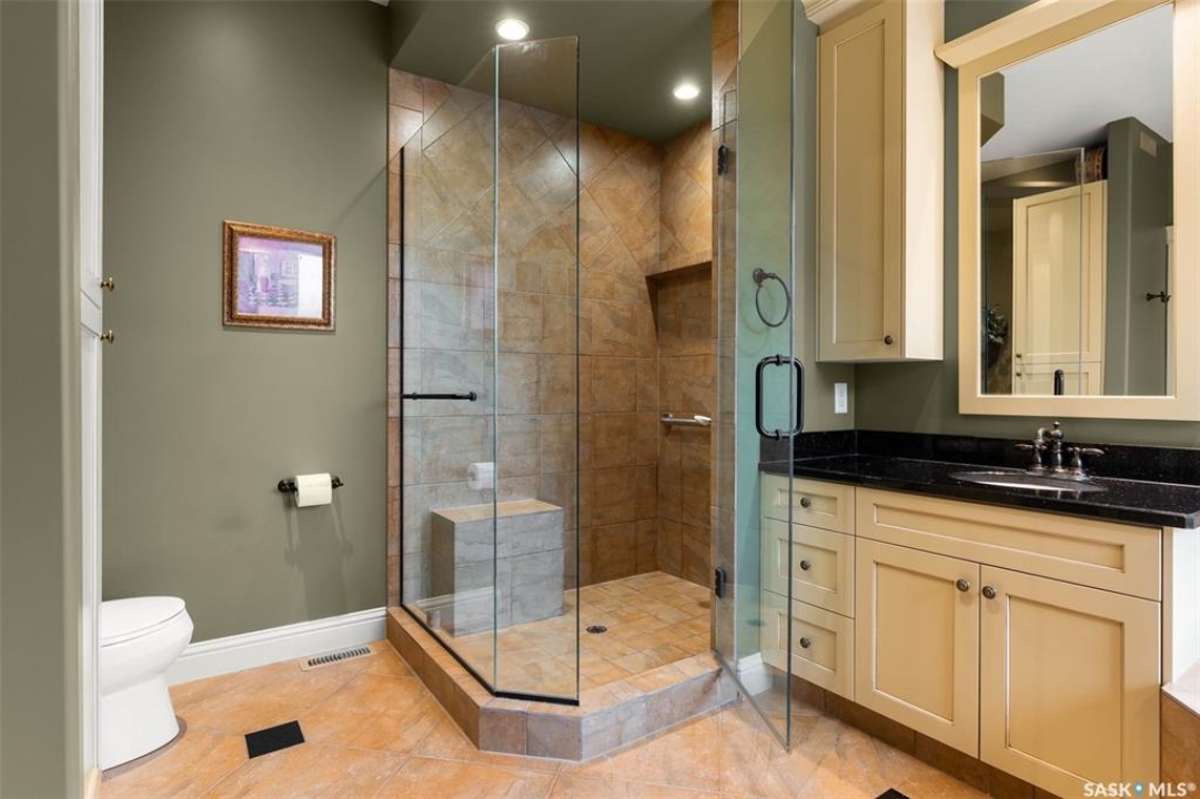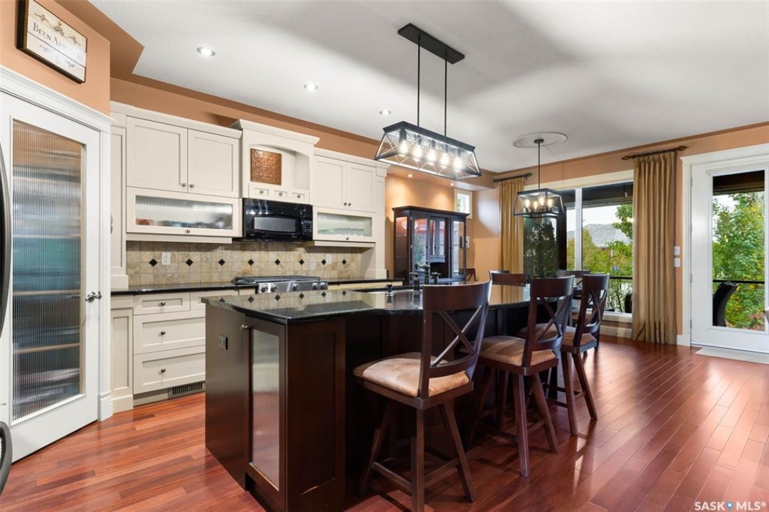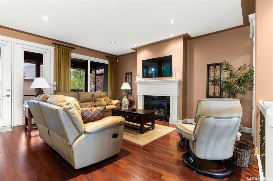 Welcome to this meticulously maintained custom-built bungalow by Munro Homes, ideally located just steps from the scenic Wascana Creek walking paths and McKell Wascana Conservation Park. This home has been lovingly cared for by its original owner and is truly move-in ready! Step inside to a spacious, welcoming entry that opens to a warm and inviting main floor with open-concept living. The kitchen features solid surface countertops, a gas range, walk-in pantry, and abundant cabinetry with a large island — perfect for cooking and entertaining. The living room offers a cozy gas fireplace, while the dining area easily accommodates family gatherings and opens onto a screened-in deck, extending your outdoor living space through three seasons. At the front of the home, a bright den provides the perfect office or reading space. The main floor also includes two bedrooms and two full bathrooms, including a spacious primary suite with dual walk-in closets and a luxurious ensuite featuring a soaking tub, walk-in shower, and dual sinks. A convenient laundry room with built-ins completes the main level. The fully finished basement offers an incredible amount of space to relax, work, or play — ideal for a home theatre, gym, games area, or craft space. You'll also find a third bedroom, a three-piece bathroom, and plenty of storage in the utility room. The in-floor heating adds a wonderful touch of comfort during cooler months. Additional highlights include an insulated and drywalled double attached garage (21' x 23.5'), underground sprinklers with drip lines, and a fully fenced, xeriscaped backyard for low-maintenance living. Contact your sales agent today to schedule your private showing!