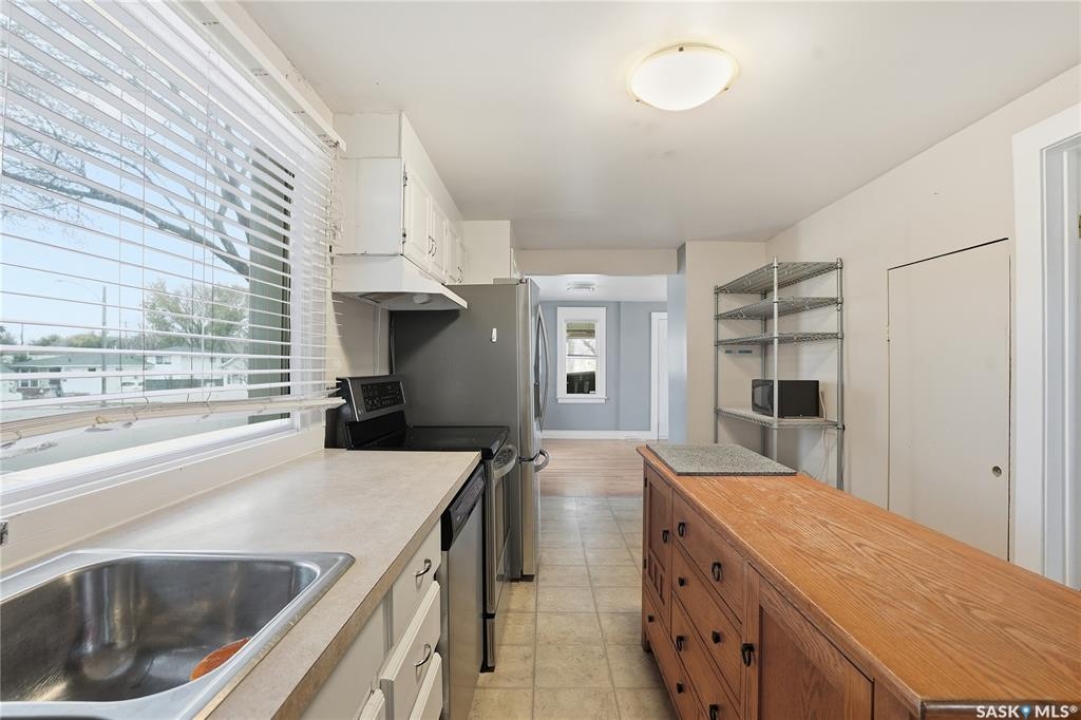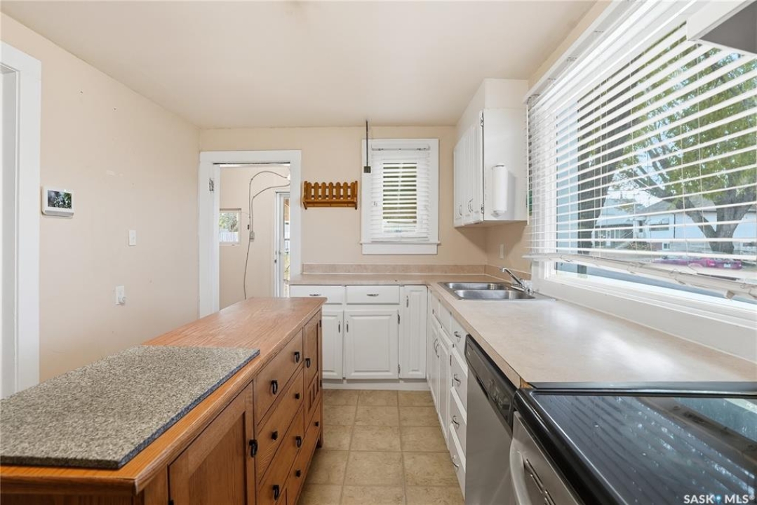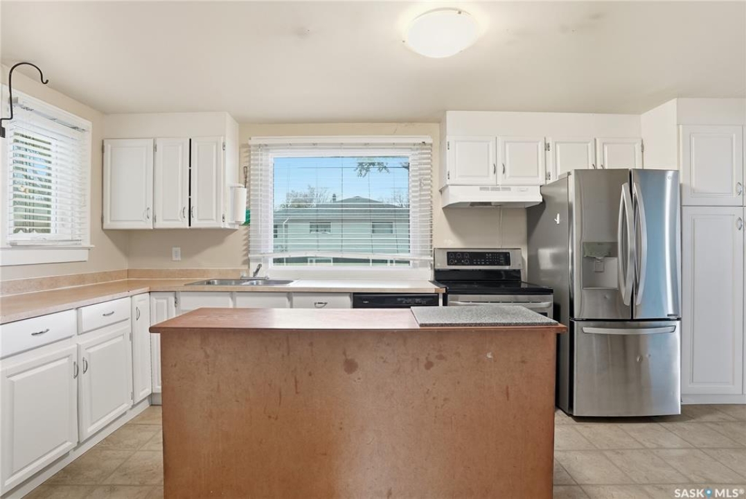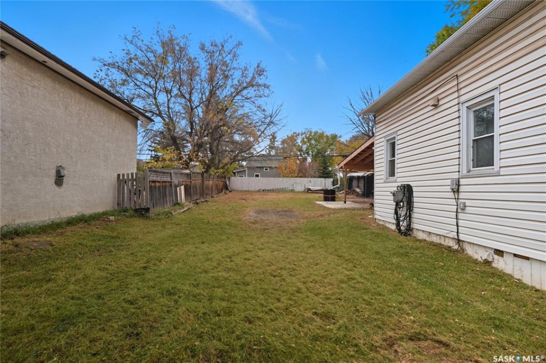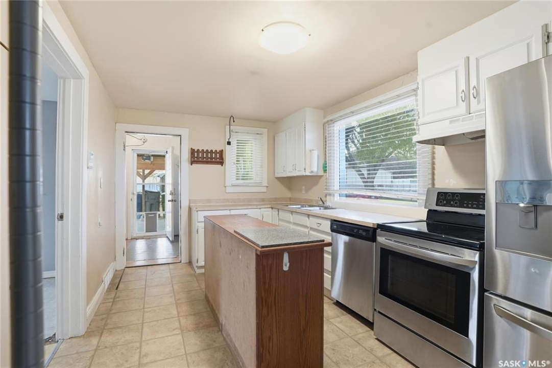 This well-maintained 3-bedroom, 2-bathroom one and 1/2 storey home offers a great mix of updates, comfort, and potential. The kitchen features stainless steel appliances, large island and you'll enjoy peace of mind with the new central air installed, furnace and ducts clean in 2025 and a 100 amp electrical panel. The main floor offers bright living spaces and has potential for a main floor laundry setup, offering added convenience and future flexibility. All three bedrooms are a comfortable size, and the two bathrooms provide practicality for families, guests, or shared living. Carport has a garage door opener for easy access to secure parking close to back door. Newer fence panels are sitting in a pile in back yard and is included for future owner to install. Large back yard with shed and even the BBQ is included. Located in a central area close to schools, amenities, and transit, this property is ideal for first-time buyers, investors, or anyone looking for value and opportunity in Saskatoon. Don't miss your chance to make it yours!