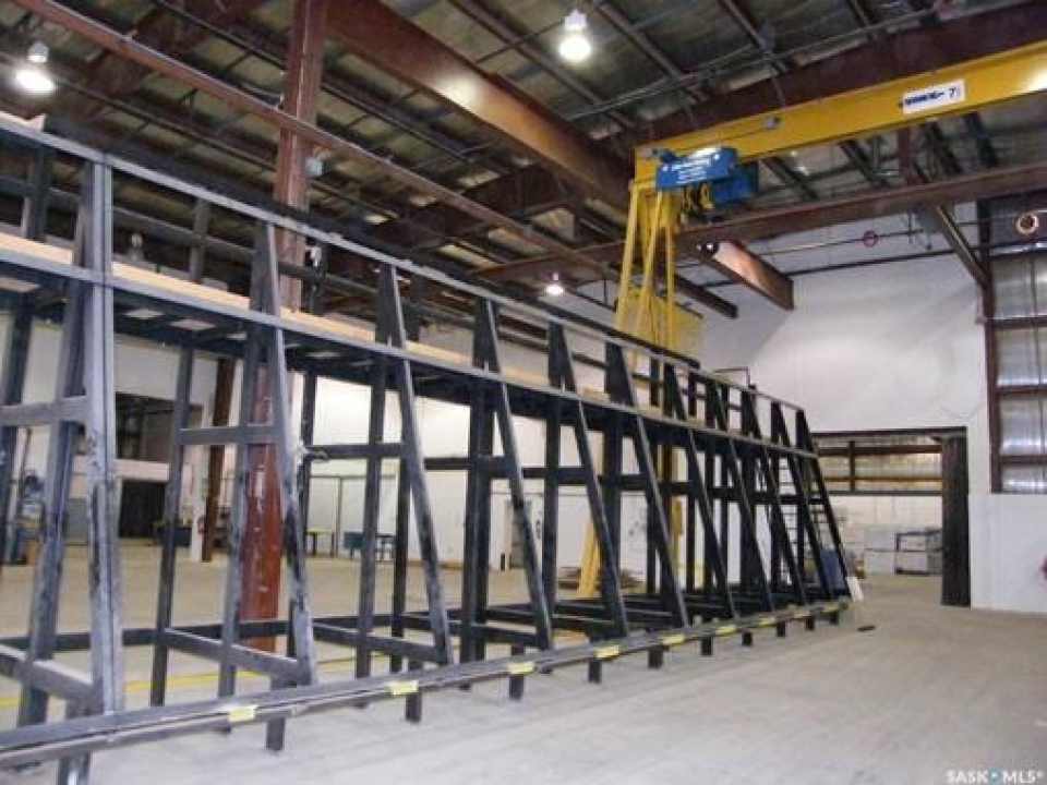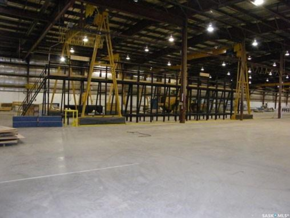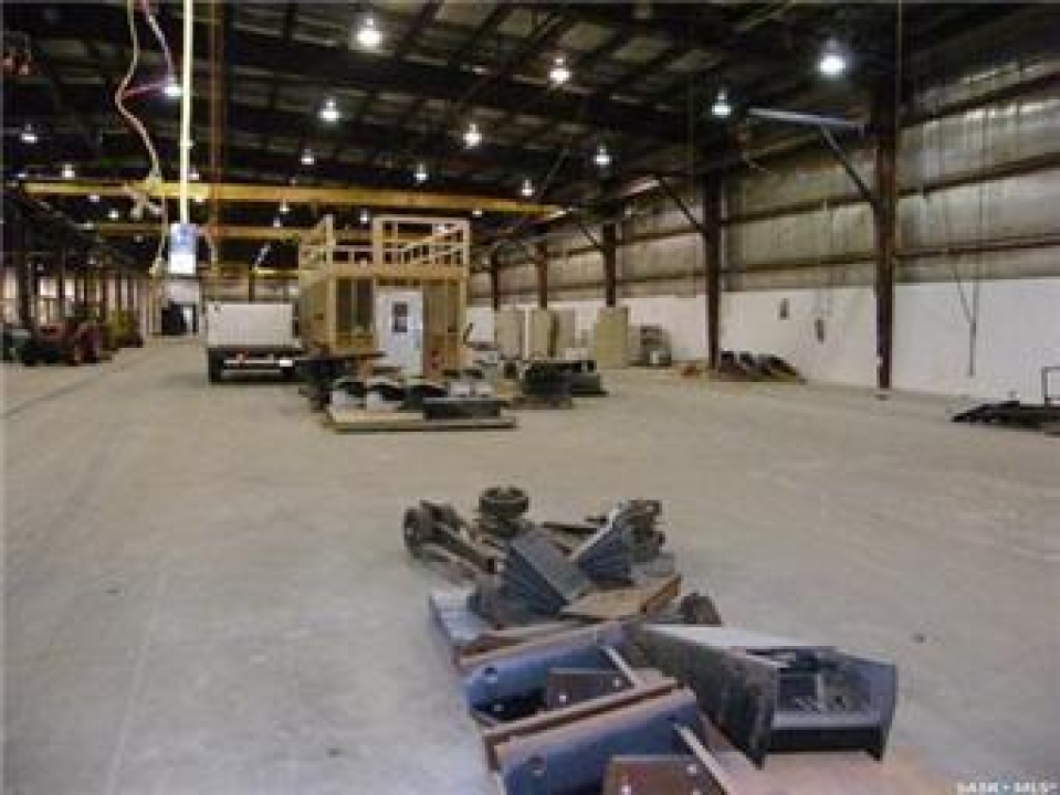 INDUSTRIAL BUILDING AND PROPERTY. The Main Industrial building is 91,300 sq. ft. single-story building with an additional 6,000 sq. ft. mezzanine with offices. The foundation and flooring are reinforced concrete slab. Pre-engineered steel structure with insulated metal cladding and metal roof. Radiant heat & full sprinkler system. With overhead doors ranging from 14 x 14 to 18 x 18 in size. Included are 1-20-ton crane, 2-10-ton cranes, 4-5-ton cranes. Second building is 3,920 sq. ft. with 2 overhead doors. Reinforced concrete floor. Pre-engineered steel structure with insulated metal cladding & metal roof. Radiant heating. Third building is 3,750 sq. ft. single-story wood frame building with metal siding. Overhead door. Irregular shaped lot of approx. 12 acres with 1,026.5 ft. of frontage (with fenced compound & security) along Canola Ave. Parsons Industrial Park North Battleford, SK. This property has a tenant with a full triple net lease to 2030. Also available is listing A2070374.
