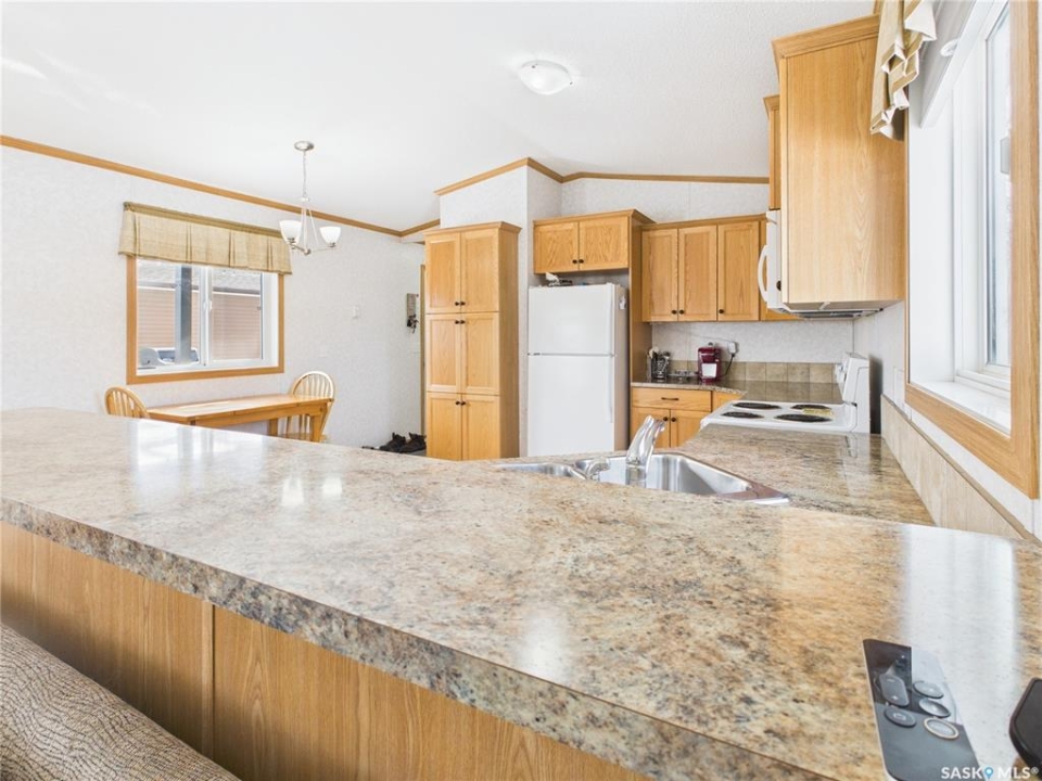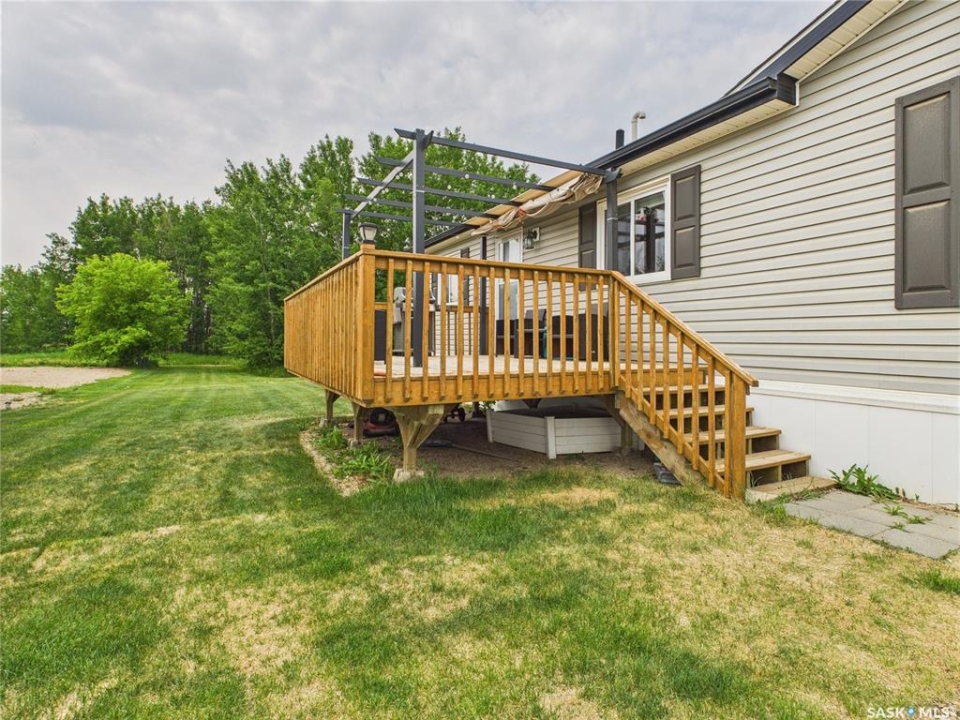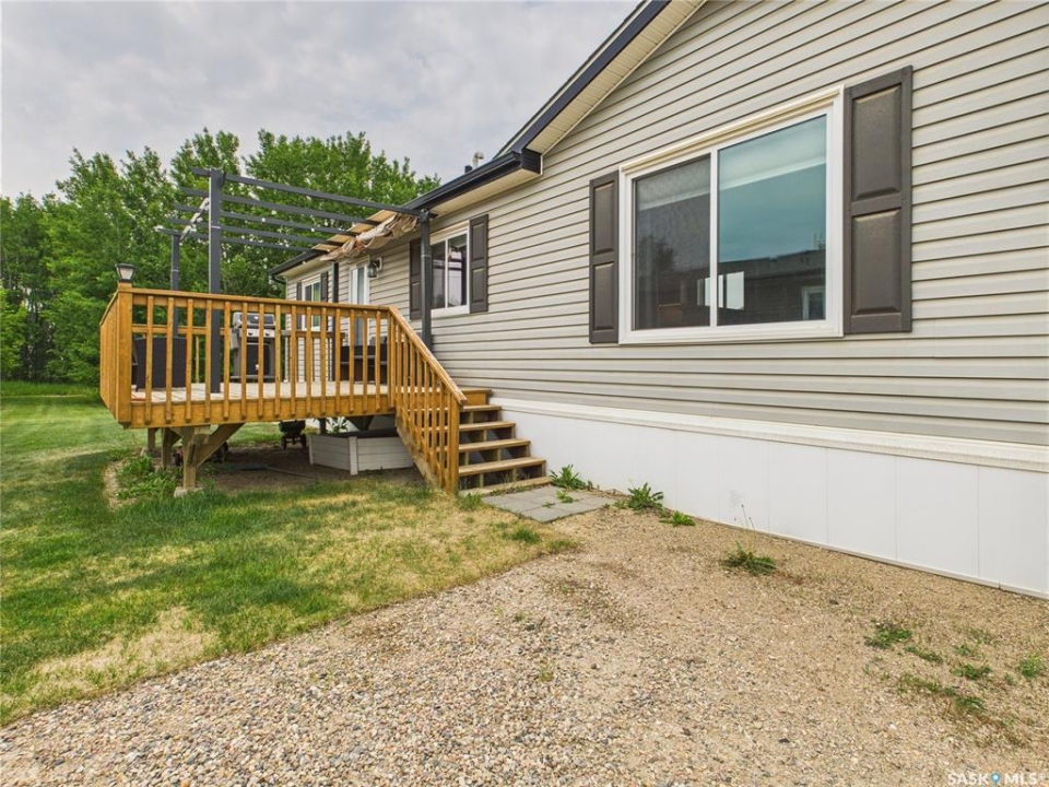 Looking for a move-in ready home with space, privacy, and thoughtful upgrades? This 2013 mobile located in the sweet town of Shellbrook delivers just that - on an owned .22-acre lot with no pad fees and room to spread out. With 3 bedrooms and 2 bathrooms, the layout offers great separation: two bedrooms and a full bath at one end, and the primary suite (with ensuite and laundry) at the other. The kitchen features maple cabinetry, under-cabinet lighting, a raised bar counter for casual dining, and space for a smaller table. The oversized living room provides flexibility for everyday living or entertaining family and friends. This home has been exceptionally well cared for, with upgrades including wall-mounted A/C units, dimmable light switches, and custom honeycomb blinds on every window, boosting the R-value and helping maintain consistent comfort year-round. Outside, the .22-acre lot has been landscaped with added lawn in the front and back, and stretches all the way to the back of the first row of trees, offering a natural backdrop and extra privacy. You'll also find a freestanding carport, gravel driveway with space for 6–8 vehicles, and a covered pergola that's perfect for catching some sunshine while having a cup of coffee in the morning. This property is clean, solid, and move-in ready - ideal for a first-time buyer, downsizer, re-starter, or anyone looking for a fresh start just on the outskirts of town. Be sure to check out the virtual walkthrough to get a closer look at everything this great home has to offer!