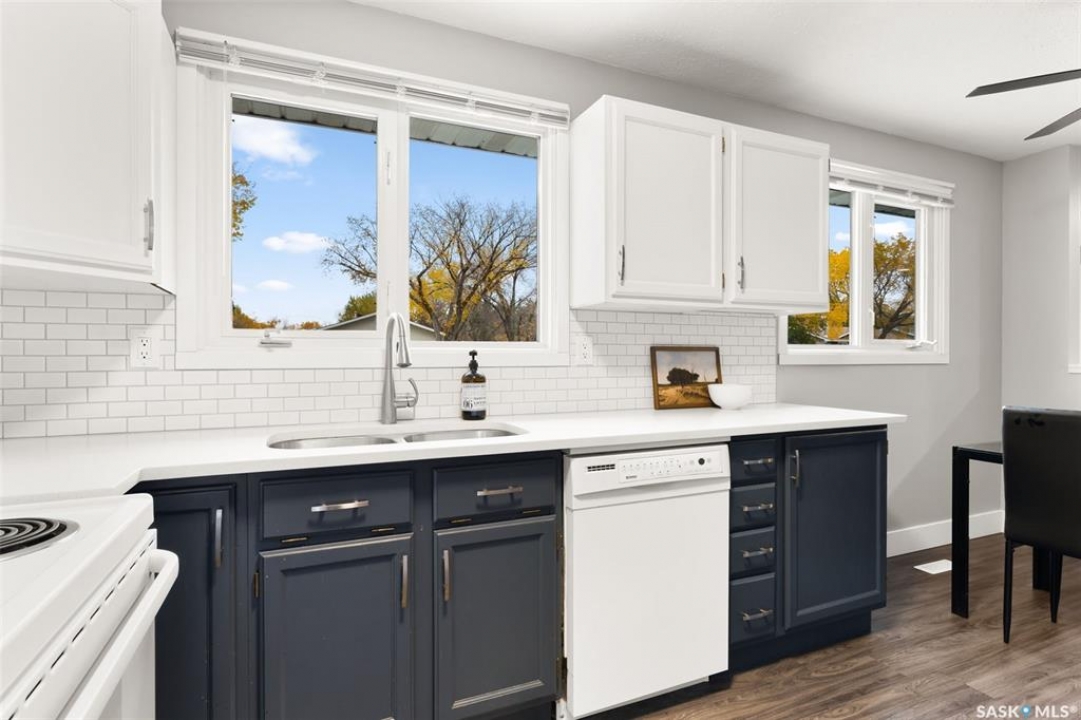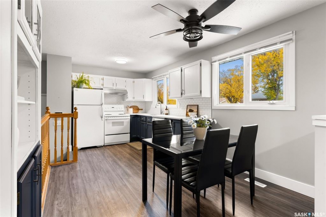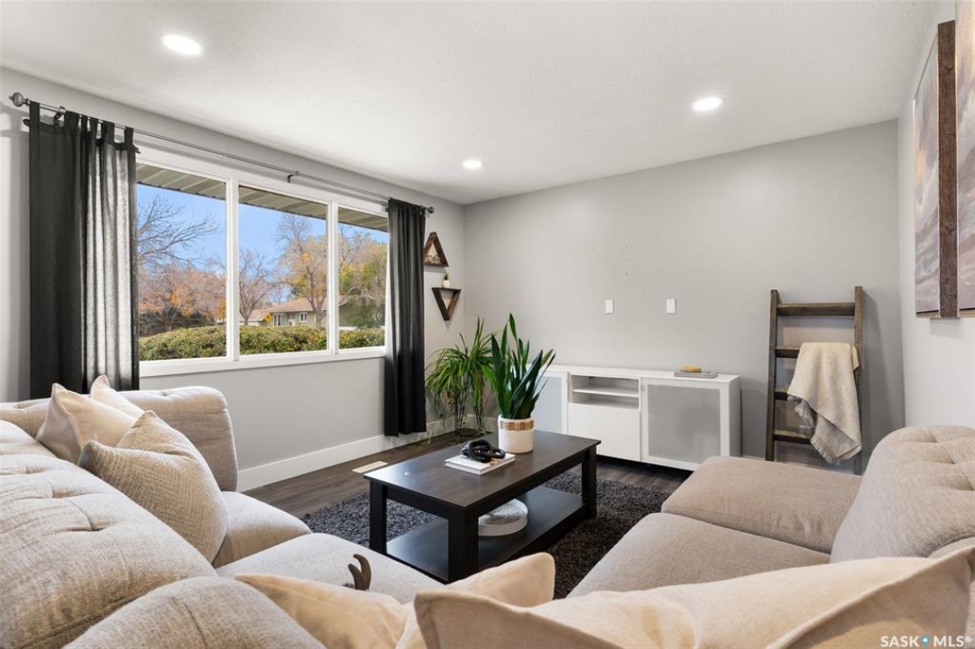 Welcome to this beautifully updated home in a prime North West location in Sherwood Estates, just steps from Storey Park. Enjoy a bright, open main living area featuring laminate flooring throughout the living, kitchen, and dining rooms, complemented by pot lighting in the living room. The modern kitchen offers quartz countertops, a subway tile backsplash, and plenty of workspace for the home cook. Three bedrooms are located on the main floor along with an updated bathroom complete with a relaxing soaker tub. The basement has been thoughtfully finished, featuring a fantastic layout with a large rec/theatre room, wet bar, and an additional den ideal for a home office. You'll also find a fourth bedroom with a walk-in closet and a 3-piece bath. Additional highlights include a high-efficiency furnace, PVC windows on the main (except picture window), a 24' x 24' heated garage, and a private backyard with a fire pit and garden area. Relax on the front deck while enjoying views of Storey Park. Located close to Ring Road and the 9th Avenue bypass with quick access to great North end amenities and schools, making this is an excellent place to call home!