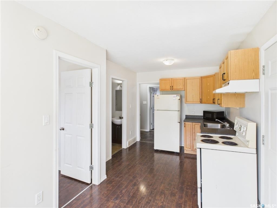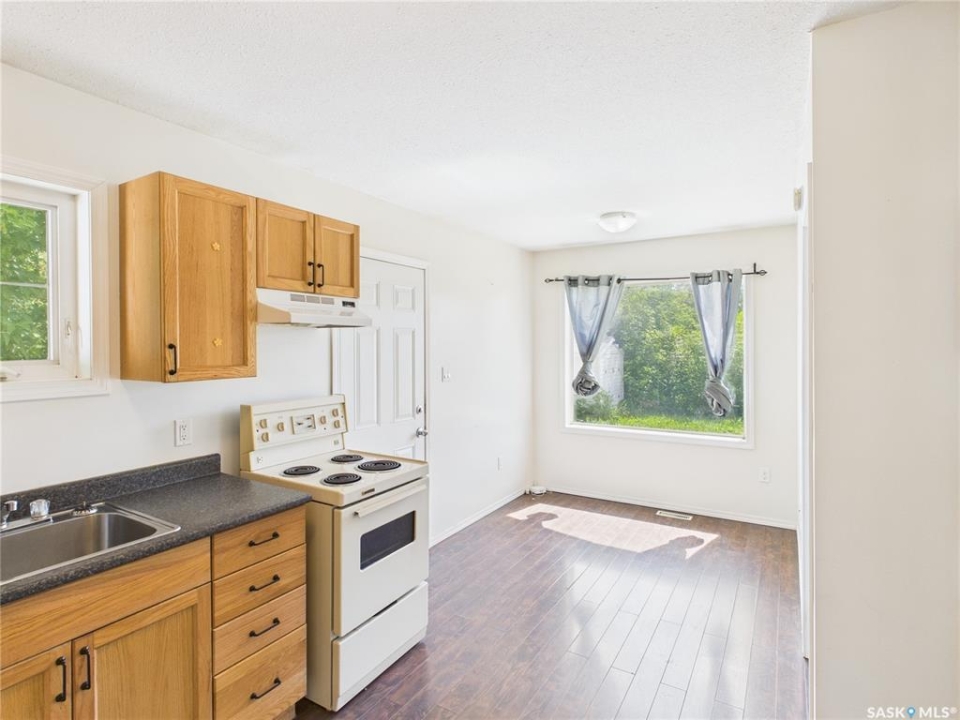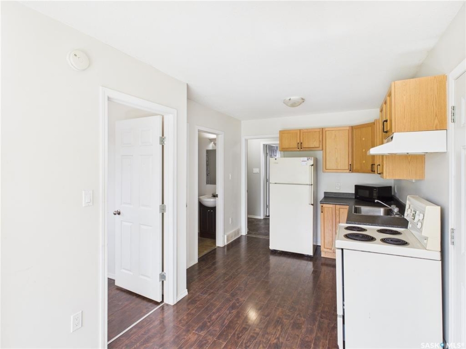 This is such a great setup - whether you're looking for your first home or hoping to offset your mortgage with rental income. The main house has been nicely updated with vinyl plank flooring, two full bathrooms, and some window upgrades (2019). There's one bedroom on the main level, three more upstairs, plus a fully finished basement that could be a rec room or another bedroom with its own full ensuite. At the back of the house, you'll find a shared laundry and mudroom that leads to a one-bedroom suite, complete with its own kitchen, another bedroom, and the third full bathroom. It's a great option to generate extra income and help you pay down your mortgage faster. The yard is fully fenced with a cute east-facing patio area, and there's off-street parking in the back too. Affordable, functional, and full of potential, this one is a great find with revenue already built in! Contact your favourite realtor to book a showing today!