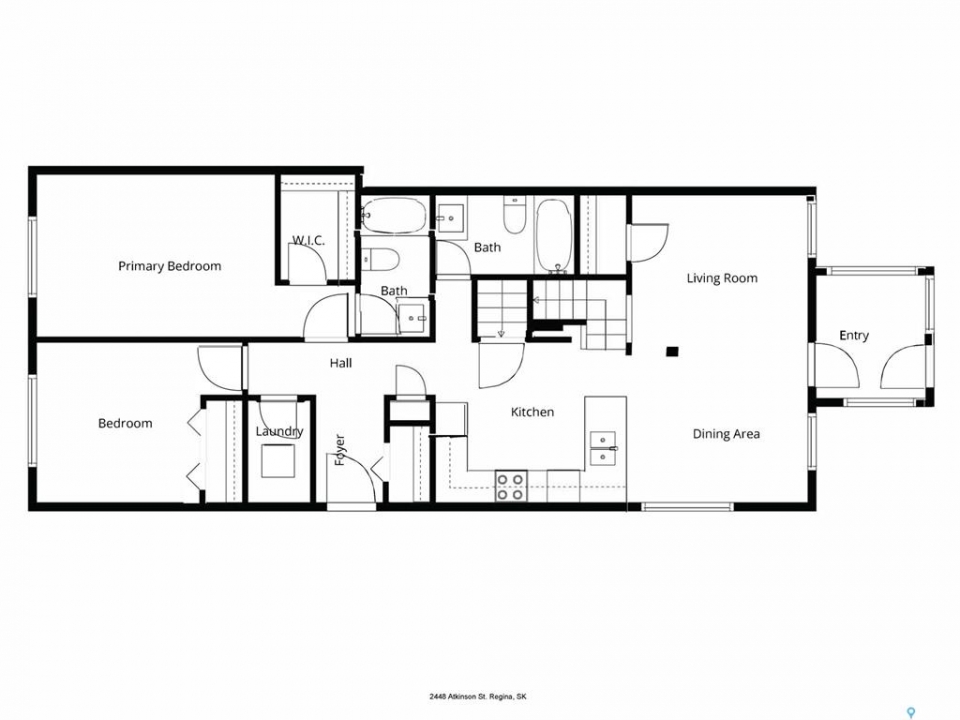 Welcome to 2448 Atkinson Street, a charming and fully updated one-and-a-half-storey home in Regina's desirable Arnhem Place neighbourhood—just steps from Wascana Park, Candy Cane Park, and the Science Centre. This move-in-ready home perfectly combines comfort, functionality, and style, making it ideal for first-time buyers, downsizers, or investors. Inside, you'll find an inviting open-concept layout with updated flooring, fresh paint, and plenty of natural light. The living room flows seamlessly into the dining area and modern kitchen, which features dark maple cabinetry, quartz countertops, a sleek tile backsplash, and stainless steel appliances—including a new dishwasher replaced in 2025. The main floor also offers two spacious bedrooms, including a primary suite with a walk-in closet and full ensuite, as well as a second updated bathroom and convenient main floor laundry. Upstairs, a bright finished loft provides the perfect space for a third bedroom, home office, or cozy retreat. Thoughtful upgrades throughout include a new furnace (2017), sewer line (2018), shingles and vinyl siding (2018), and a complete kitchen renovation. Outside, enjoy a low-maintenance yard with white rock landscaping, a fenced backyard, and room for future garage development or extra parking off the lane. Centrally located with quick access to downtown, schools, parks, and amenities, this home offers exceptional value in one of Regina's most loved neighbourhoods. Stylish, functional, and ready for its next owner—2448 Atkinson Street is a must-see!