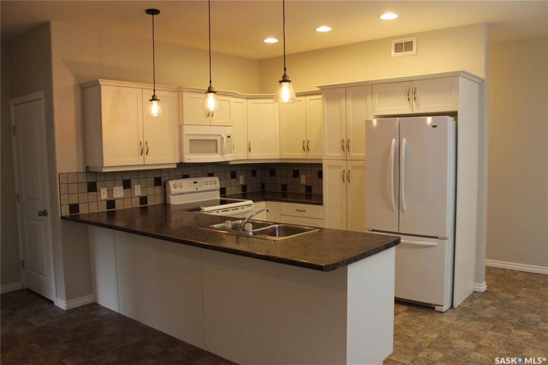 LOCATION! CONDITION! LOCATION! Welcome HOME to this Immaculate 4 Bedroom Condo only steps away from the Public Swimming Pool, Hockey Rink, Curling Rink and the Midale Health Centre. This Country Style Duplex has all the bells and whistles! Large kitchen with bright white cabinetry and good size breakfast bar. Formal dining. Large living room with gas fireplace and garden door to rear deck. Huge Master bedroom with 4 piece ensuite and 9'x6' walk in closet. Good size 2nd bedroom which could be used as a den. Main floor laundry. Finished basement includes an enormous recreation room, 2 large bedrooms, 4 piece bath and large storage room. Heated double attached garage. Central Air. New shingles Sept. 2025.