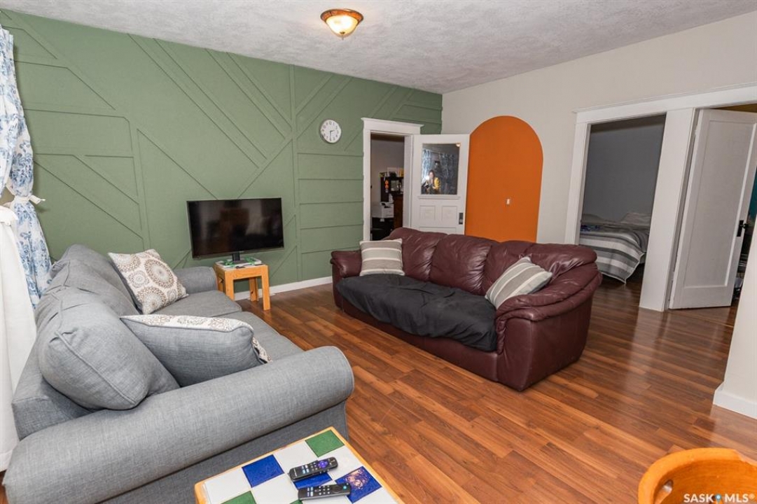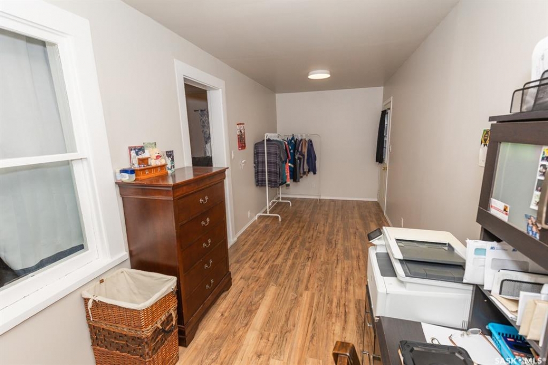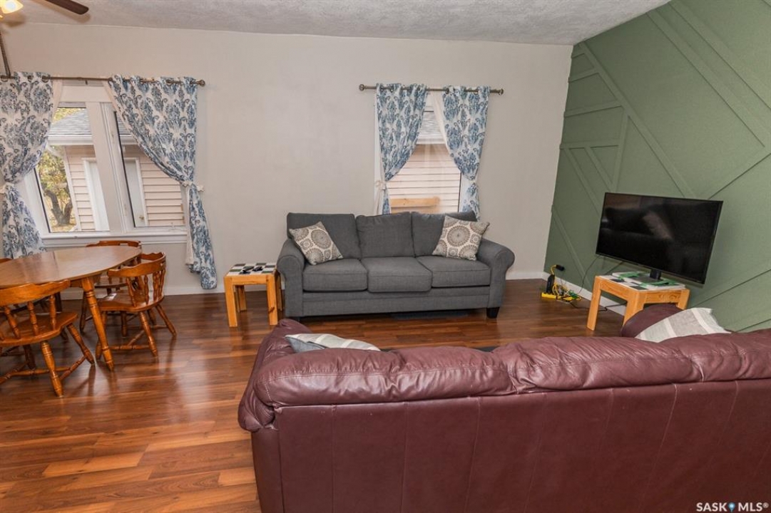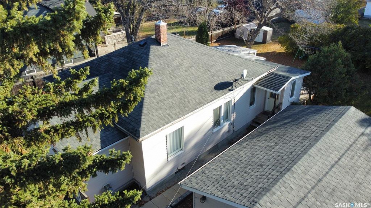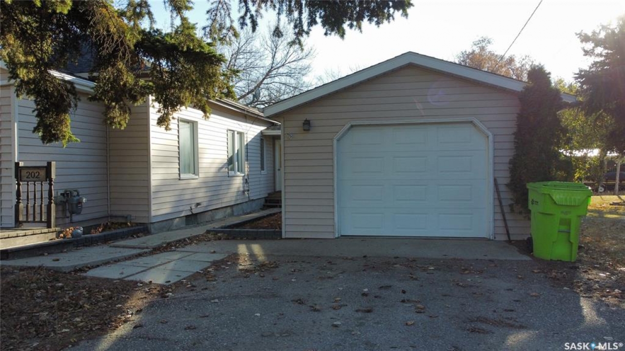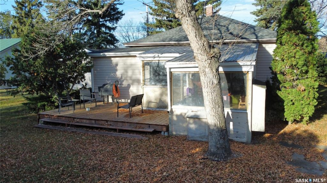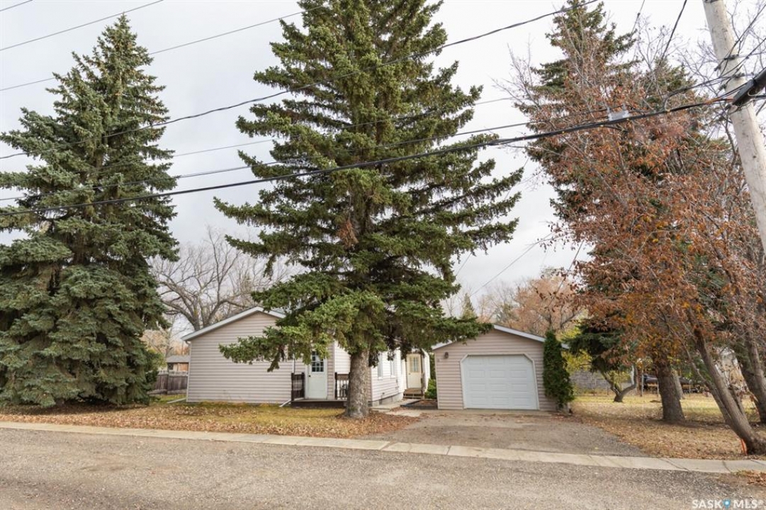 Interior photos coming soon. Looking for a charming starter home, a potential revenue-generating property, or are you looking to downsize? Look no further than this cozy bungalow. Conveniently situated near amenities and walking distance to the K-12 school/daycare, this property is located on a large 77 x 114/130 lot with a partially-fenced yard. This lovely piece of real estate comes with a single detached garage (16' x 24' ) with an automated garage door ( new motor in 2022), as well as handy off street parking on a single asphalt driveway. With approximately 800+ sq. ft. of living space, this property offers you main floor laundry, an updated 4-pc bath (2007) heated front and back porches, 1 main floor bedroom (a second room is used as a bedroom with a window that exits into the front porch), a cute kitchen, and a spacious sunroom. Most of the windows have been updated by a previous owner. Water heater was replaced in 2023 and the shingles were replaced in 2020. The sunroom has a newer tinned roof, and the front porch and sunroom have newer laminate flooring. So much to love about this home. Luseland is a thriving community that offers a wealth of amenities, including a K-12 school, grocery store, bank, convenience store, pharmacy, newer outdoor swimming pool, post office, rink, boutique shopping and spas, numerous small businesses and much more. Make sure to check out this excellent property today!