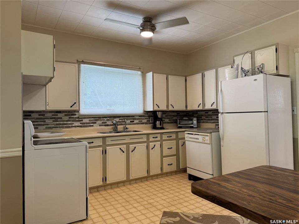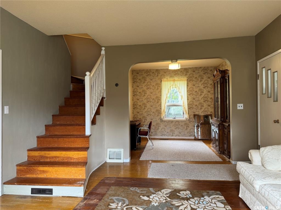 Located at 405 3rd Street East in Wynyard, this spacious two-storey home is perfectly situated near the Wynyard Elementary School, swimming pool, curling rink, Sofina Foods, and downtown amenities. The main floor offers a full bathroom, kitchen, living room, dining area, and a cozy den, while the second floor features four bedrooms and a convenient two-piece bath. The unfinished basement includes a cold storage room and a roughed-in bathroom, providing potential for future development. Outside, you'll find parking for up to six vehicles, a large fenced yard with mature trees, fruit trees, and perennials, plus a small garage and shed for extra storage — a wonderful family home in a great location.
