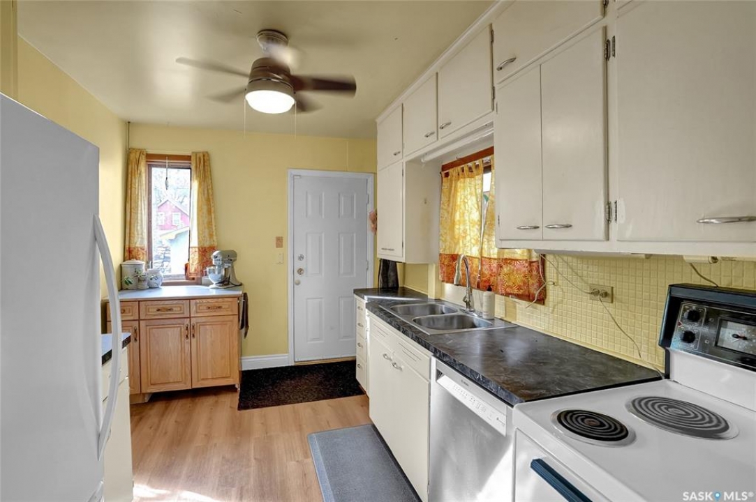 This charming character home, ideally situated on one of the most desirable blocks in the General Hospital area, has undergone numerous upgrades and could be exactly what you've been searching for. Upon entering, you'll be welcomed by a bright and open living room filled with natural light and enhanced by beautiful hardwood floors. The seamless flow leads into a spacious dining area, also featuring hardwood flooring and offering a lovely view of the backyard. The kitchen showcases crisp white cabinetry, durable laminate flooring, and convenient access to a cozy back porch—perfect for morning coffee or extra storage. Upstairs, you'll find a generous primary bedroom, two additional bedrooms, and a beautifully renovated four-piece bathroom. The basement provides ample storage space, a washer and dryer area, a high-efficiency furnace, and a dedicated cold storage room. One of the standout features is the double detached garage, which received upgraded doors in 2011. The spacious backyard is ideal for relaxation or entertaining, complete with a wooden deck extending from the back porch. Conveniently located near downtown and close to all major amenities, this home offers comfort, style, and practicality—ready for its next proud owners. Schedule your private viewing today!