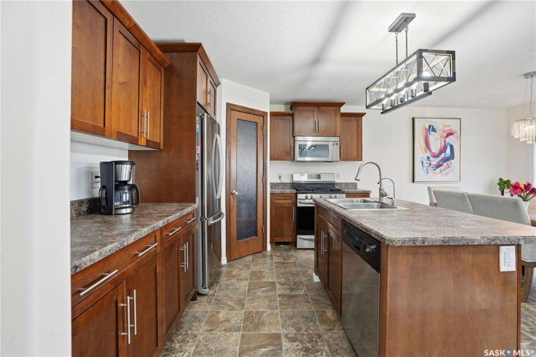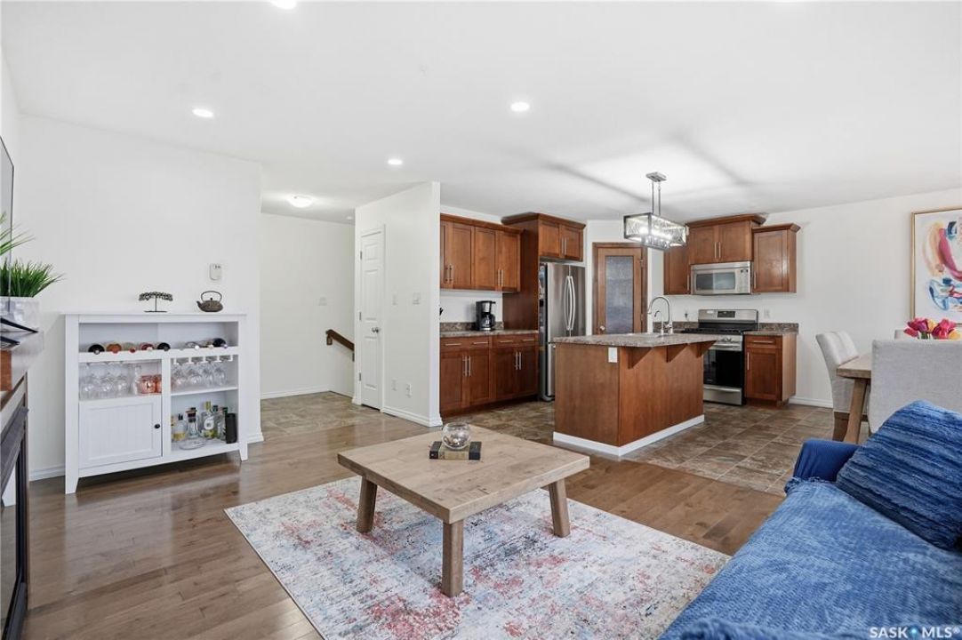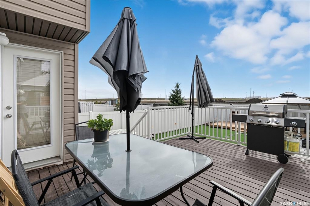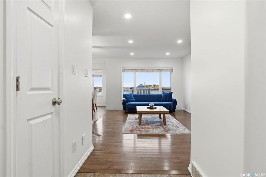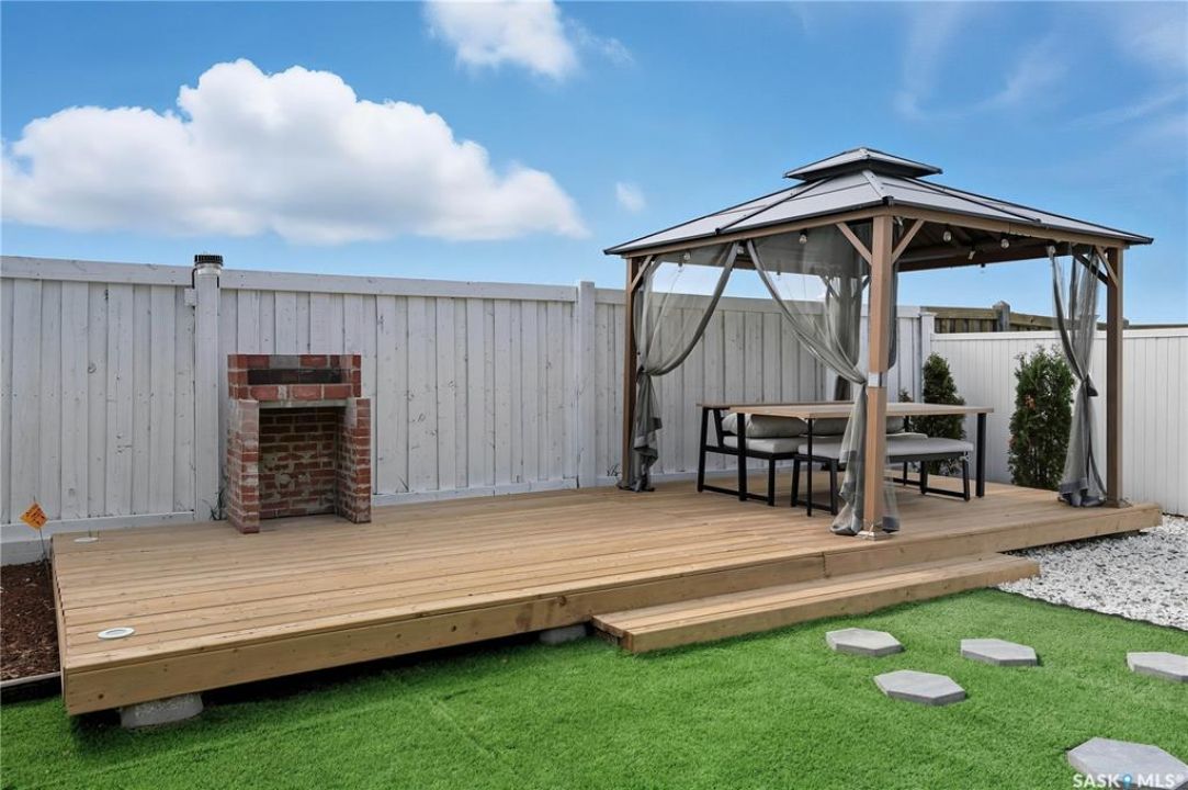 Welcome to Harbour Landing — a vibrant Regina community that truly has it all. From grocery stores and schools to cozy cafés and beautiful parks, everything you need is right here. This spacious two-storey home sits just steps from McKenna Park and the Harbour Landing walking paths. Inside, you'll immediately notice the bright, natural light streaming through the south-facing windows. The living room features maple hardwood floors and a gas fireplace — perfect for cozy winter evenings. The kitchen is both stylish and functional, with a gas range, plenty of counter space, and ample cabinetry. It flows seamlessly into the dining area, where a glass door leads to your back deck for easy indoor-outdoor living. A convenient laundry area with a half bath completes the main floor. Upstairs, the large bonus room with brand-new vinyl flooring offers flexible space for a playroom, movie nights, or a home office. You'll also find three bedrooms and a four-piece main bathroom. The primary bedroom includes dual closets and a private three-piece ensuite. The basement is open for future development, with large windows and rough-ins for a bathroom and wet bar — ready for your personal touch. When summer arrives, the backyard is made for relaxing and entertaining. Enjoy low-maintenance landscaping, a steel-frame gazebo with lighting and a built-in speaker, and electrical access if you want to add string lights for a little extra evening charm. You will even have a firepit area and patio that is the perfect spot for a hot tub!