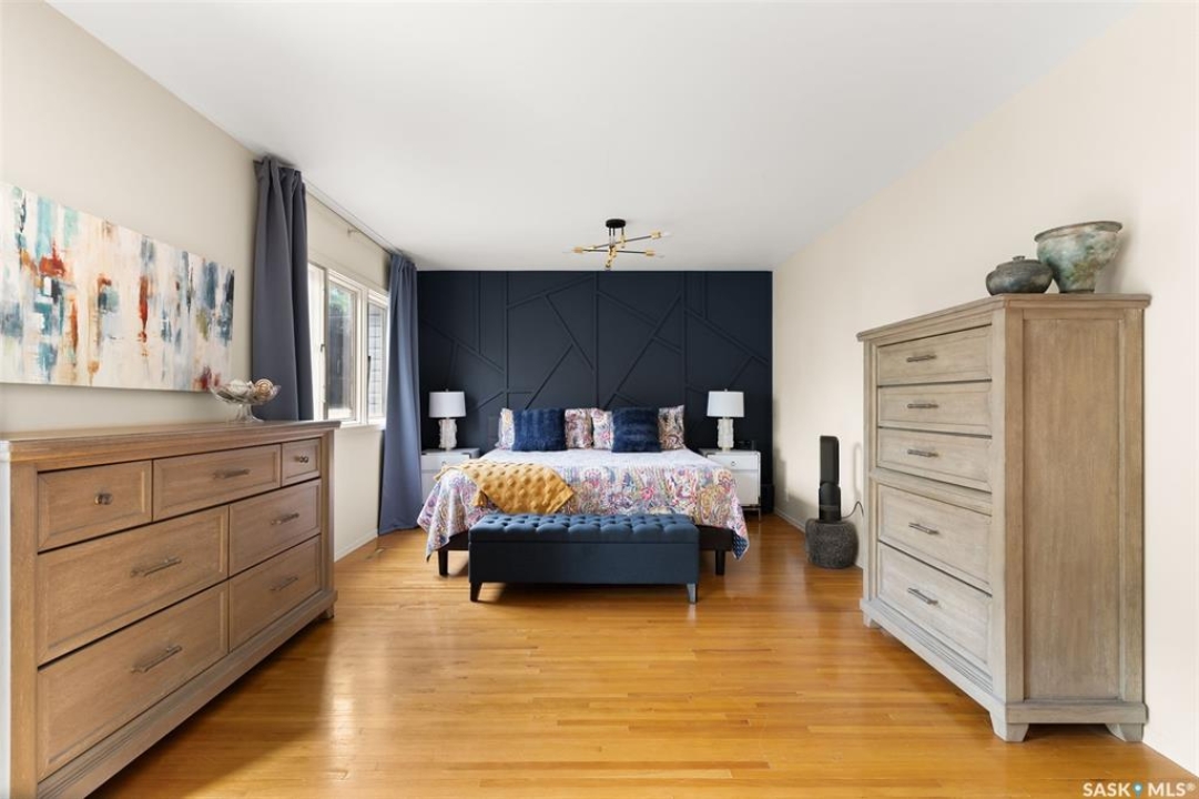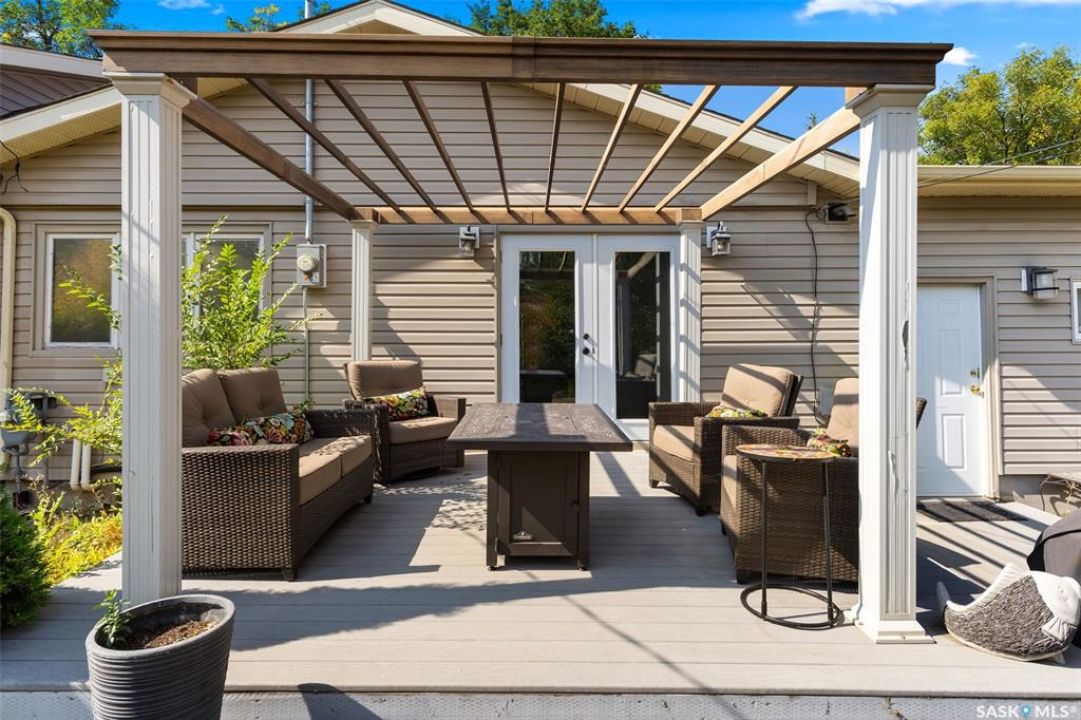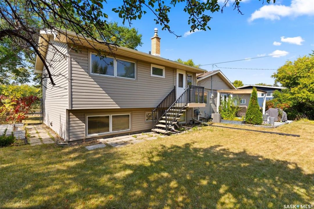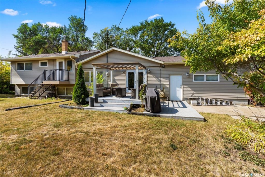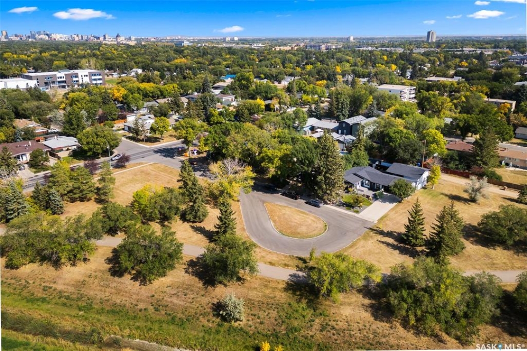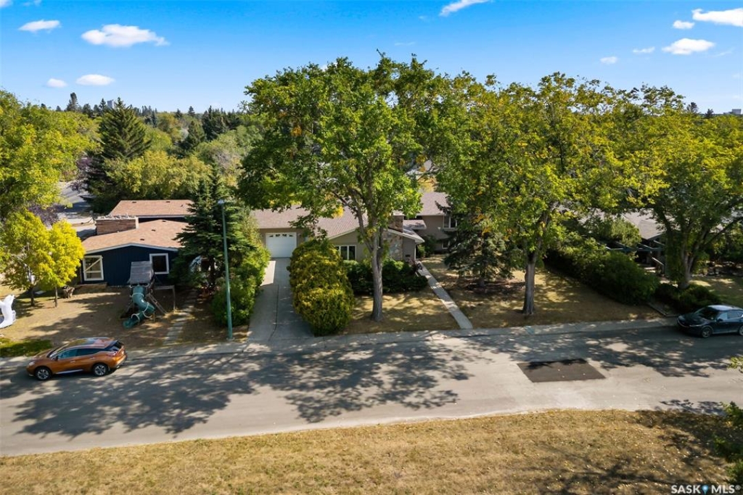 Welcome to a truly unique opportunity in the heart of South Regina. Tucked away on a quiet cul-de-sac overlooking green space, this home offers both privacy and convenience in a prime location. Originally designed as a single residence, the layout now provides a rare opportunity for families in need of an attached nanny suite or multi-generational living. The main home showcases stunning cathedral ceilings that create a bright and open feel, complimented by a series of thoughtful updates in recent years. The refreshed kitchen features stone counters with a waterfall edge, glass tile backsplash, updated flooring, and newer appliances. The primary bedroom is spacious and can double as an exercise space or reading nook. Here garden doors lead to a two-tiered composite deck with pergola and view of the east-facing backyard. Down the hall, a recently remodelled 3-piece bathroom with stylish shower and off the kitchen is access to an attached and heated (20'x26') garage. The fully finished basement adds to the living space with a 2nd bedroom, a den, 4-piece bathroom and laundry. Additional upgrades include modern lighting, a newer furnace, shingles and eaves all within the last 10 years. The second home offers more of the original 60's charm with its own private entrance. Here you will find a cozy space with a galley kitchen and an additional 3 bedrooms and 2 bathrooms. Paved walking paths right out your front door will take you to Kinsmen Park or watch your kids cross the street to school with the recently completed joint-use École St. Pius & Argyle Elementary Schools just a few steps away. Set on an impressive 100ft frontage (with 4 x 25ft lots), this property falls within the City of Regina Secondary Intensification Area which allows for the opportunity for multi-unit residential re-development. With its unique configuration and sought-after location this property presents an incredible opportunity you won't find anywhere else.
