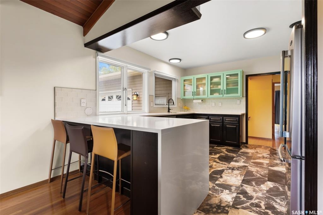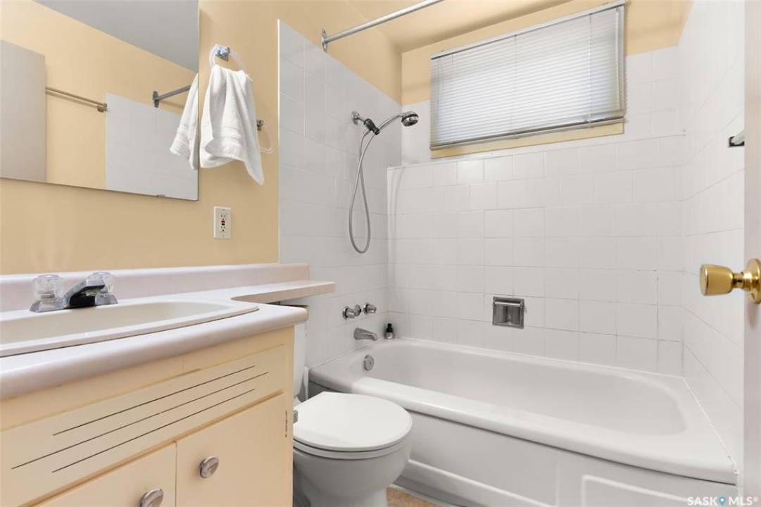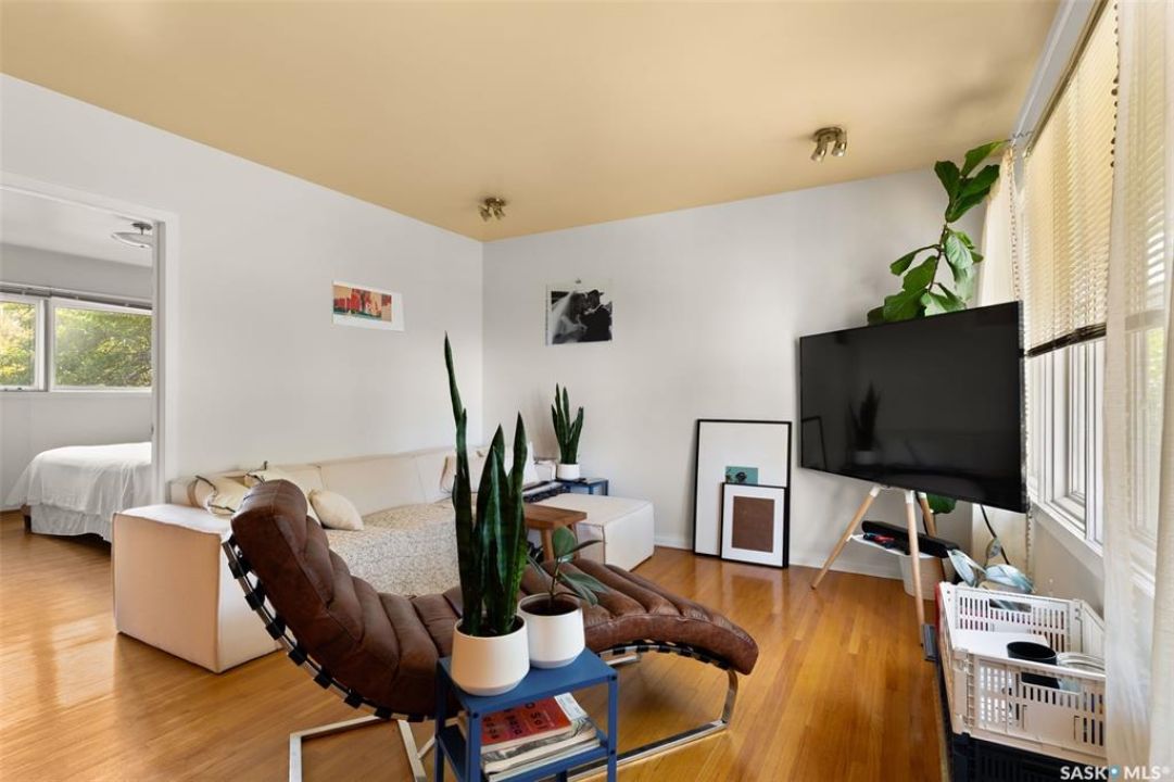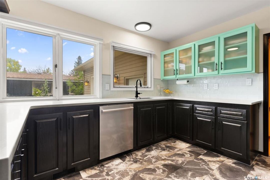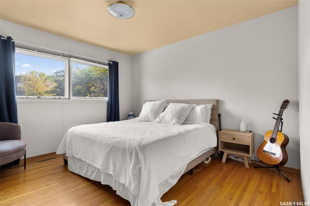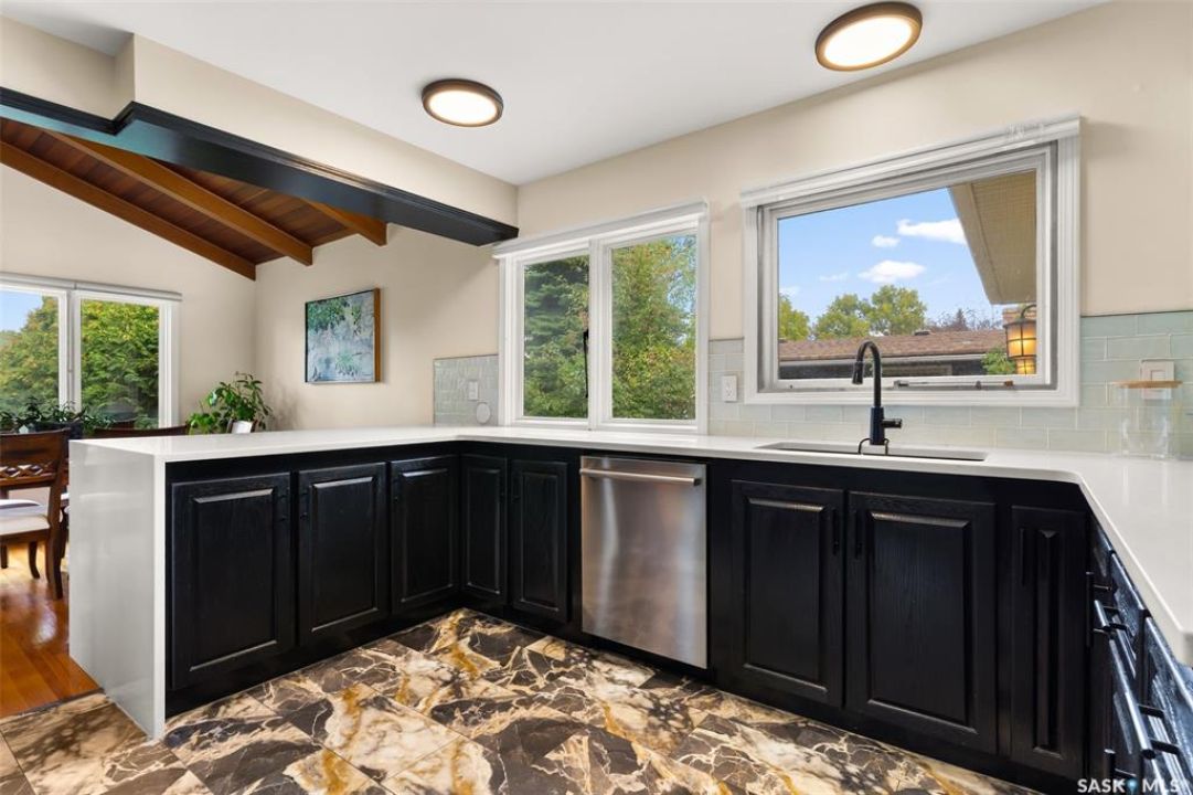Welcome to a truly unique opportunity in the heart of South Regina. Tucked away on a quiet cul-de-sac overlooking green space, this home offers both privacy and convenience in a prime location. Originally designed as a single residence, the layout now provides a rare opportunity for families in need of an attached nanny suite or multi-generational living. The main home showcases stunning cathedral ceilings that create a bright and open feel, complimented by a series of thoughtful updates in recent years. The refreshed kitchen features stone counters with a waterfall edge, glass tile backsplash, updated flooring, and newer appliances. The primary bedroom is spacious and can double as an exercise space or reading nook. Here garden doors lead to a two-tiered composite deck with pergola and view of the east-facing backyard. Down the hall, a recently remodelled 3-piece bathroom with stylish shower and off the kitchen is access to an attached and heated (20'x26') garage. The fully finished basement adds to the living space with a 2nd bedroom, a den, 4-piece bathroom and laundry. Additional upgrades include modern lighting, a newer furnace, shingles and eaves all within the last 10 years. The second home offers more of the original 60's charm with its own private entrance. Here you will find a cozy space with a galley kitchen and an additional 3 bedrooms and 2 bathrooms. Paved walking paths right out your front door will take you to Kinsmen Park or watch your kids cross the street to school with the recently completed joint-use École St. Pius & Argyle Elementary Schools just a few steps away. Set on an impressive 100ft frontage (with 4 x 25ft lots), this property falls within the City of Regina Secondary Intensification Area which allows for the opportunity for multi-unit residential re-development. With its unique configuration and sought-after location this property presents an incredible opportunity you won't find anywhere else.