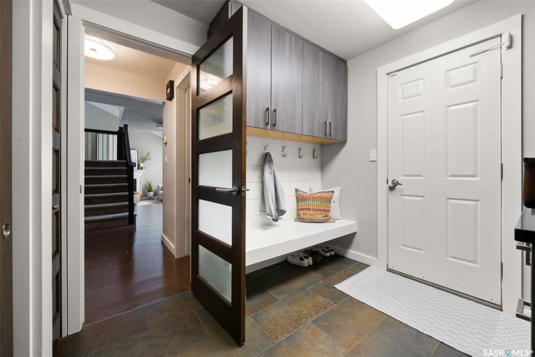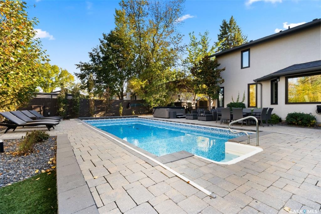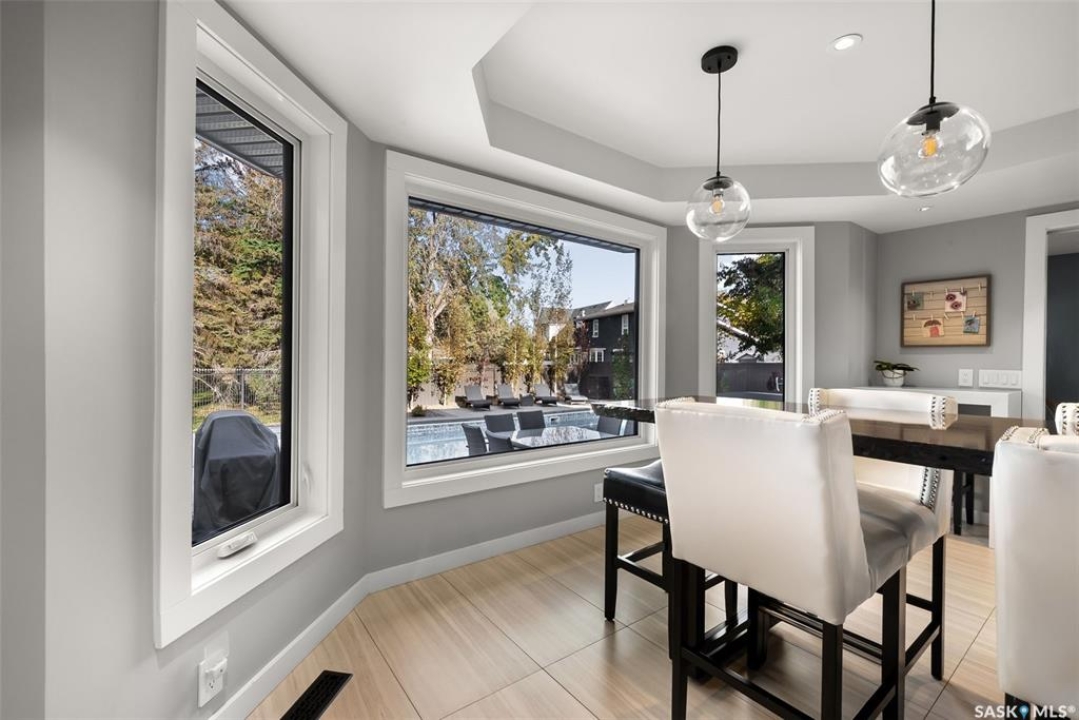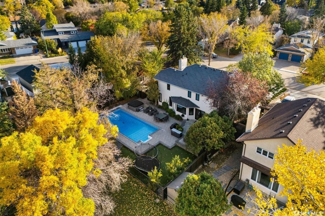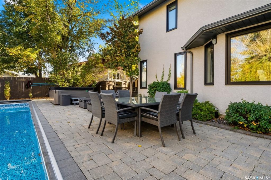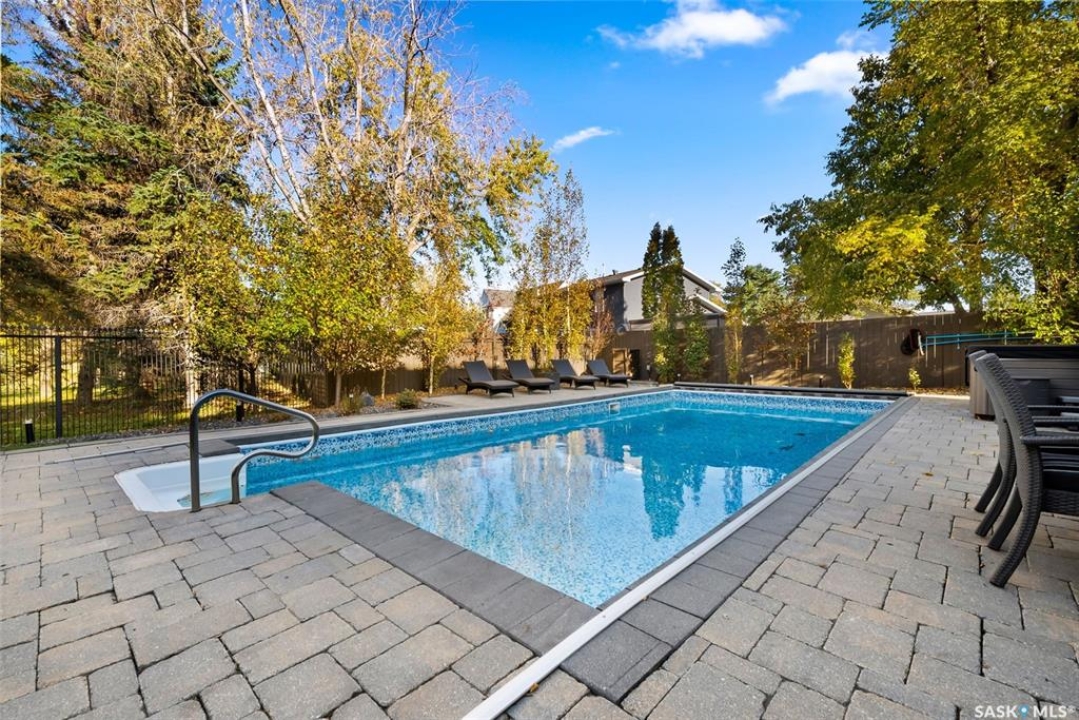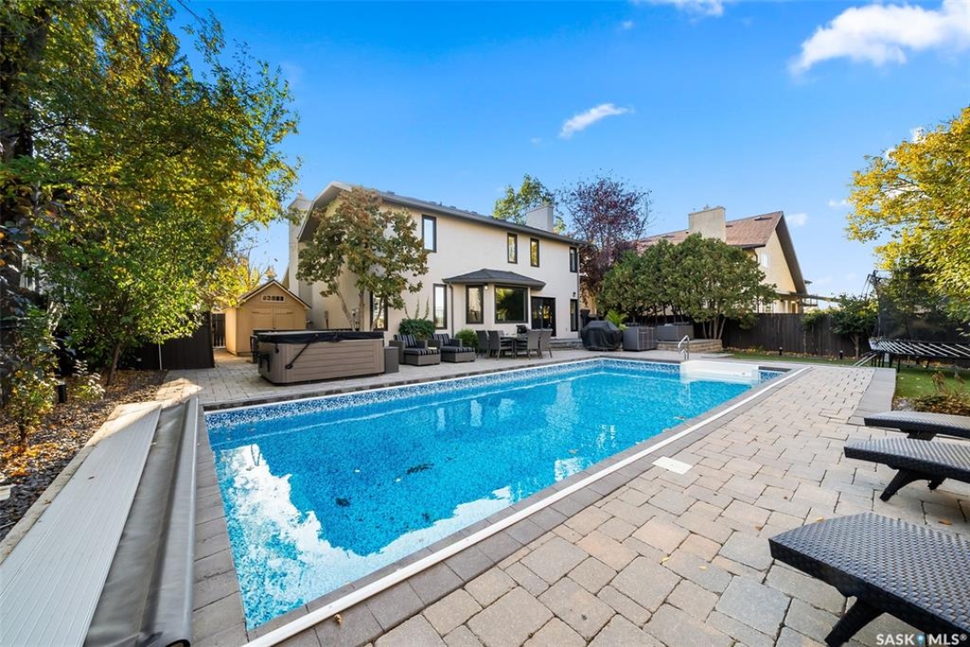 Tucked away on a quiet street in desirable University Park East, this elegantly redesigned 2-storey home offers a rare blend of luxury, comfort, & connection to nature, backing green space & scenic walking paths. The formal living room welcomes you with vaulted ceilings, a gas fireplace with a custom hearth & large windows that fill the space with natural light. It flows seamlessly into the formal dining area, an inviting setting for gatherings. The completely upgraded kitchen is a true showpiece, featuring quartz countertops, Electrolux appliances, tile flooring, and a one-of-a-kind Zapatero wood plank live-edge overhang. Just off the kitchen is a comfortable family room, perfect for relaxing evenings, anchored by a gas fireplace with a marble surround. A custom half bath & mudroom complete the main level. Upstairs are 3 spacious bedrooms and 2 full bathrooms. The primary suite is a luxurious retreat, with a spa-inspired 5-piece ensuite featuring dual sinks, a custom tile shower, and a built-in closet system. Laundry has been thoughtfully relocated upstairs for convenience, & the secondary bedrooms include custom closets. The fully developed basement, built on a structural slab with in-floor heat, is made for entertaining — with an impressive wet bar, a rec room with a gas fireplace & a custom entertainment unit. There's also a 4th bedroom & a 3-piece bath with a large tiled shower. The heated garage is a dream — complete with luxury vinyl tile flooring, custom shelving, insulated 2x6 walls, a new smart garage door, & even a floor pit for the hobbyist or car enthusiast. Step outside to your private backyard oasis, a “secret garden” designed for relaxation. It features a 16x36 ft in-ground pool with upgraded heater, liner, locking safety cover, winter cover, and color-changing pool light. The yard also includes a paving stone patio, wired lighting, mature trees, and lush landscaping for complete tranquility. No detail has been overlooked in this stunning renovation.