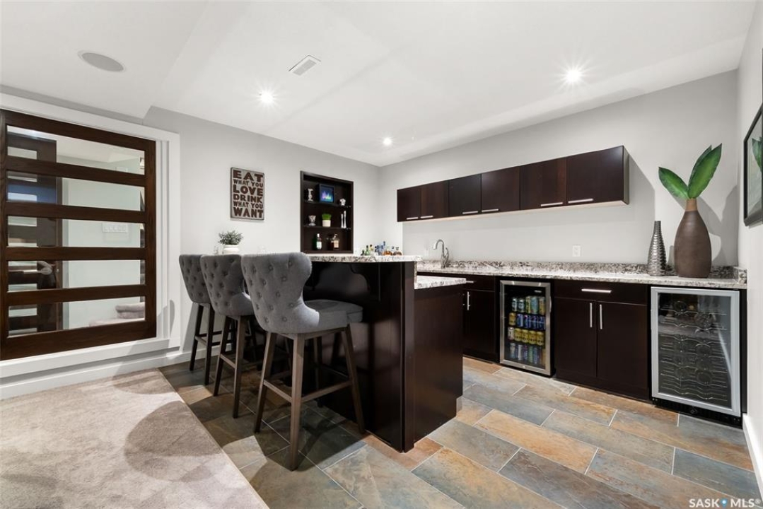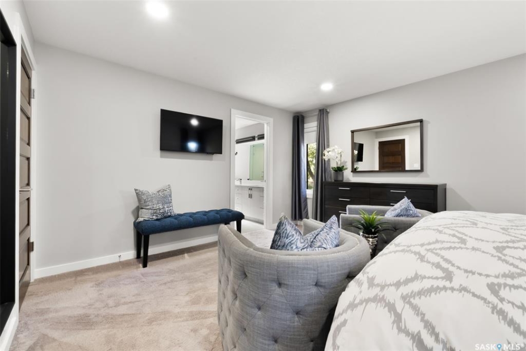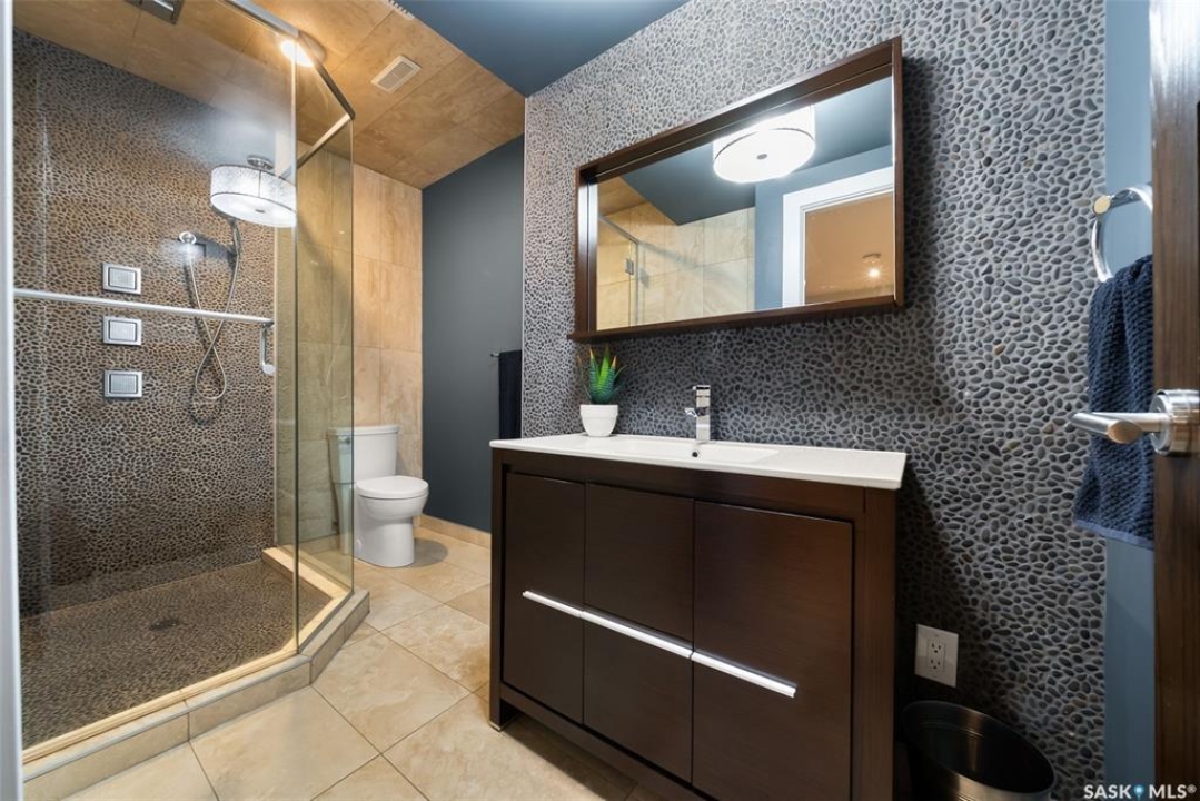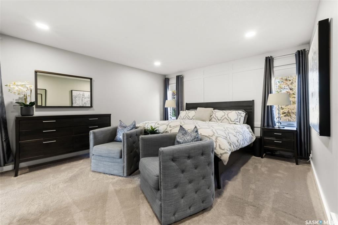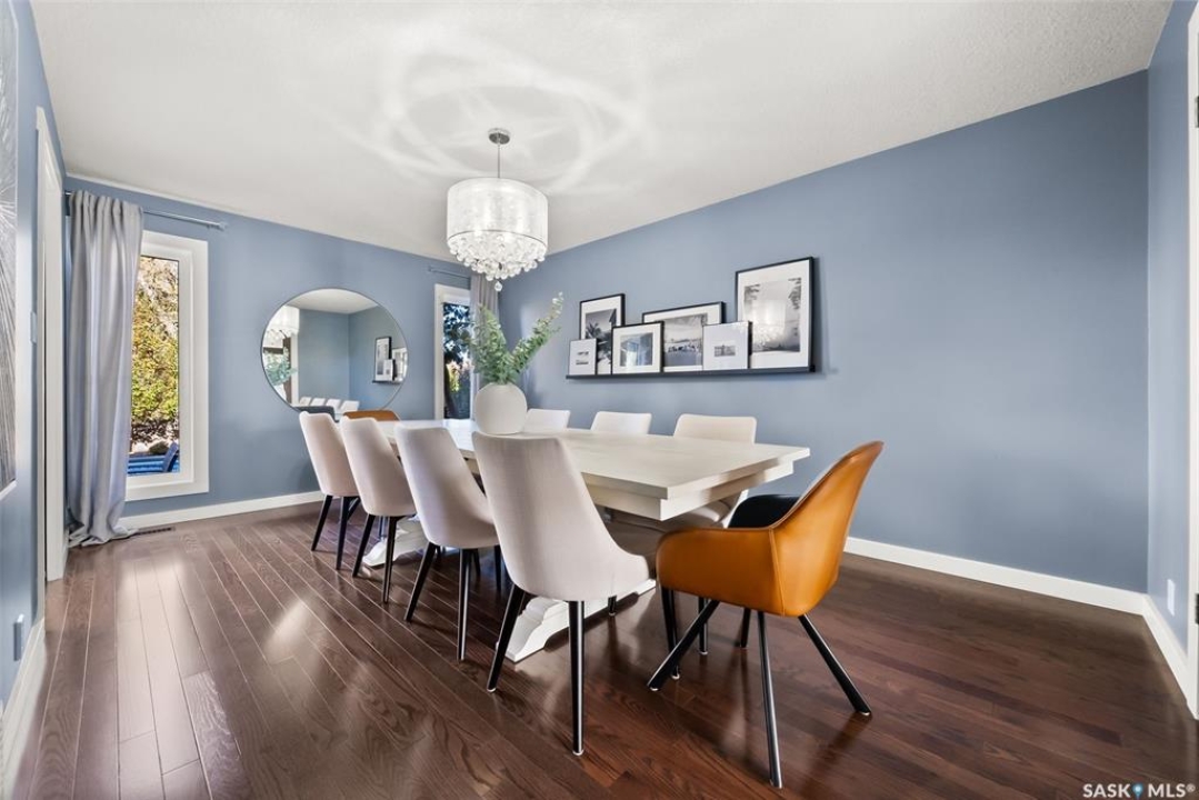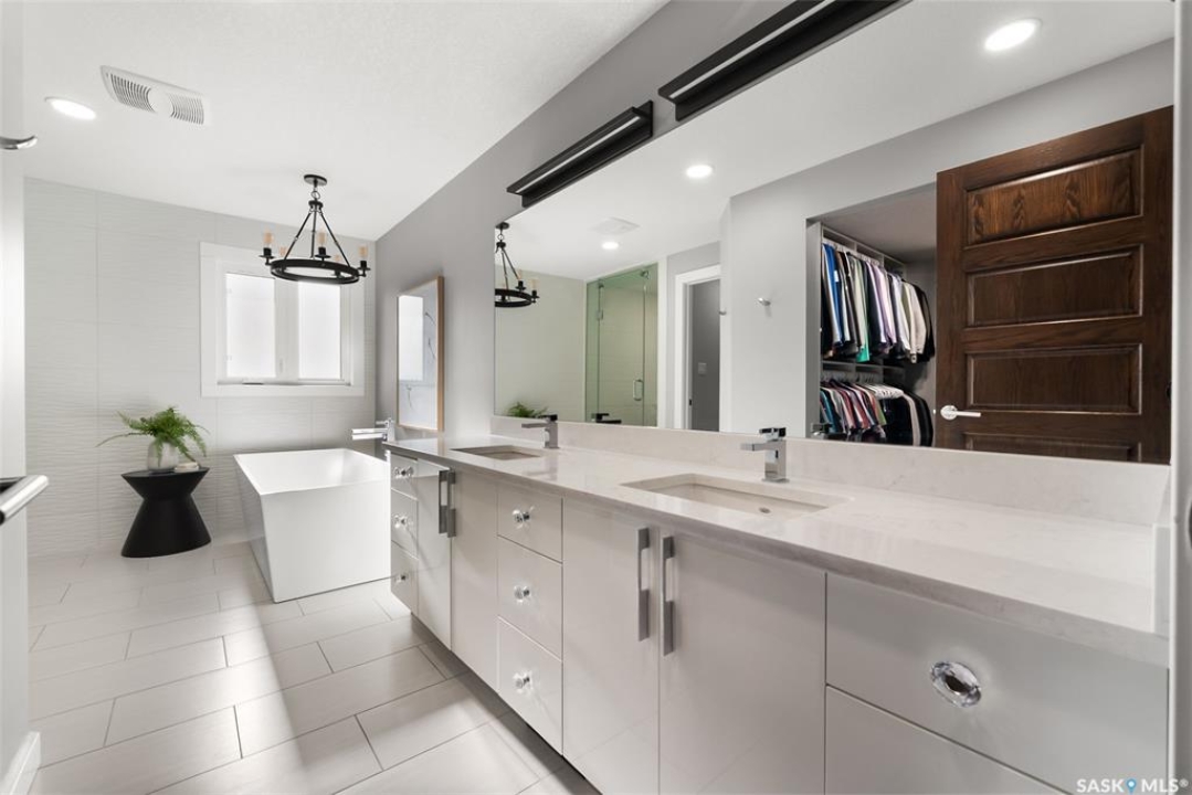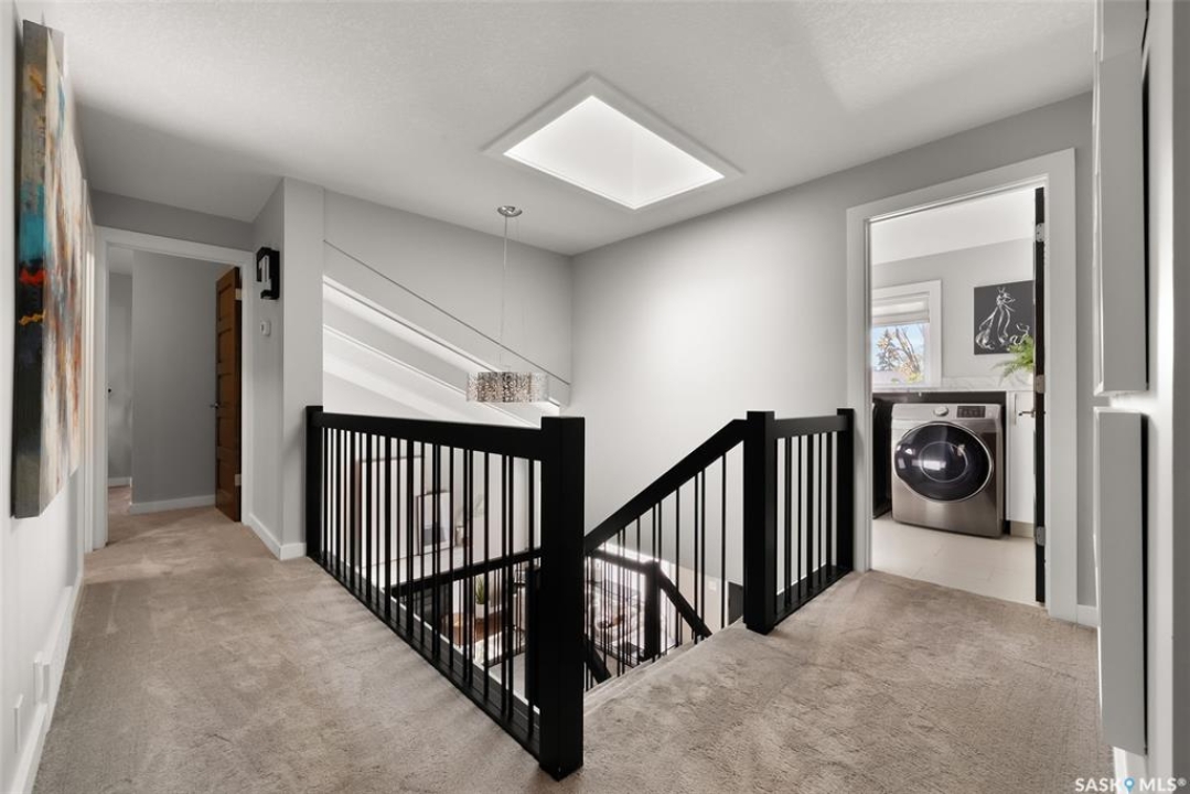 Tucked away on a quiet street in desirable University Park East, this elegantly redesigned 2-storey home offers a rare blend of luxury, comfort, & connection to nature, backing green space & scenic walking paths. The formal living room welcomes you with vaulted ceilings, a gas fireplace with a custom hearth & large windows that fill the space with natural light. It flows seamlessly into the formal dining area, an inviting setting for gatherings. The completely upgraded kitchen is a true showpiece, featuring quartz countertops, Electrolux appliances, tile flooring, and a one-of-a-kind Zapatero wood plank live-edge overhang. Just off the kitchen is a comfortable family room, perfect for relaxing evenings, anchored by a gas fireplace with a marble surround. A custom half bath & mudroom complete the main level. Upstairs are 3 spacious bedrooms and 2 full bathrooms. The primary suite is a luxurious retreat, with a spa-inspired 5-piece ensuite featuring dual sinks, a custom tile shower, and a built-in closet system. Laundry has been thoughtfully relocated upstairs for convenience, & the secondary bedrooms include custom closets. The fully developed basement, built on a structural slab with in-floor heat, is made for entertaining — with an impressive wet bar, a rec room with a gas fireplace & a custom entertainment unit. There's also a 4th bedroom & a 3-piece bath with a large tiled shower. The heated garage is a dream — complete with luxury vinyl tile flooring, custom shelving, insulated 2x6 walls, a new smart garage door, & even a floor pit for the hobbyist or car enthusiast. Step outside to your private backyard oasis, a “secret garden” designed for relaxation. It features a 16x36 ft in-ground pool with upgraded heater, liner, locking safety cover, winter cover, and color-changing pool light. The yard also includes a paving stone patio, wired lighting, mature trees, and lush landscaping for complete tranquility. No detail has been overlooked in this stunning renovation.