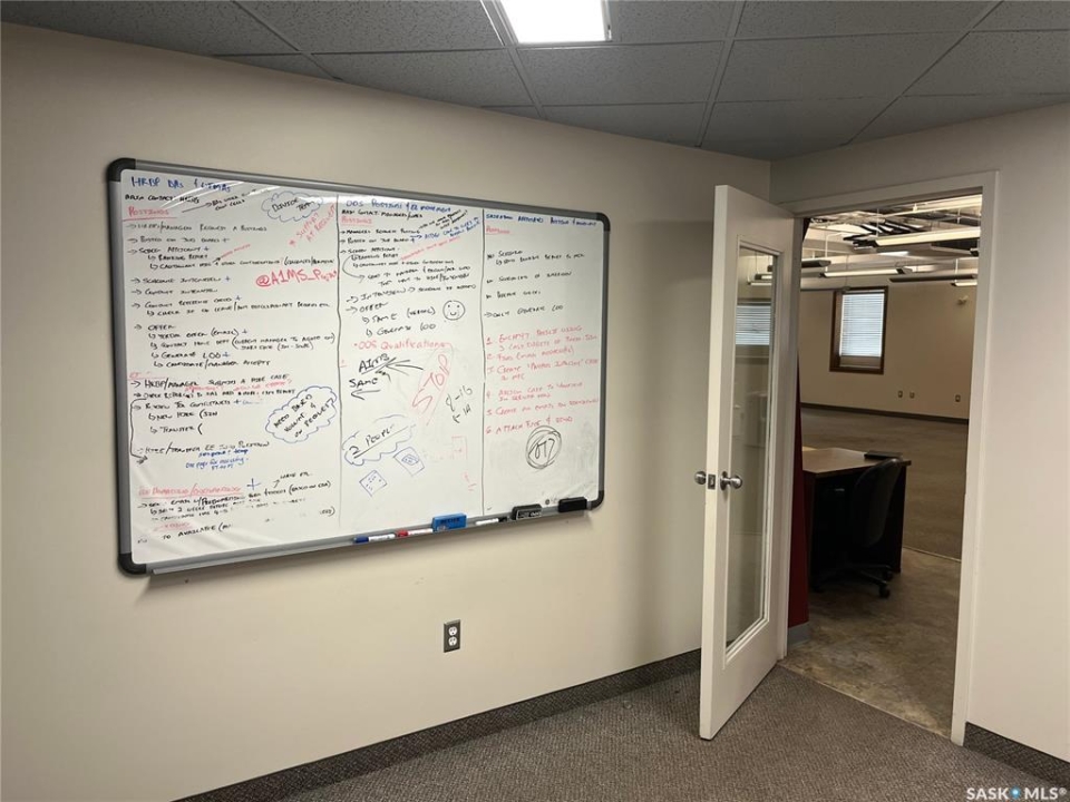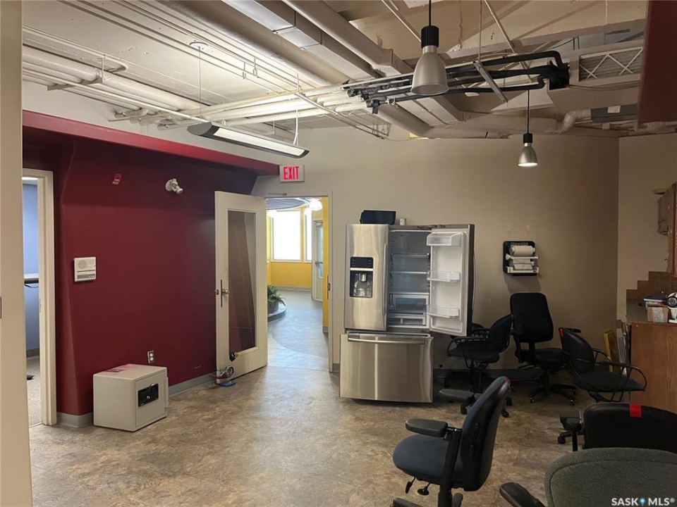 Prime 2nd-floor office space on Saskatoon's vibrant 2nd Avenue. Spanning approx. 5,000 sq ft, this unit is exceptionally well-designed for a professional team. The layout features a welcoming reception area, a large formal board room, four spacious private offices, a kitchenette, and a vast open-concept area ideal for collaborative workstations. A secure, dedicated server room provides critical infrastructure for any tech-reliant business. With onsite parking available and a prestigious downtown address, this is a rare opportunity to secure a premium, move-in-ready office space. Don't miss out!