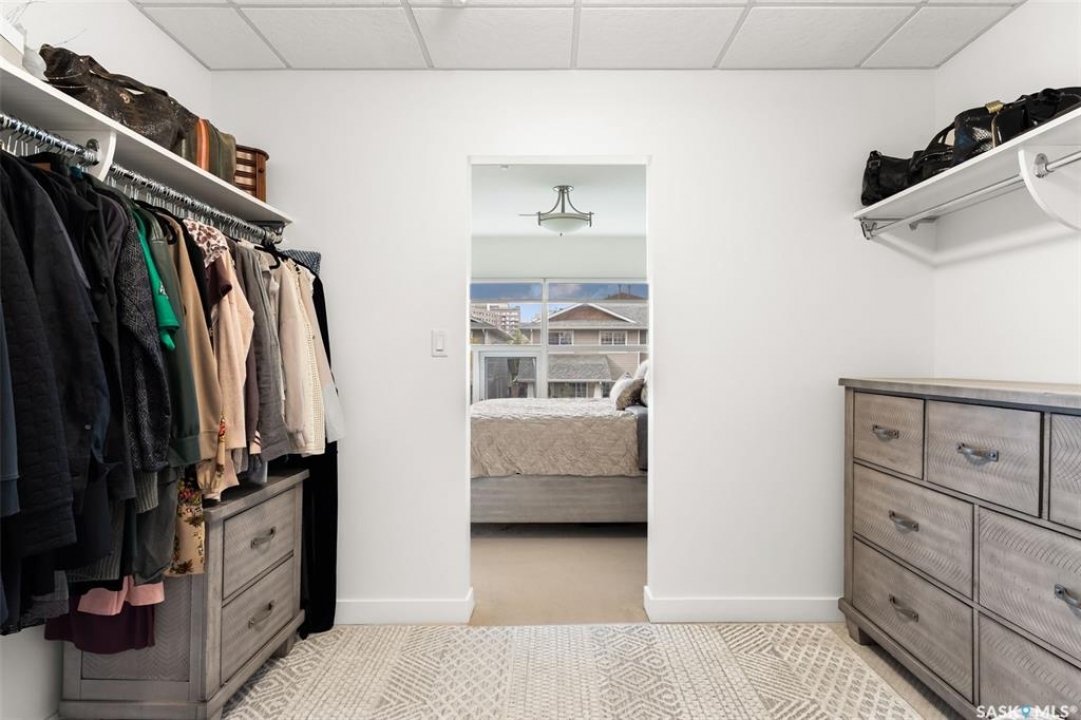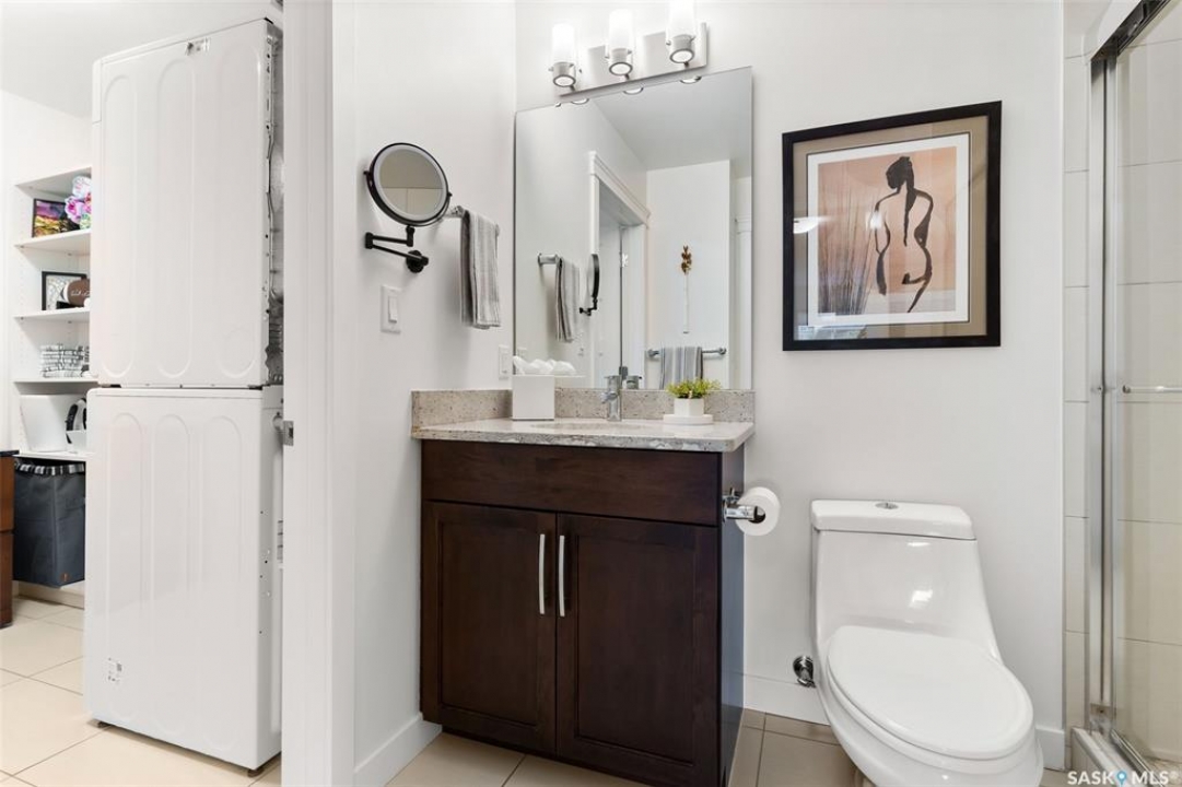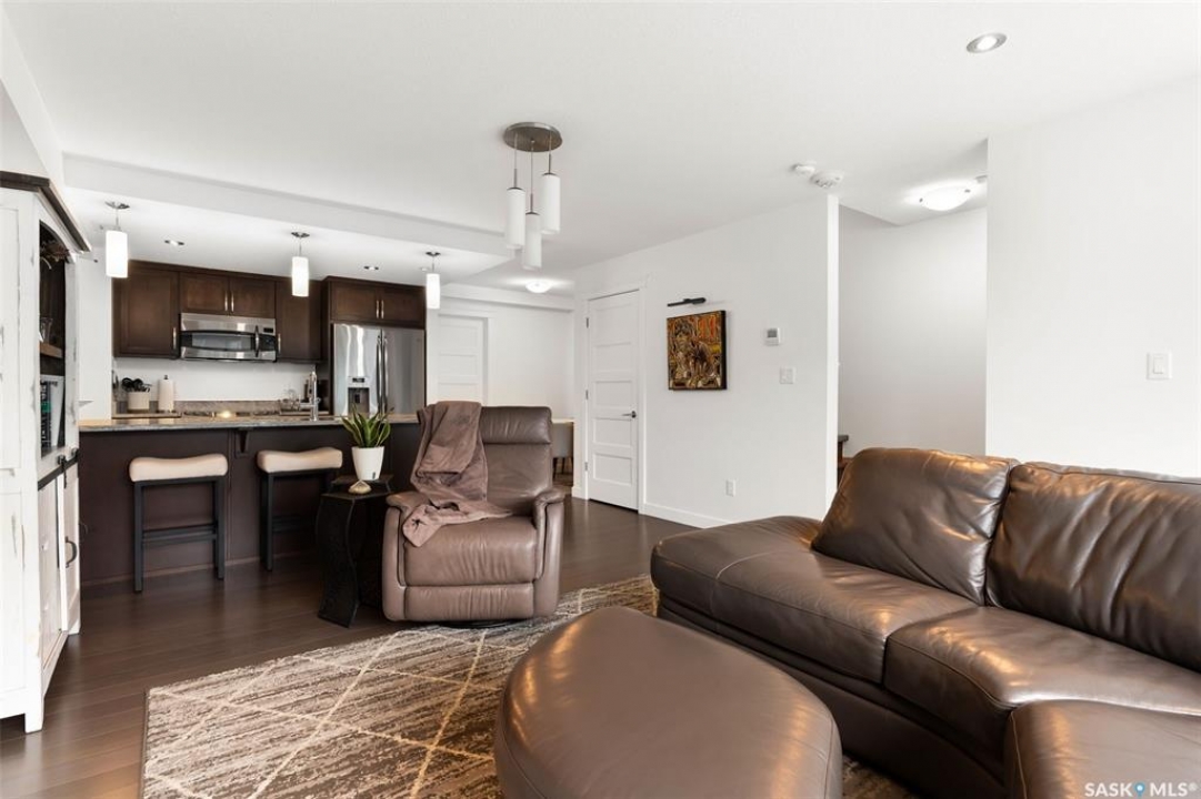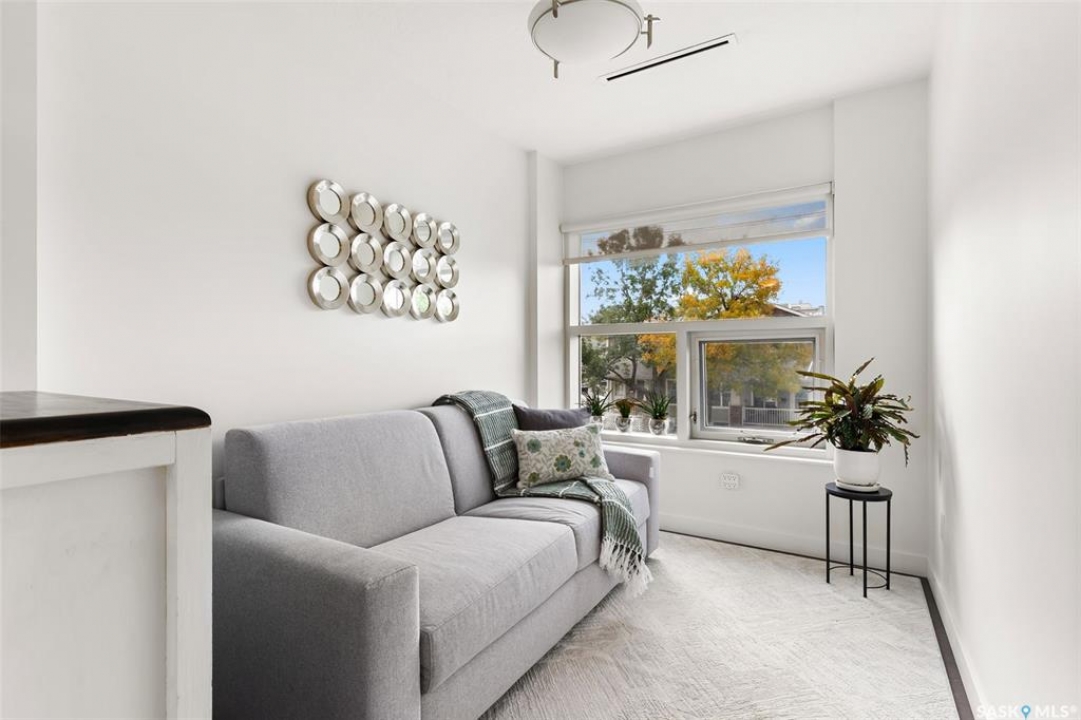 Welcome to this unique and stylish condo ideally located in Regina's Transition area. Bright and open the main floor offers expansive windows, a street-level entrance and private outdoor patio area. Step inside and you will be welcomed to a modern kitchen with plenty of prep space, matching appliances and living and dining areas ideal for entertaining. A thoughtful pantry, designated mudroom and direct access to the underground parking complete this floor. Upstairs, enjoy a spacious primary suite with walk-in closet and luxurious 4-piece ensuite. Here you will also find a versatile den, 2nd full bathroom and laundry/storage room. Additional perks include generous underground parking with storage unit, access to the roof top patio, walking track and fitness centre and condo fees that include heat and water utilities. With its unbeatable location, smart layout and elevated finish this condo is the perfect blend of comfort, style and convenience.