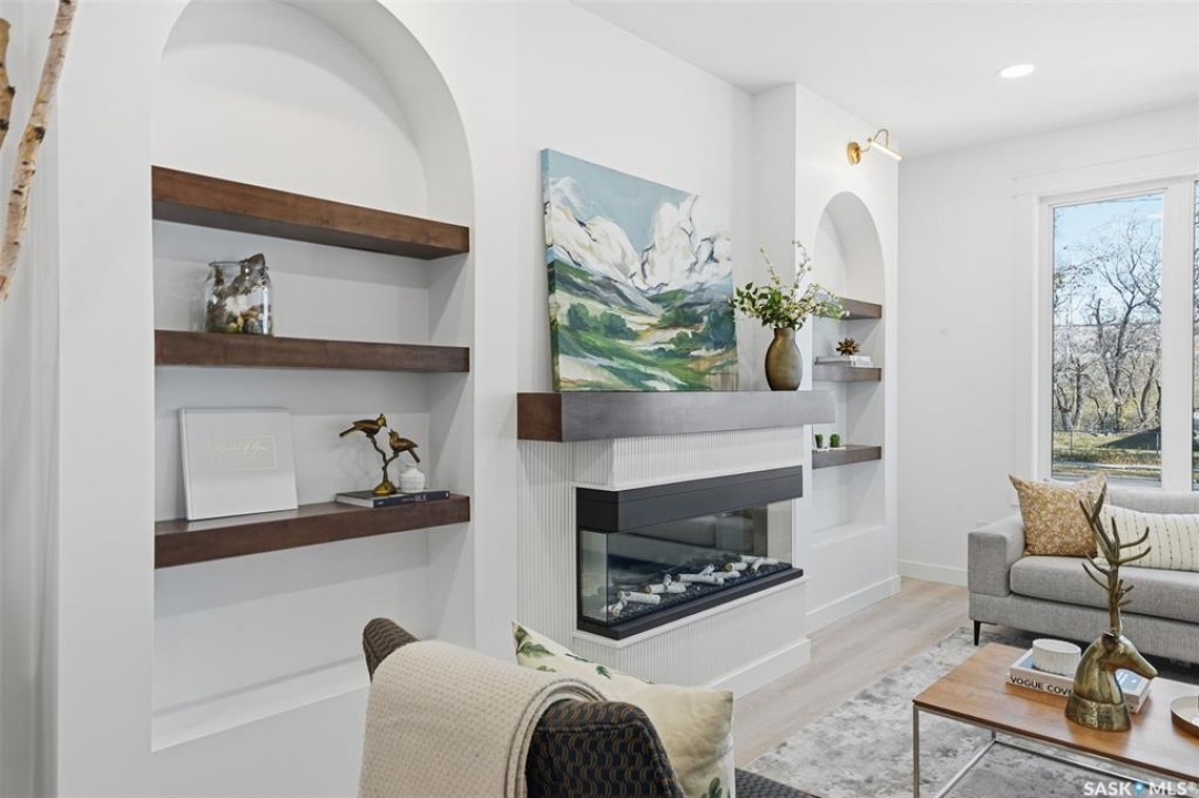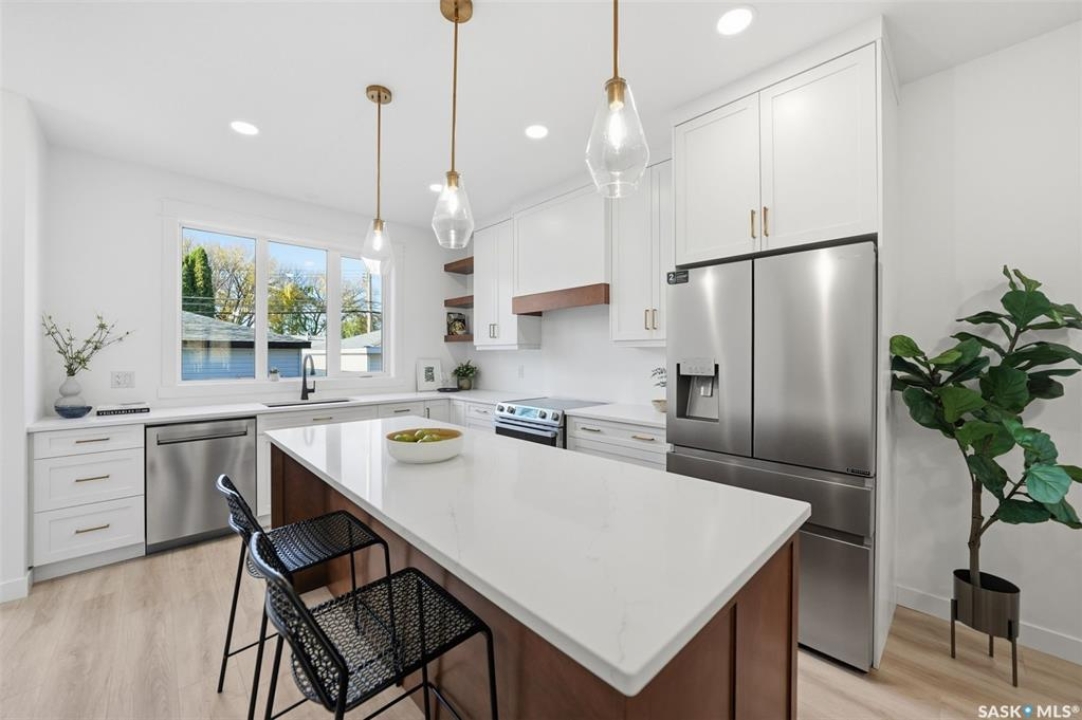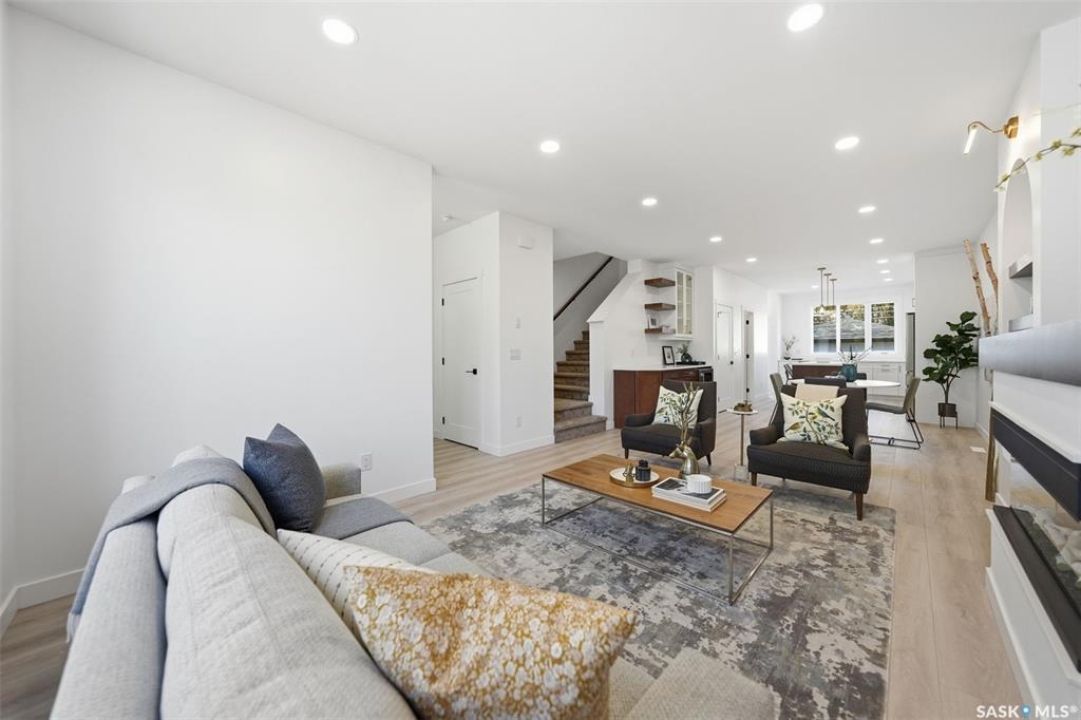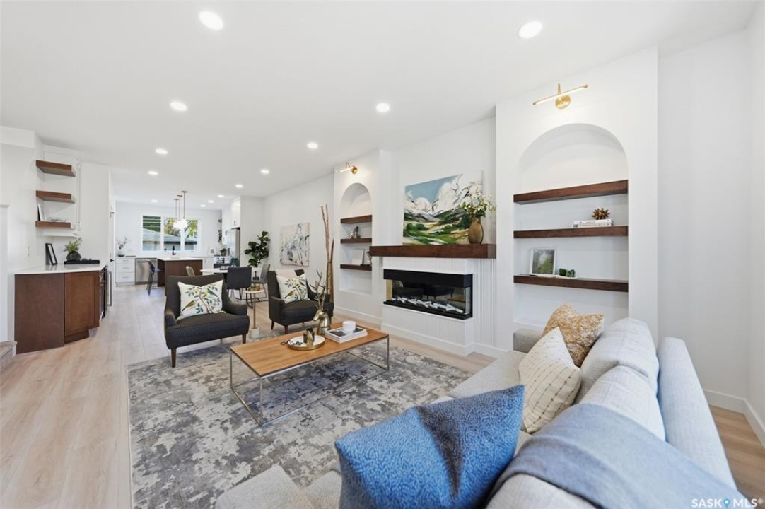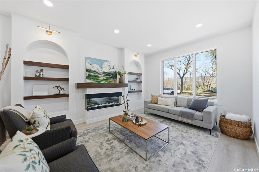 Here is your dream property just mere steps from the river and connected to Saskatchewan Crescent. The easy access to downtown and close to all amenities makes this location very desirable. Situated at 1914 Herman Ave is this new custom 1672sqft two storey outfitted with high end finishings and many features throughout, including a double detached garage and even basement suite ready! The curb appeal welcomes you with Hardie Board siding on the front of the home accented with a front covered landing. Inside the main floor you are greeted with 9' ceilings with huge windows at both ends of the home allowing for an abundance of natural light. The floorplan is an open concept layout with an upgraded designer kitchen, white cabinets accented with a maple stained island topped with quartz counters. There is a full kitchen appliance package included. There is a full size walkin pantry to host all your supplies for cooking and entertaining to help keep you fully organized. Extra features such as a built in coffee/drink bar with an under counter refrigerator helps make this home feel luxurious. The living room boasts custom wall features & a 3 sided fireplace. Upstairs hosts your 3 bedrooms & 2 more bathrooms & laundry off the bedrooms. Also featured upstairs is another living space with the bonus room - with a feature wall to tie it all together. The primary bedroom has a walkin closet & a 3pc ensuite bathroom with a tiled walkin shower. Downstairs you have the added feature of hosting a potential basement suite with separate entrance, boasting 9' ceiling, secondary panel, and roughed in plumbing - this is a very easy location/community to be able to rent out your basement suite for that extra mortgage helper! This home also features a 20x22 garage in the rear of the lot. This home has so many custom features throughout keeping the flow consistent and impressive. Possession is ready to go! Contact our Team today for more info on this home.