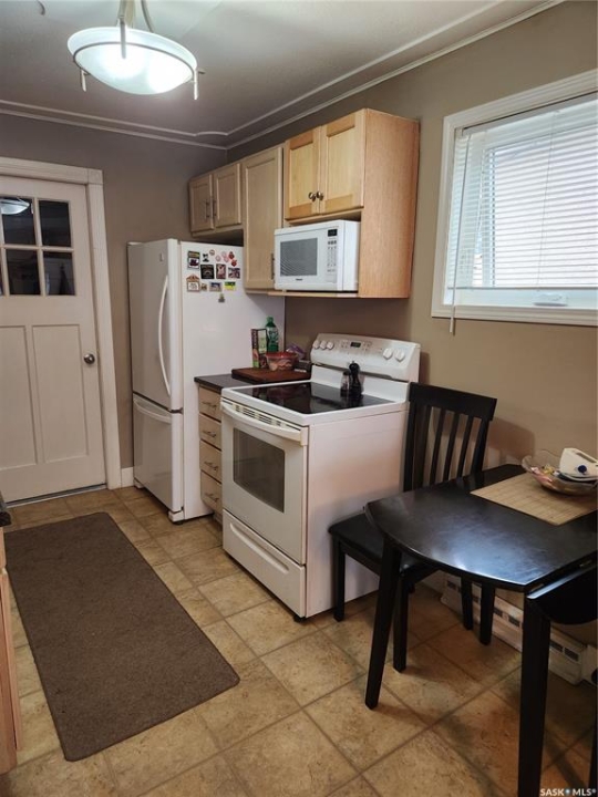 CUTE AS A BUTTON AND MOVE IN READY! This charming2 bedroom home is clean, well cared for and full of character. Features include an eat-in kitchen, updated windows, newer siding and a durable metal roof. Enjoy the comfort of heated front and back porches...perfect for extra living space year round. The part basement includes the washer, dryer, utilities and extra storage. The low maintenance zero-scape yard offers plenty of room for outdoor enjoyment plus a fire-pit. There's also a single garage and RV parking for added convenience. A great home for down sizing, starting out or investing!