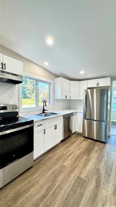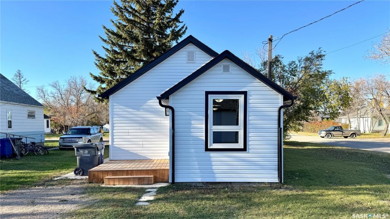 212 Garfield Street, Davidson, Saskatchewan – FULLY RENOVATED BUNGALOW. 212 Garfield Street in Davidson, SK is a fully renovated 650 sq. ft. bungalow originally built in 1943. This 2-bedroom, 1-bath home has been completely rebuilt from the studs up, including new insulation, plumbing, electrical (100-amp service), windows, doors, siding, and shingles. Inside, the home features a modern layout with new vinyl plank flooring, updated lighting and fixtures, and fresh paint and trim throughout. The eat-in kitchen includes new cabinetry, countertops, and appliances. The living room has an electric fireplace, and both bedrooms have been completely updated. The 4-piece bathroom has all new fixtures and finishes. A convenient laundry/mudroom leads to a new 8' x 8' deck overlooking the backyard. The property sits on a 44' x 132' lot and includes a 16' x 24' insulated single-car detached garage with power. Everything in the home is NEW AND MOVE-IN READY. Located in the town of Davidson, between Saskatoon and Regina along Highway 11, this property offers small-town living with modern updates. 2025 property taxes are $1,619. If you are looking for a renovated home for sale in Davidson, Saskatchewan, 212 Garfield Street is an excellent option - efficient, modern, and affordable. Call today!