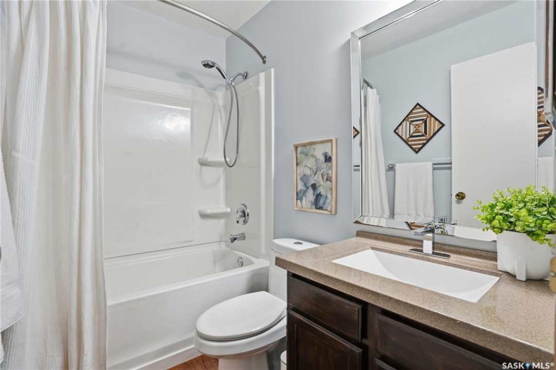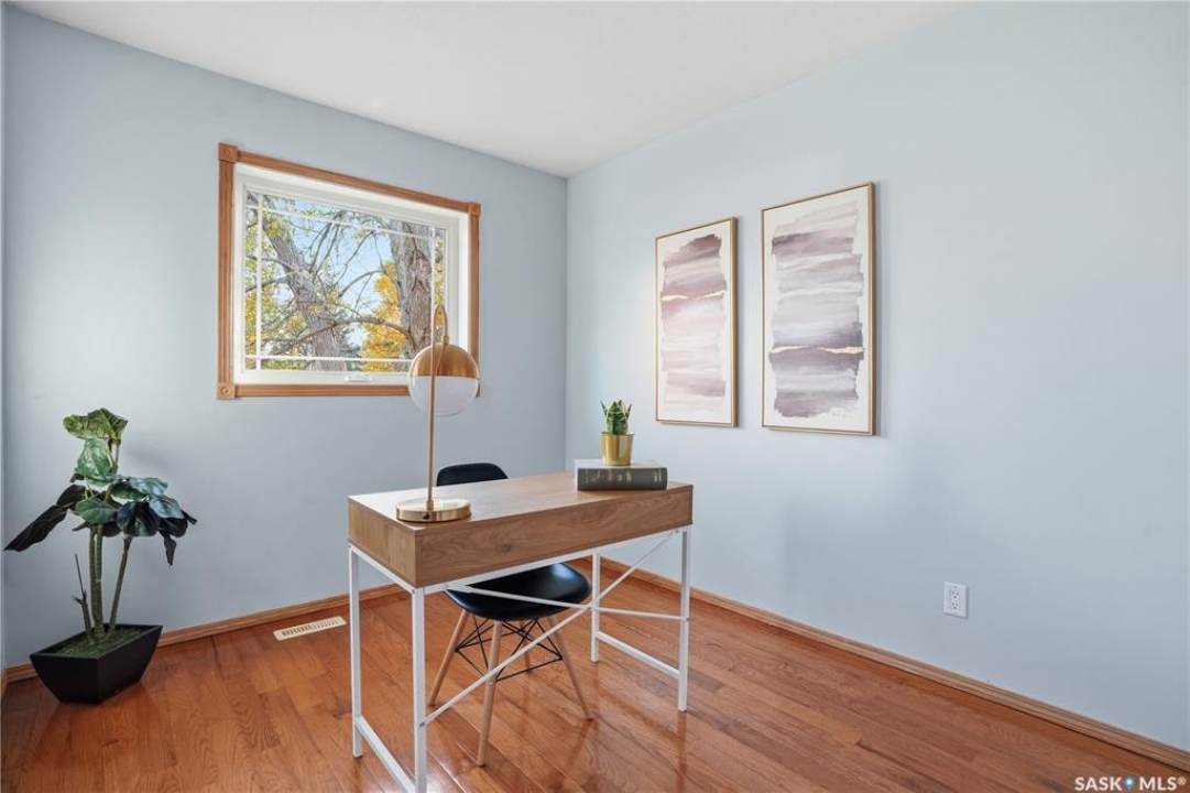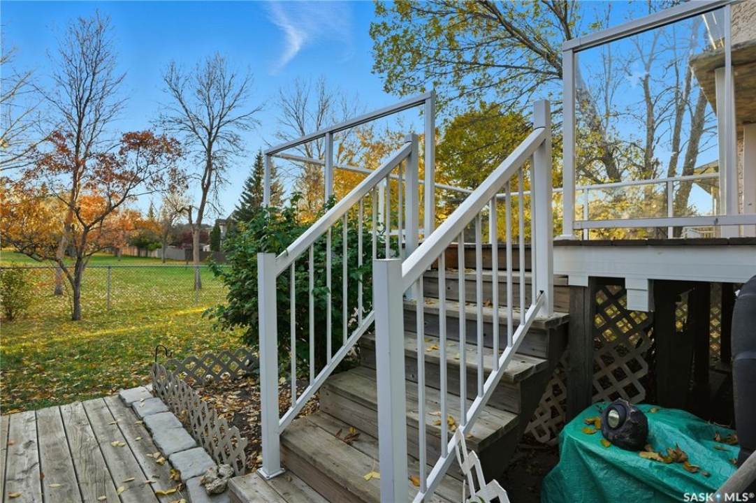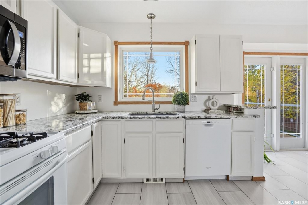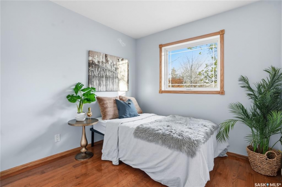 Meticulously cared for by the long-time owner, this Crawford Built, sun-filled bi-level is perfectly positioned with Ewart Park behind the back gate — a quiet, north-end retreat with all the family-friendly conveniences nearby. Warm hardwood flows through most of the main floor into a bright living room centered around a gas fireplace — ideal for cozy winter evenings. Down the hall you will find the primary bedroom that offers a private 2-piece ensuite, plus two additional main-floor bedrooms with full closets and a 4-piece bathroom. The large eat-in kitchen features painted cabinetry, granite counters, a good-sized pantry and a window overlooking the park. Dining doors open to a recently resurfaced deck with a gas line for the BBQ and a fully fenced yard that enjoys peaceful park views; a play park and walking paths are just steps from your back gate. Close to Lakewood Park and MacNeil Elementary School. The fully developed basement fills the home with natural light and provides a generous rec area with a second gas fireplace — perfect for movie nights. There is the 4th bedroom along with a den that could be used as a home office, toy area or 5th bedroom. Laundry is located in the utility/storage room, and 3rd bathroom with a gorgeous claw-foot bathtub to soak away the day completes this level. Improvements include shingles (2022), fridge (2025),triple-pane PVC windows, updated bathrooms and kitchen — thoughtful improvements that add comfort and value. Tucked away yet close to north-end amenities, this home blends convenience with tranquility. Ready to see it in person? Contact your agent today!