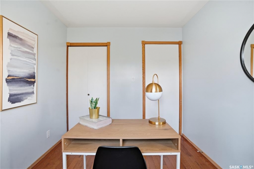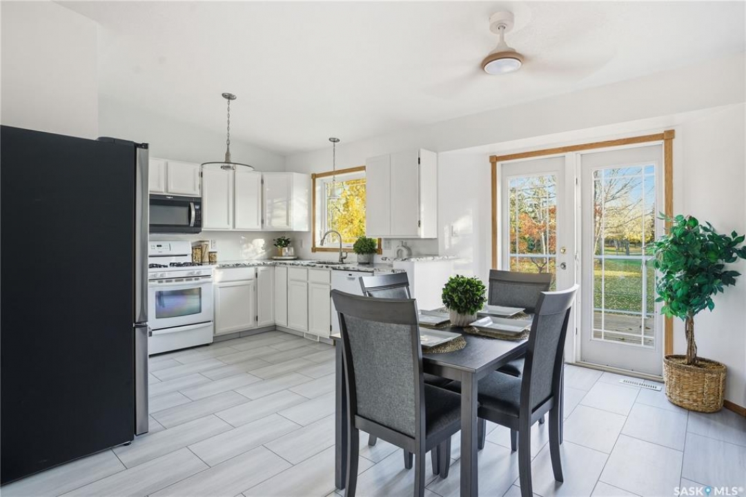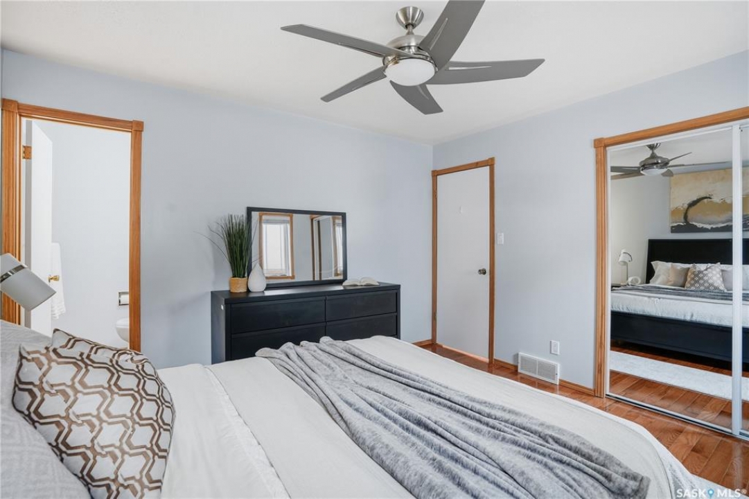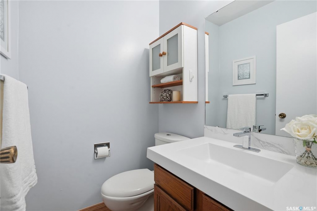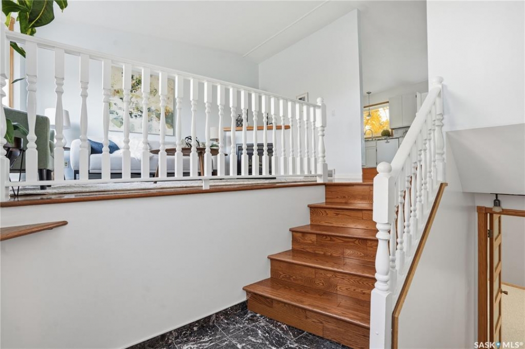 Meticulously cared for by the long-time owner, this Crawford Built, sun-filled bi-level is perfectly positioned with Ewart Park behind the back gate — a quiet, north-end retreat with all the family-friendly conveniences nearby. Warm hardwood flows through most of the main floor into a bright living room centered around a gas fireplace — ideal for cozy winter evenings. Down the hall you will find the primary bedroom that offers a private 2-piece ensuite, plus two additional main-floor bedrooms with full closets and a 4-piece bathroom. The large eat-in kitchen features painted cabinetry, granite counters, a good-sized pantry and a window overlooking the park. Dining doors open to a recently resurfaced deck with a gas line for the BBQ and a fully fenced yard that enjoys peaceful park views; a play park and walking paths are just steps from your back gate. Close to Lakewood Park and MacNeil Elementary School. The fully developed basement fills the home with natural light and provides a generous rec area with a second gas fireplace — perfect for movie nights. There is the 4th bedroom along with a den that could be used as a home office, toy area or 5th bedroom. Laundry is located in the utility/storage room, and 3rd bathroom with a gorgeous claw-foot bathtub to soak away the day completes this level. Improvements include shingles (2022), fridge (2025),triple-pane PVC windows, updated bathrooms and kitchen — thoughtful improvements that add comfort and value. Tucked away yet close to north-end amenities, this home blends convenience with tranquility. Ready to see it in person? Contact your agent today!