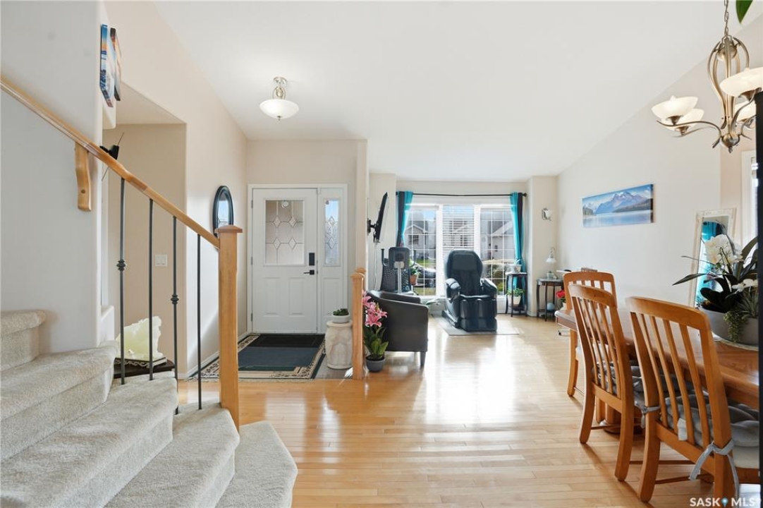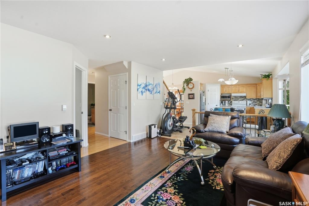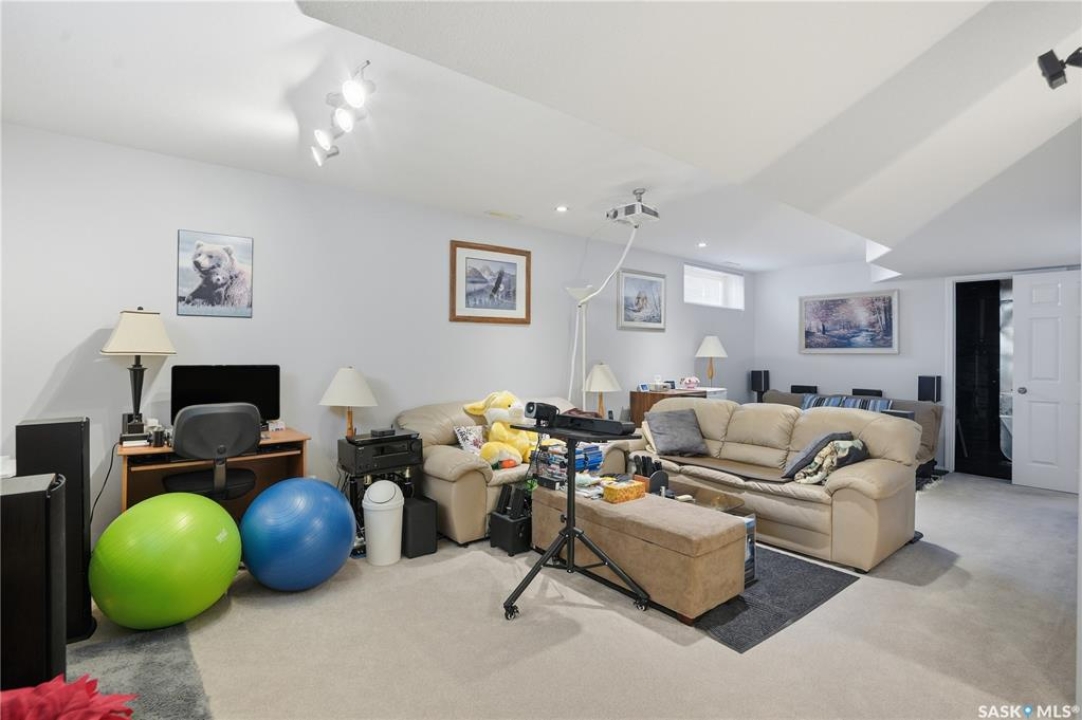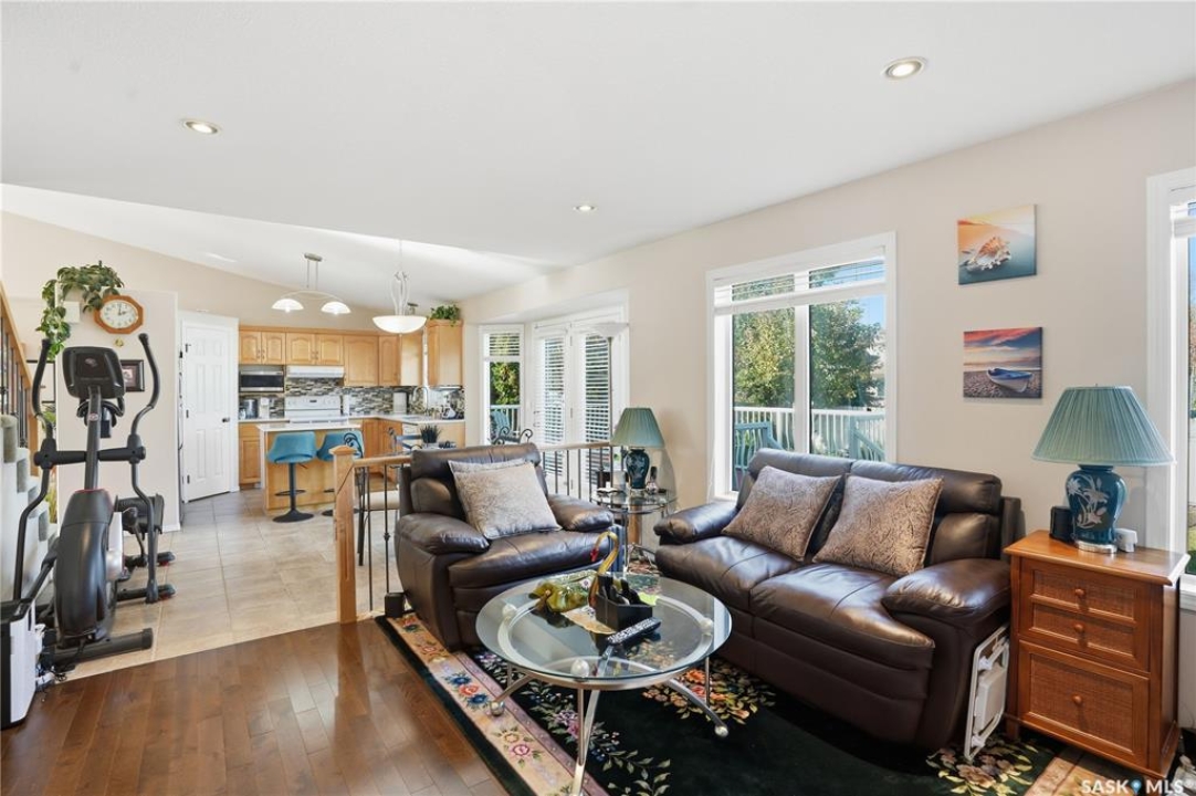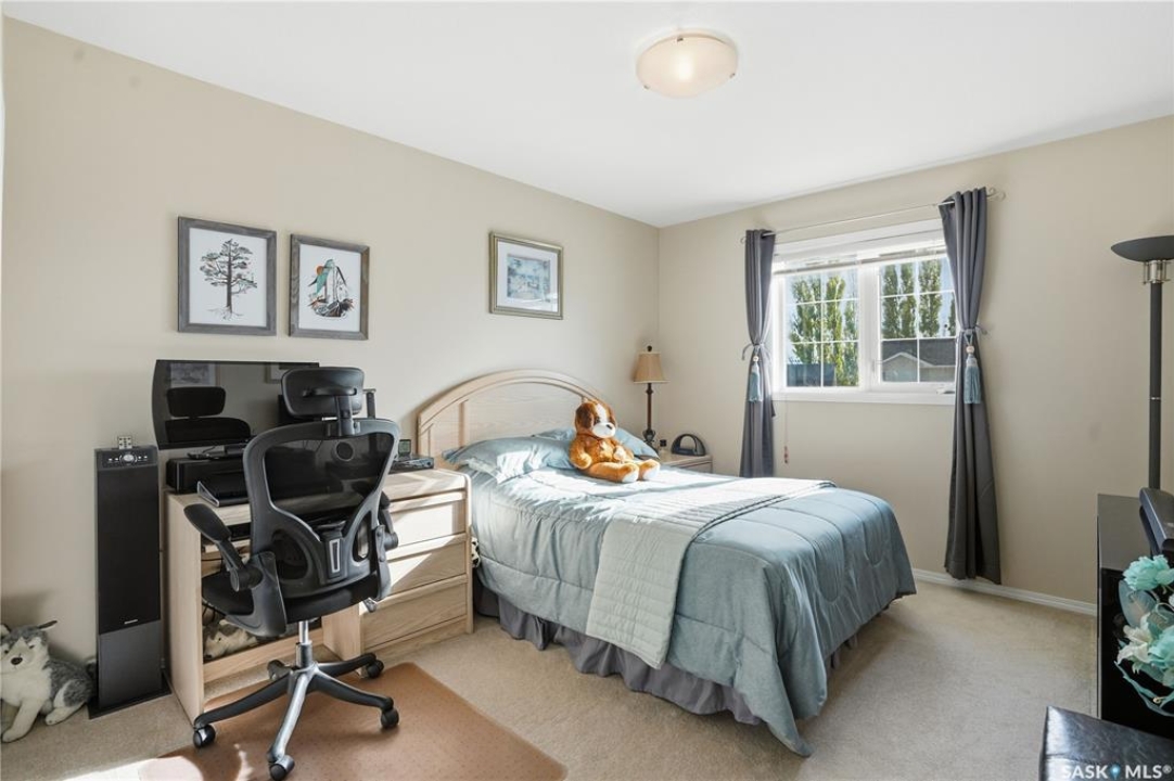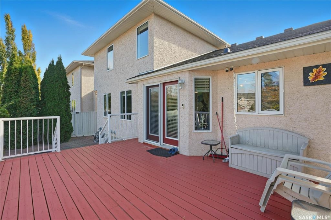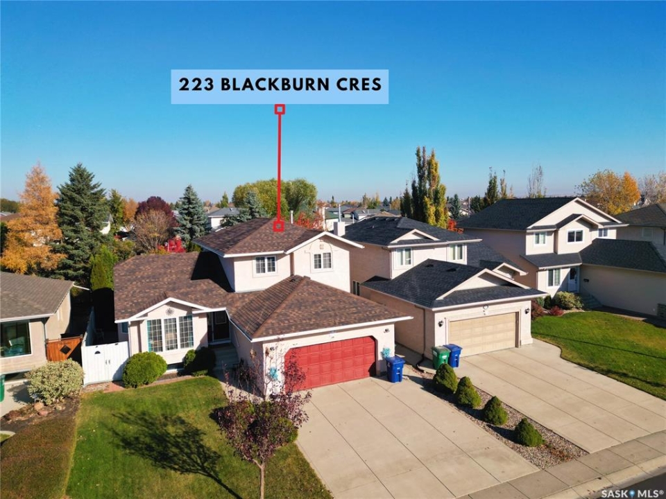 Welcome to your move-in ready new home, 223 Blackburn Cres, a premium-built 2-storey split in Saskatoon's sought-after Briarwood neighborhood. Built in 2004 and meticulously maintained, this 1,993 sq. ft. home offers 5 bedrooms, 4 bathrooms that make living comfortable and life enjoyable. The exterior features stucco and newer asphalt shingles (2022). A good-size 22*22 ft double garage. Additional features include Central Air, Central Vac, HRV, and smart-home systems. All bathrooms feature custom-built, cultured marble countertops. The landscaped yard boasts a large 20×14 ft. deck with natural gas hookup, a brick patio, and underground sprinklers front and back. Inside, the main floor welcomes you with a spacious vaulted-ceiling, hardwood flooring living room, a formal dining area, and a kitchen featuring maple cabinets, granite countertops, backsplash, walk-in pantry and island. A large bay-windowed eating area opens to the deck. A full family room with a gas fireplace, a good-sized office, a 2-pc bath, and a separate laundry room complete the main floor. Upstairs, the primary suite includes a walk-in closet and 4-pc ensuite with Jacuzzi tub and corner shower. Two additional large bedrooms and another full bath offer ample spaces to accommodate a growing family with teenagers. The fully finished basement by the original builder features a large family room with 3D projector, 120" screen, and sound system (negotiable), plus two oversized bedrooms, a 4-pc bath, a storage den and a utility room with newer high-efficiency furnace and water heater (2022). The basement offers potential for conversion into a self-contained suite. The backyard is filled with trees and shrubs—perfect for summer enjoyments. Smart-home features include smart thermostats, a water-leak alarm system, and a backyard weather station. Almost everything you see in the house can stay (subject to negotiation). A rare find combining quality, comfort, and practicality—perfect for a growing family.