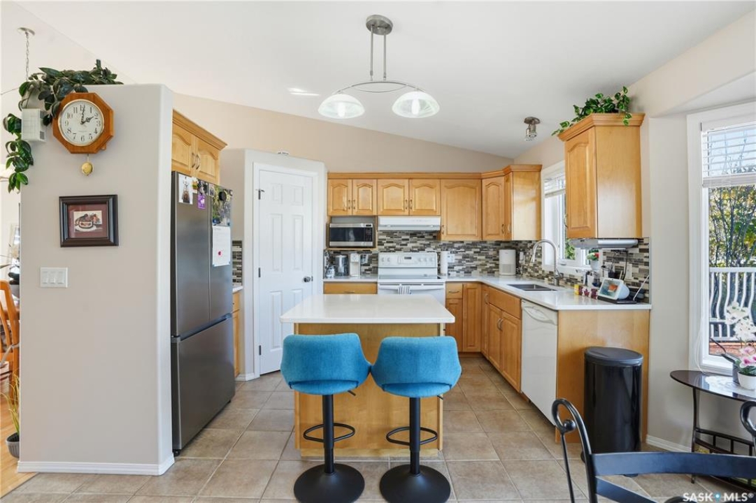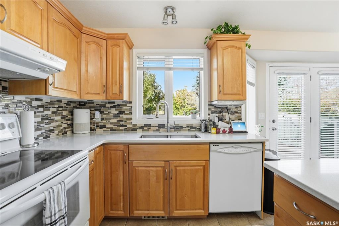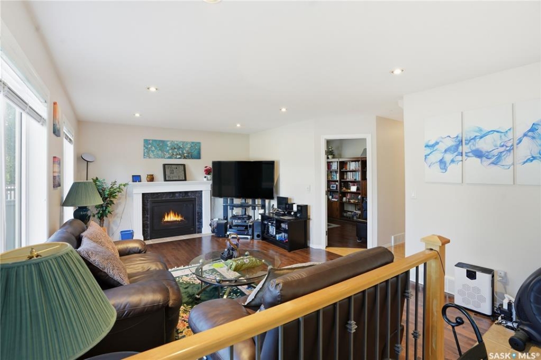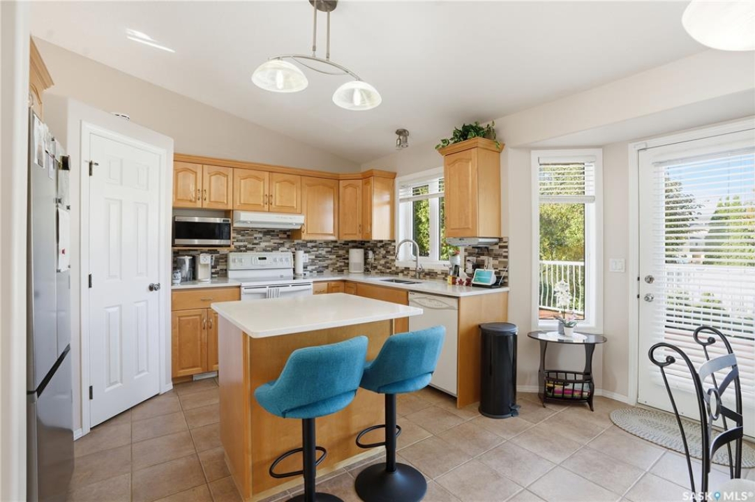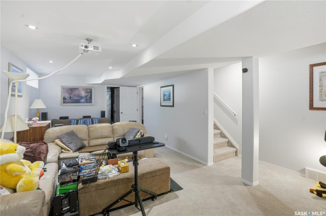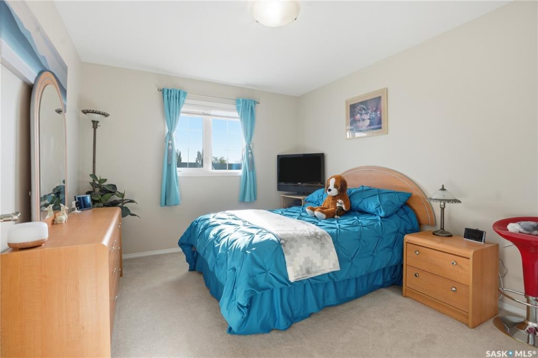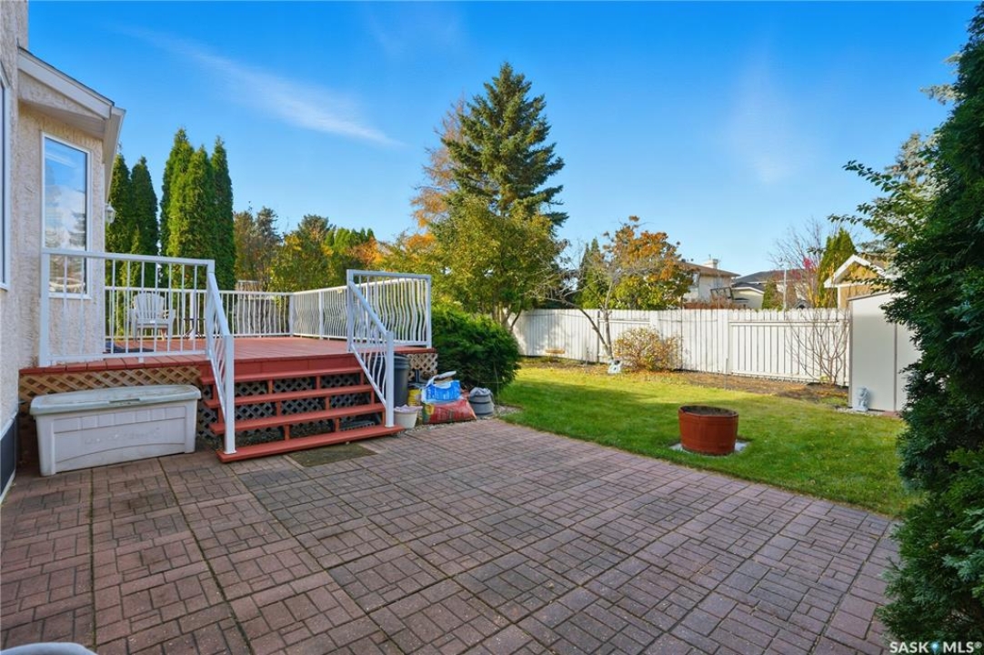 Welcome to your move-in ready new home, 223 Blackburn Cres, a premium-built 2-storey split in Saskatoon's sought-after Briarwood neighborhood. Built in 2004 and meticulously maintained, this 1,993 sq. ft. home offers 5 bedrooms, 4 bathrooms that make living comfortable and life enjoyable. The exterior features stucco and newer asphalt shingles (2022). A good-size 22*22 ft double garage. Additional features include Central Air, Central Vac, HRV, and smart-home systems. All bathrooms feature custom-built, cultured marble countertops. The landscaped yard boasts a large 20×14 ft. deck with natural gas hookup, a brick patio, and underground sprinklers front and back. Inside, the main floor welcomes you with a spacious vaulted-ceiling, hardwood flooring living room, a formal dining area, and a kitchen featuring maple cabinets, granite countertops, backsplash, walk-in pantry and island. A large bay-windowed eating area opens to the deck. A full family room with a gas fireplace, a good-sized office, a 2-pc bath, and a separate laundry room complete the main floor. Upstairs, the primary suite includes a walk-in closet and 4-pc ensuite with Jacuzzi tub and corner shower. Two additional large bedrooms and another full bath offer ample spaces to accommodate a growing family with teenagers. The fully finished basement by the original builder features a large family room with 3D projector, 120" screen, and sound system (negotiable), plus two oversized bedrooms, a 4-pc bath, a storage den and a utility room with newer high-efficiency furnace and water heater (2022). The basement offers potential for conversion into a self-contained suite. The backyard is filled with trees and shrubs—perfect for summer enjoyments. Smart-home features include smart thermostats, a water-leak alarm system, and a backyard weather station. Almost everything you see in the house can stay (subject to negotiation). A rare find combining quality, comfort, and practicality—perfect for a growing family.