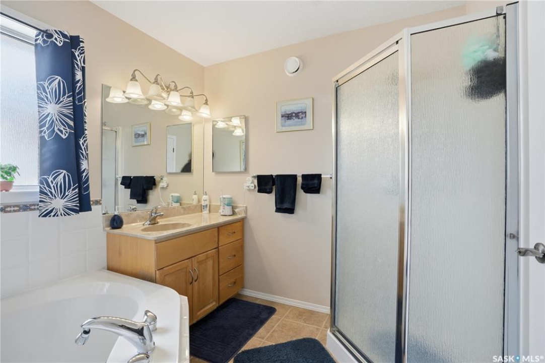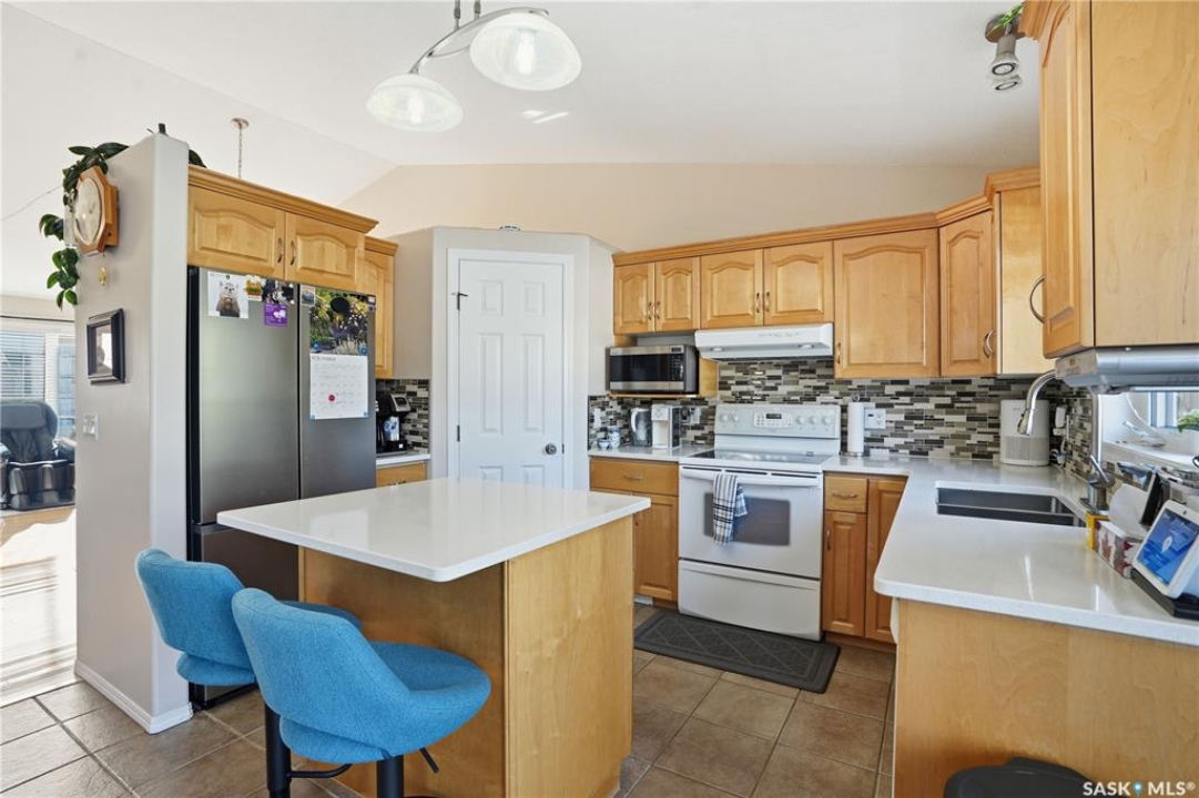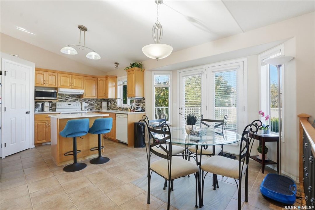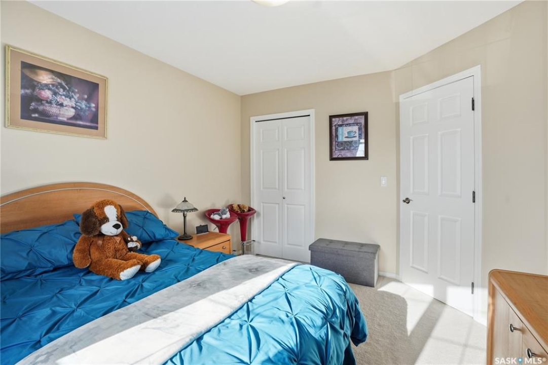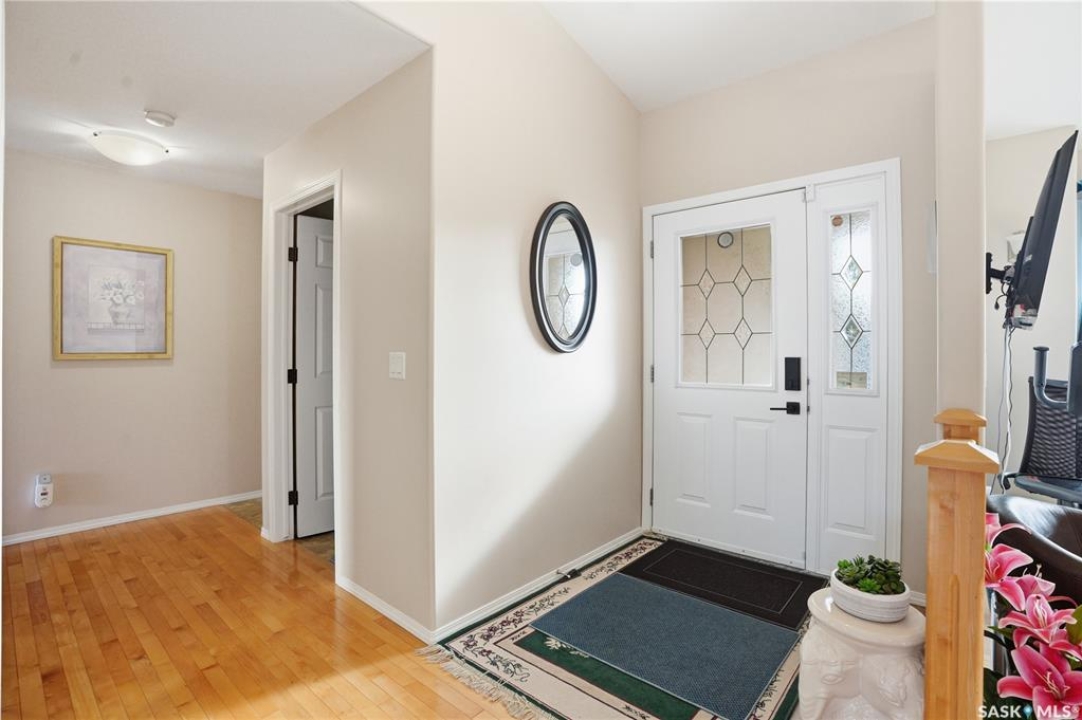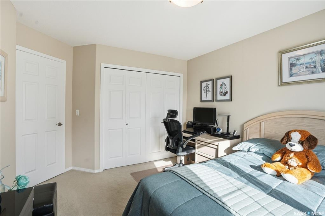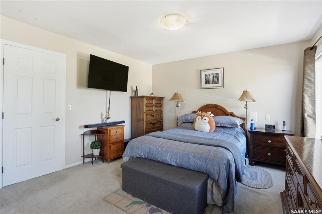Welcome to your move-in ready new home, 223 Blackburn Cres, a premium-built 2-storey split in Saskatoon's sought-after Briarwood neighborhood. Built in 2004 and meticulously maintained, this 1,993 sq. ft. home offers 5 bedrooms, 4 bathrooms that make living comfortable and life enjoyable. The exterior features stucco and newer asphalt shingles (2022). A good-size 22*22 ft double garage. Additional features include Central Air, Central Vac, HRV, and smart-home systems. All bathrooms feature custom-built, cultured marble countertops. The landscaped yard boasts a large 20×14 ft. deck with natural gas hookup, a brick patio, and underground sprinklers front and back. Inside, the main floor welcomes you with a spacious vaulted-ceiling, hardwood flooring living room, a formal dining area, and a kitchen featuring maple cabinets, granite countertops, backsplash, walk-in pantry and island. A large bay-windowed eating area opens to the deck. A full family room with a gas fireplace, a good-sized office, a 2-pc bath, and a separate laundry room complete the main floor. Upstairs, the primary suite includes a walk-in closet and 4-pc ensuite with Jacuzzi tub and corner shower. Two additional large bedrooms and another full bath offer ample spaces to accommodate a growing family with teenagers. The fully finished basement by the original builder features a large family room with 3D projector, 120" screen, and sound system (negotiable), plus two oversized bedrooms, a 4-pc bath, a storage den and a utility room with newer high-efficiency furnace and water heater (2022). The basement offers potential for conversion into a self-contained suite. The backyard is filled with trees and shrubs—perfect for summer enjoyments. Smart-home features include smart thermostats, a water-leak alarm system, and a backyard weather station. Almost everything you see in the house can stay (subject to negotiation). A rare find combining quality, comfort, and practicality—perfect for a growing family.
