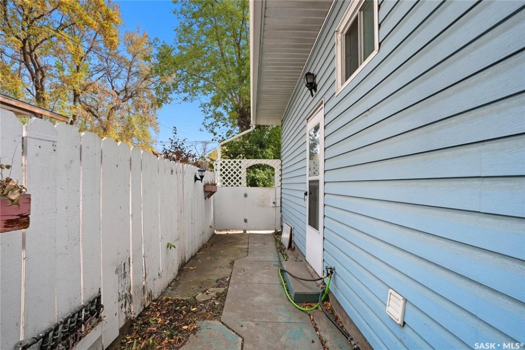 Classic charm and fresh renovations. This cute as a button bungalow is situated in Rivesrdale. Here you will find beautiful trees surrounding and a short walk to the river with some of the best restaurants in Saskatoon nearby. On the main floor you will find a cozy family room that features west facing windows for that beautiful evening light. The kitchen is a delight! Wood accents, tile backsplash, and a classic diner booth for eating at. The cabinetry has been updated with a new sink too. Down the hallway you will find 3 bedrooms and a 4 piece bathroom with flare! The basement has been recently refreshed with new flooring, drywall, and an updated bathroom. The functional layout welcomes you into a common space by the stairs and also features a completely separated entrance that is ideal for a basement suite! Here you will find a large family room that connects to a 4th bedroom. A sink is located in the partition space with an entrance to the 2nd bathroom that is complete with tiled shower. Step outside to find your own private backyard. This fenced area has a grass space and the most delightful garden with a small greenhouse! Additionally there is an oversized single-car garage that is perfect for keeping your car away from the elements and storing tools. This home has been cared for over the years and features a new rolled roof in 2015, updated windows, and high efficiency furnace. Don't miss out on this turn key home with revenue potential. Call today!