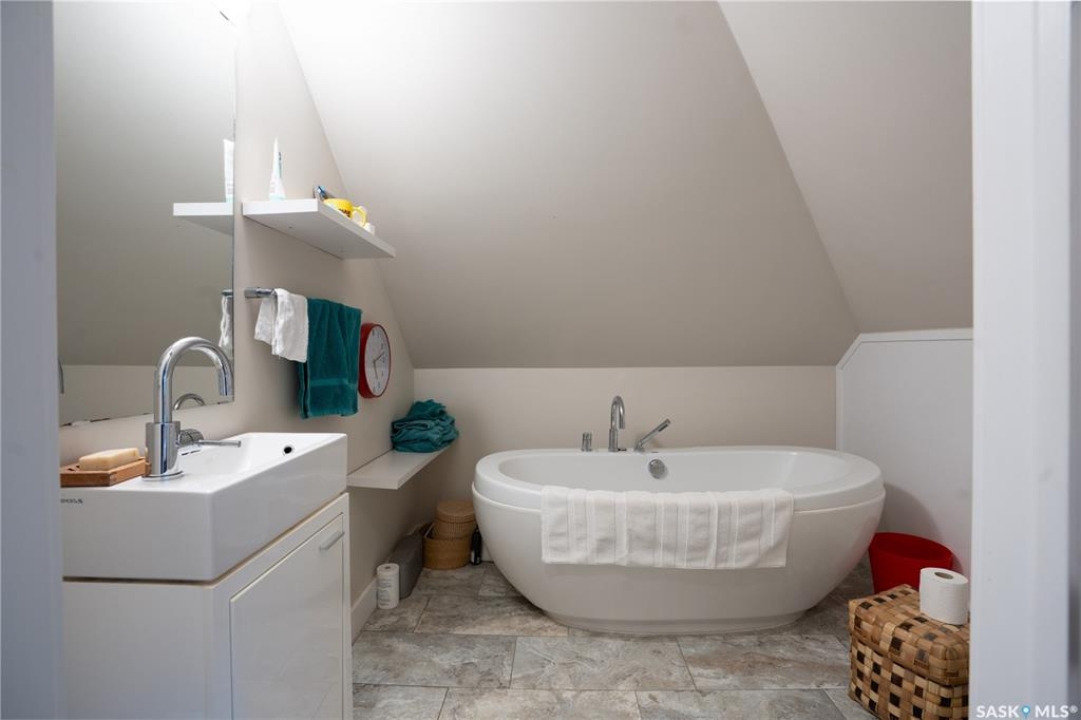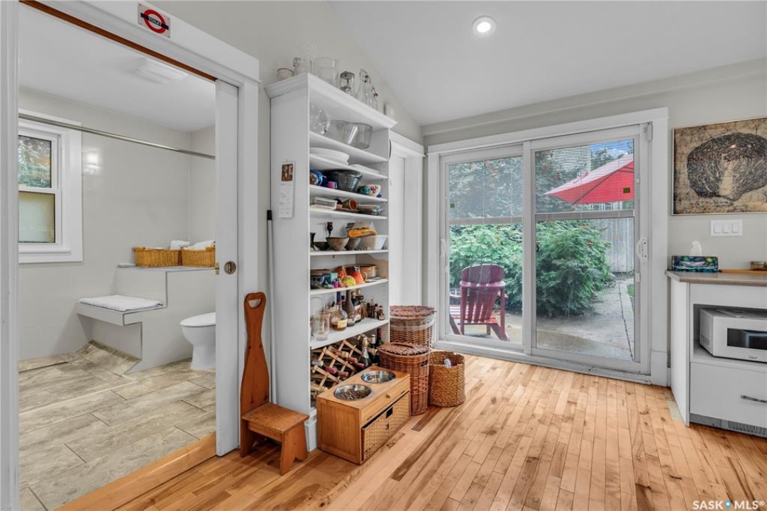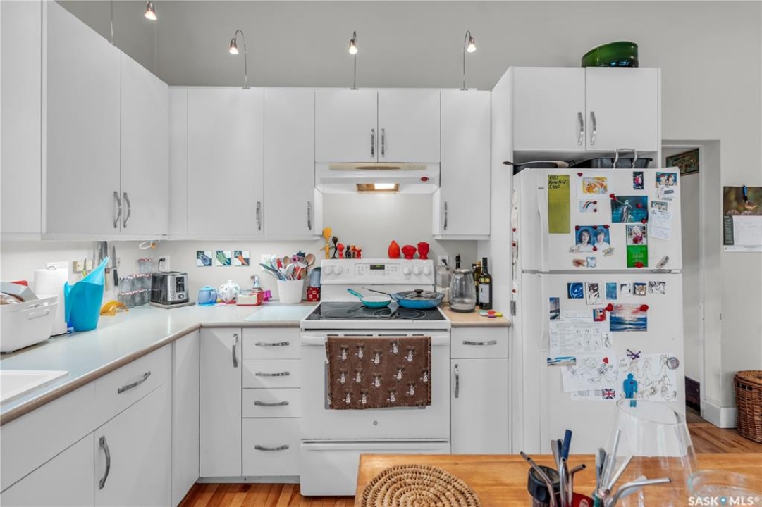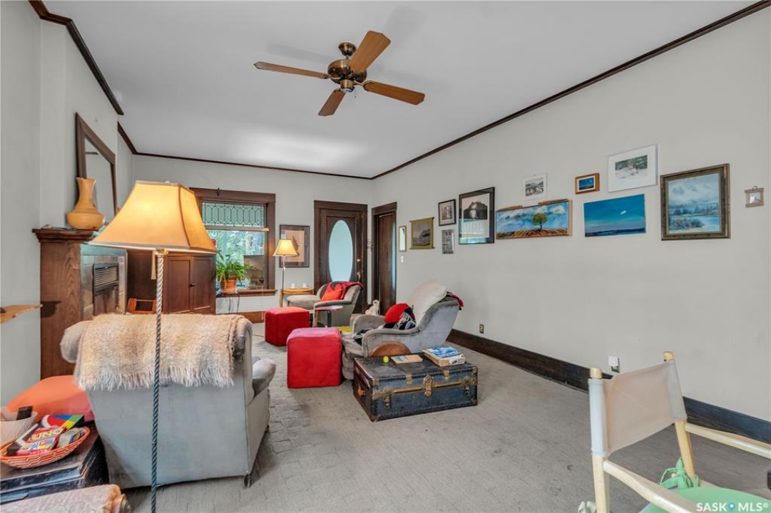 Charming 1 �-Storey Home Full of Character in Caswell Hill! Located in the desirable Caswell Hill neighborhood, just steps from downtown and close to all amenities, this beautiful 1 �-storey home offers over 1,200 sq. ft. of living space on the main and upper levels. The top unit features 3 bedrooms and 2 bathrooms, including a main bathroom with heated floors, and is filled with natural light from multiple skylights. Enjoy the comfort of an insulated front porch with heated floors, perfect for year-round use and added living space. The owners have lovingly maintained and updated the home over the years, blending modern comfort with historic charm. Updates include kitchen and bathroom renovations, new fascia and eavestroughs, and a basement bathroom (2015–2016), city sewer and water connection (2019), new furnace and freshly painted window trims and doors (2020), and a hot water tank (2022). Additional features include a wood-burning fireplace, metal roof, and fenced yard. The home sits on a unique 7,200 sq. ft. lot that offers a private, peaceful backyard — it truly feels like lake life right in the city! The property also includes a 1-bedroom, 1-bathroom suite with a separate entrance and its own laundry, offering great flexibility for guests, extended family, or rental income potential. Built in 1912, this home beautifully combines historic character with thoughtful modern upgrades in one of Saskatoon's most loved neighborhoods.