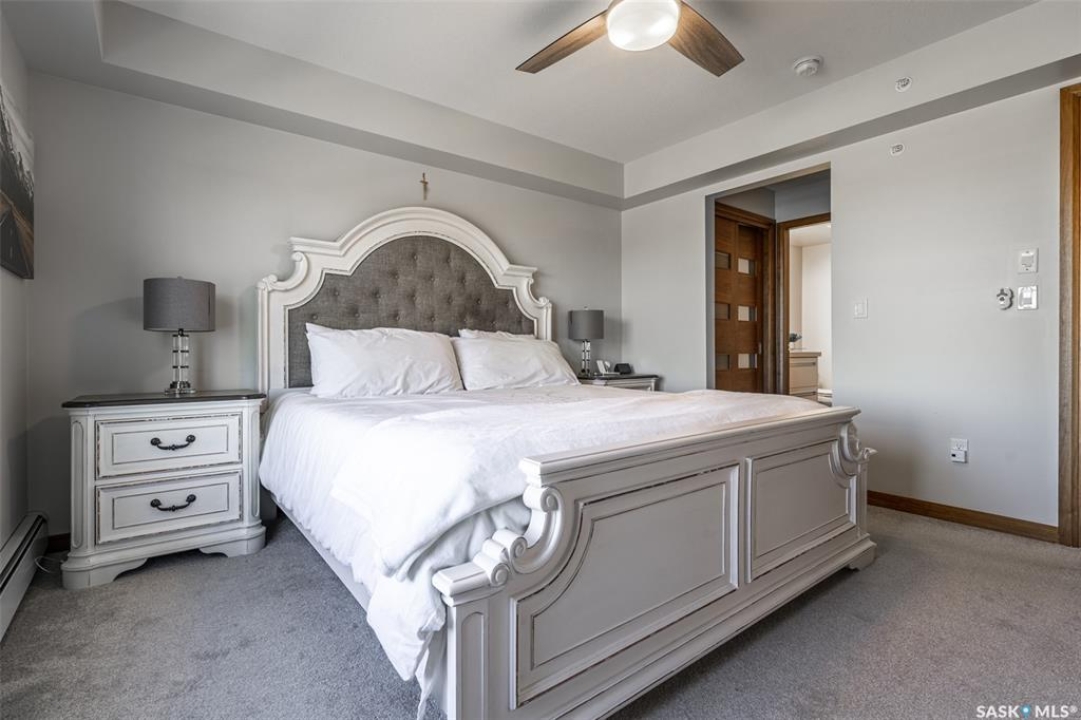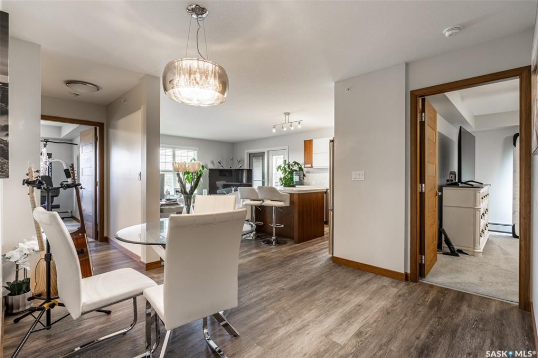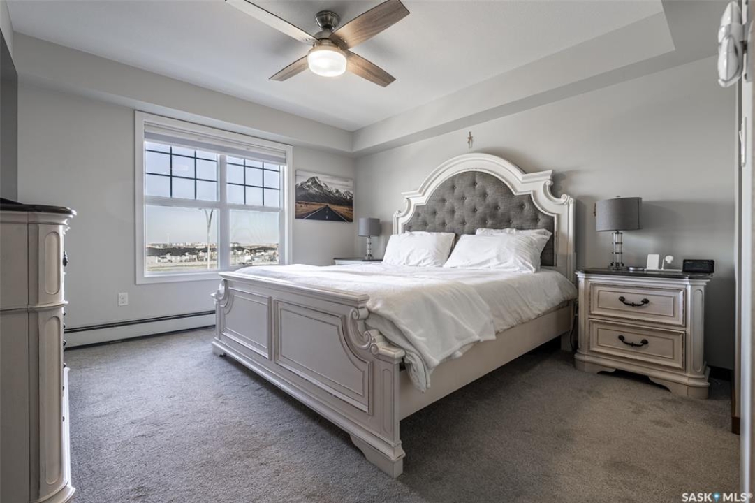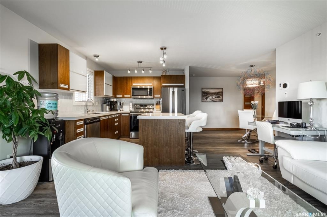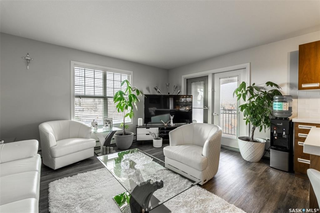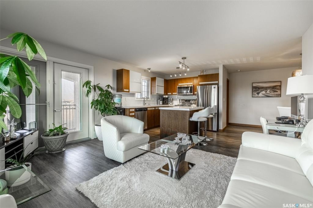 Welcome to Unit 306 at 110 Phelps Way — a beautiful, sunny top-floor corner condo in the highly desirable Astoria complex. This stunning two-bedroom, two-bathroom home has been impeccably maintained and offers both style and comfort with its high-end finishes and thoughtful floor plan. Step inside to a spacious, open-concept living area filled with natural light. The large living room and dining space flow seamlessly into a modern kitchen featuring an eat-up island, quartz countertops, glass tile backsplash, stainless steel appliances, and a window over the sink — a rare touch in an apartment style condo. From the living room, step out onto your beautiful south-facing balcony, perfect for morning coffee or evening relaxation. Both bedrooms are generous in size, with the primary suite offering a private three-piece ensuite complete with a steam shower. A second four-piece bathroom serves guests or family members with ease. Residents of Astoria enjoy access to a clubhouse with premium amenities, including a lounge, fitness area, and indoor swimming pool — ideal for year-round enjoyment. There's also ample visitor parking for your guests. This unit includes two convenient electrified parking spaces and is perfectly located close to Circle Drive, shopping, restaurants, and other fantastic amenities. If you've been looking for a bright, modern condo in a sought-after community, Unit 306 at Astoria offers it all — comfort, convenience, and a touch of luxury.