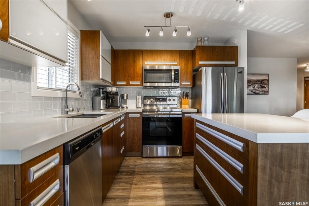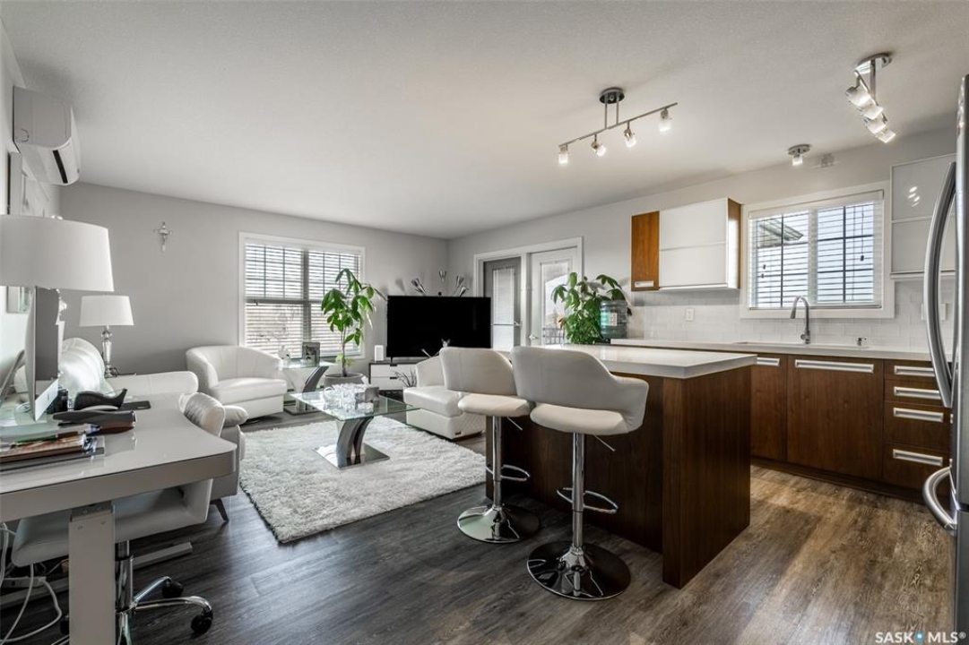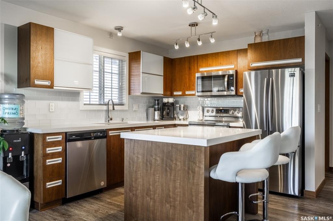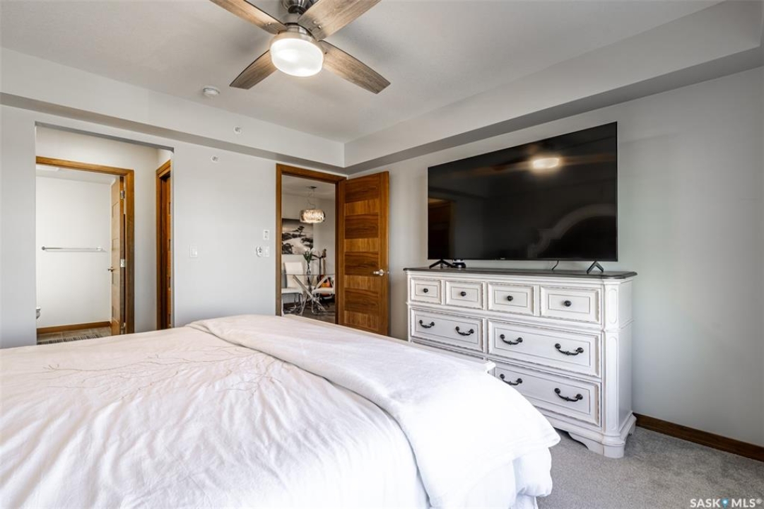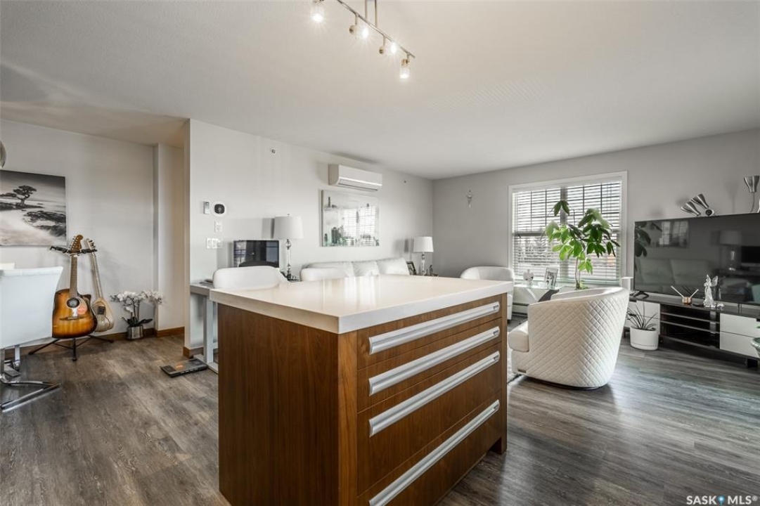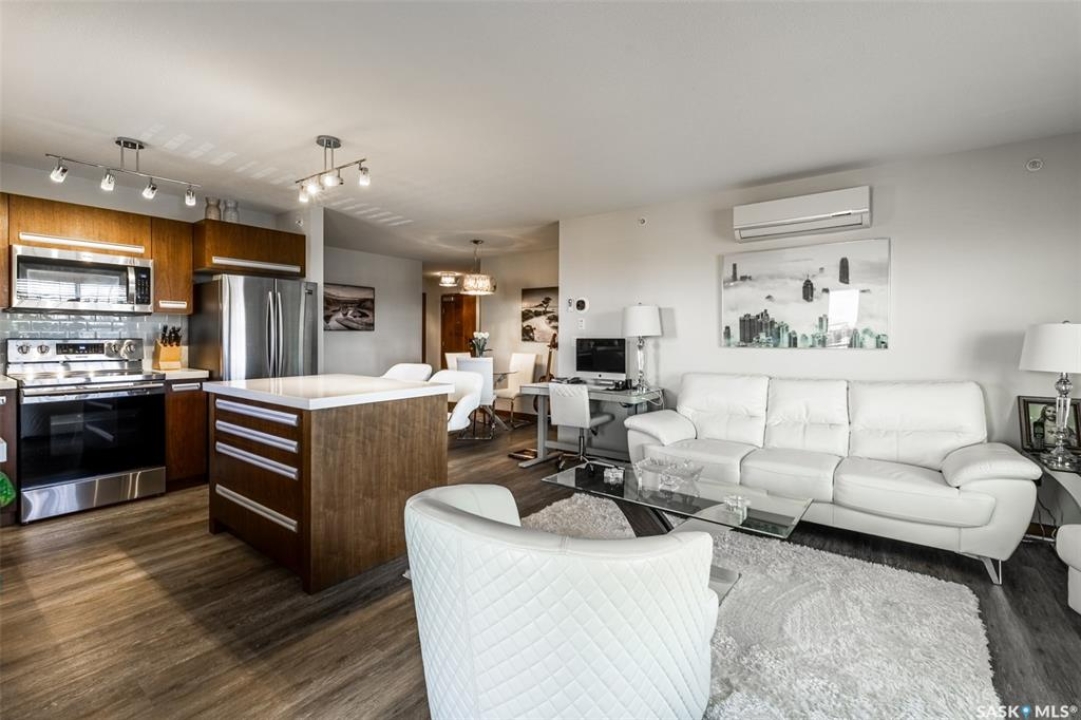 Welcome to Unit 306 at 110 Phelps Way — a beautiful, sunny top-floor corner condo in the highly desirable Astoria complex. This stunning two-bedroom, two-bathroom home has been impeccably maintained and offers both style and comfort with its high-end finishes and thoughtful floor plan. Step inside to a spacious, open-concept living area filled with natural light. The large living room and dining space flow seamlessly into a modern kitchen featuring an eat-up island, quartz countertops, glass tile backsplash, stainless steel appliances, and a window over the sink — a rare touch in an apartment style condo. From the living room, step out onto your beautiful south-facing balcony, perfect for morning coffee or evening relaxation. Both bedrooms are generous in size, with the primary suite offering a private three-piece ensuite complete with a steam shower. A second four-piece bathroom serves guests or family members with ease. Residents of Astoria enjoy access to a clubhouse with premium amenities, including a lounge, fitness area, and indoor swimming pool — ideal for year-round enjoyment. There's also ample visitor parking for your guests. This unit includes two convenient electrified parking spaces and is perfectly located close to Circle Drive, shopping, restaurants, and other fantastic amenities. If you've been looking for a bright, modern condo in a sought-after community, Unit 306 at Astoria offers it all — comfort, convenience, and a touch of luxury.