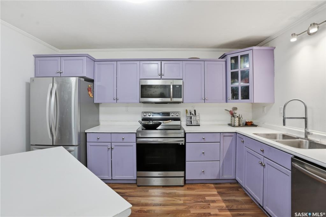 Welcome to 715 Hart Road #201 — a stylish and affordable end-unit townhouse in the desirable Blairmore area! This 3-bedroom, 2-bath home offers a bright open-concept main floor with a functional kitchen featuring a large island, ample cabinets. The dining area flows into a spacious living room and a private rear patio, ideal for relaxing or entertaining. Upstairs offers three comfortable bedrooms, a 4-piece bathroom, and convenient upper-floor laundry. Recent upgrades include a new stainless-steel fridge (2024), new paint (2024), garage door motor (2024), light fixtures (2024/2025), two one-piece toilets (2024), two bathroom exhaust fans (2024), and new countertops to be ordered and installed(from Home Depot; Material sample in kitchen). The yellow fridge in the living room stays; washer not included. Great location — steps to Shaw Centre, Walmart, Save-On-Foods, schools, parks, and restaurants. Move-in ready and perfectly located — a must-see!