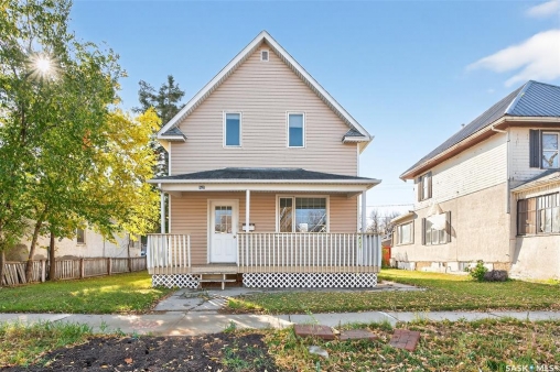 CHARMING 1 3/4 Storey Home on 50x125 ft lot.... Main floor features large living room/dining room, bright kitchen with ample white cabinets, a 1/2 bath and main floor laundry complete with newer stackable washer and dryer. Upstairs we find 2 bedrooms and a 3pce bathroom featuring a unique corner clover-leaf design tub. Open veranda on the front to sit out on and also features a good size back deck. Large back yard with room to build a garage. Updates include water heater, most windows, some flooring and a new furnace (2025). Call A REALTOR Today To View!!!