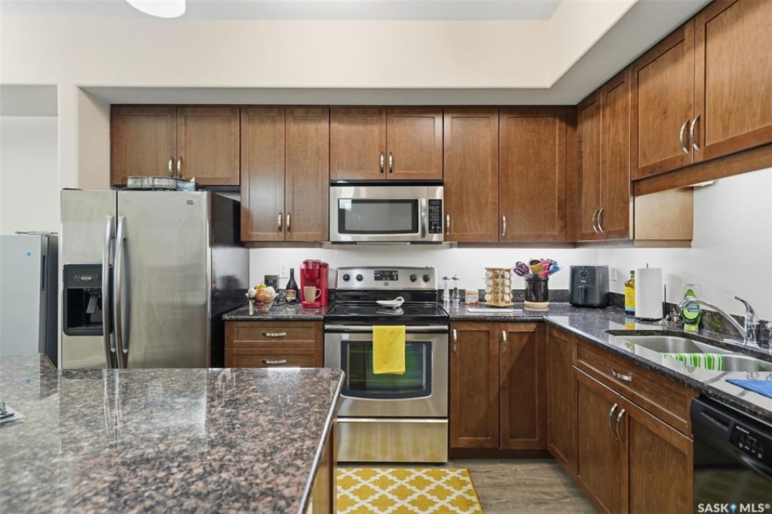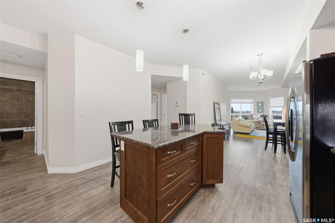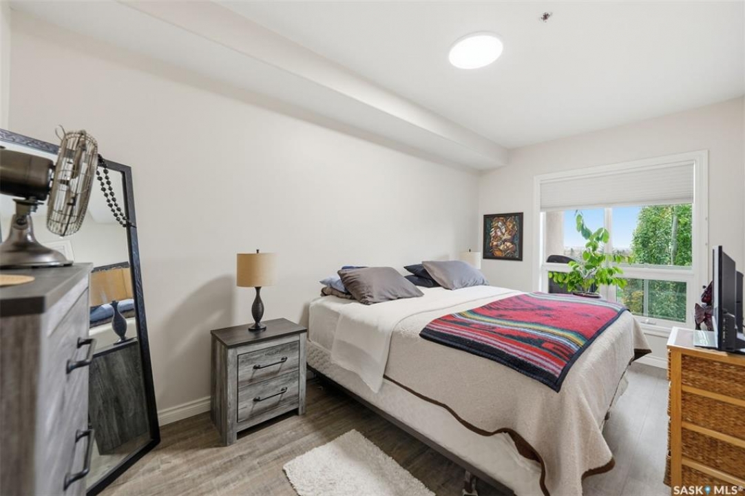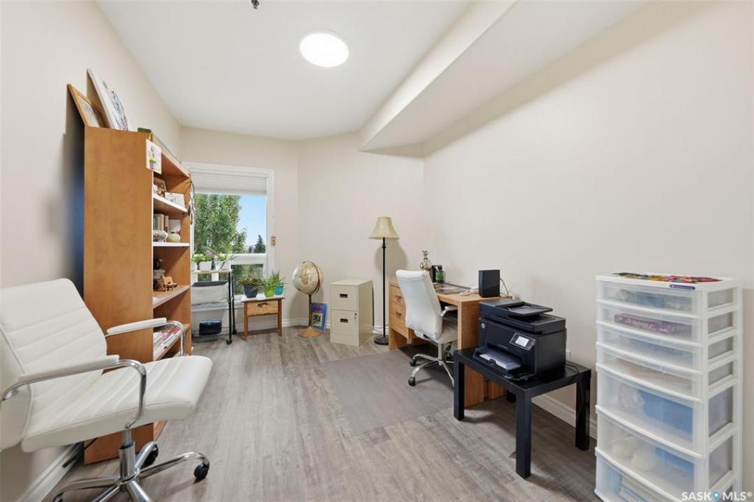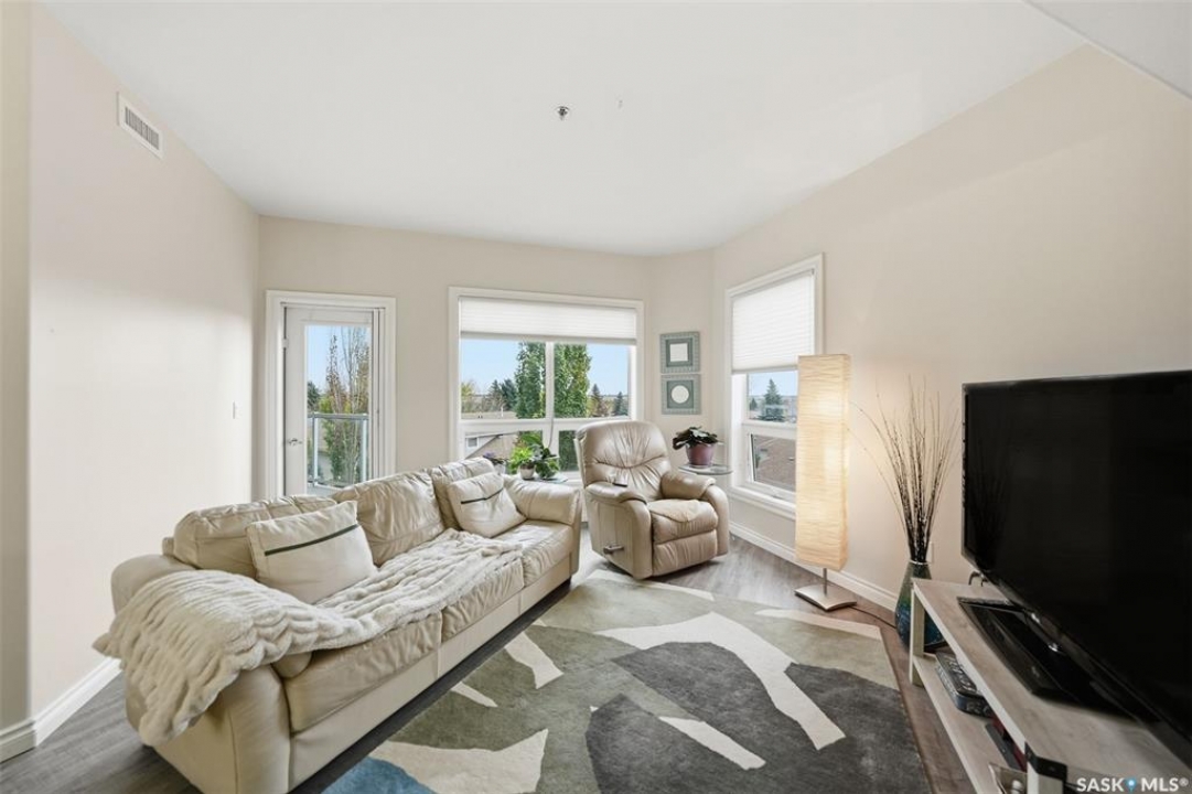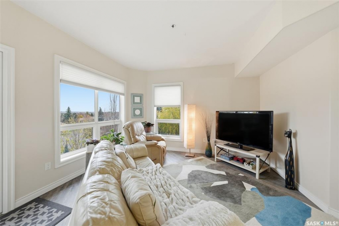 Welcome to 306-227 Pinehouse Drive!This bright, south-facing condo features a spacious entry, private laundry room, and an open-concept layout with fir tree and skyline views. The modern kitchen includes granite countertops, and a sit up island. Enjoy sunlit living spaces, a primary suite with walk-in closet and ensuite, a second bedroom, and a versatile den for a home office. Relax on your private balcony, and enjoy underground parking, storage, and great building amenities like in-floor heating, a recreation center, garden beds, and a gazebo. Located in Lawson Heights near the river, Meewasin Trail, shopping, and more. Move-in ready — book your showing today!