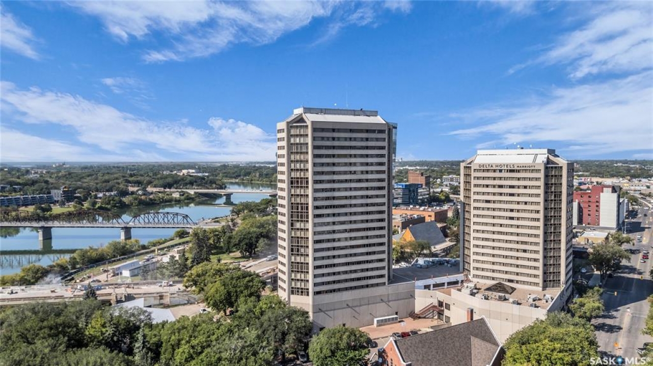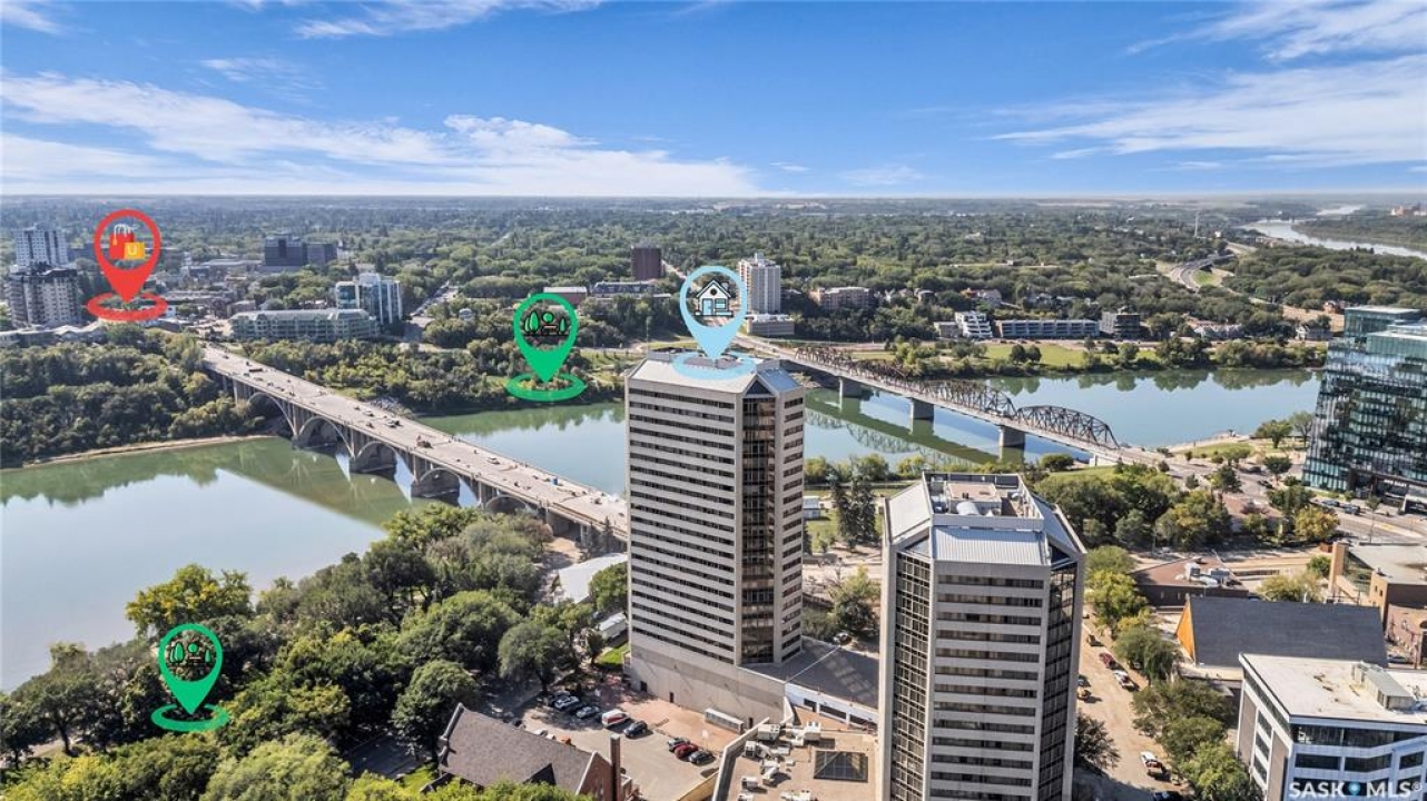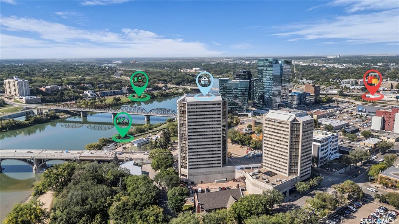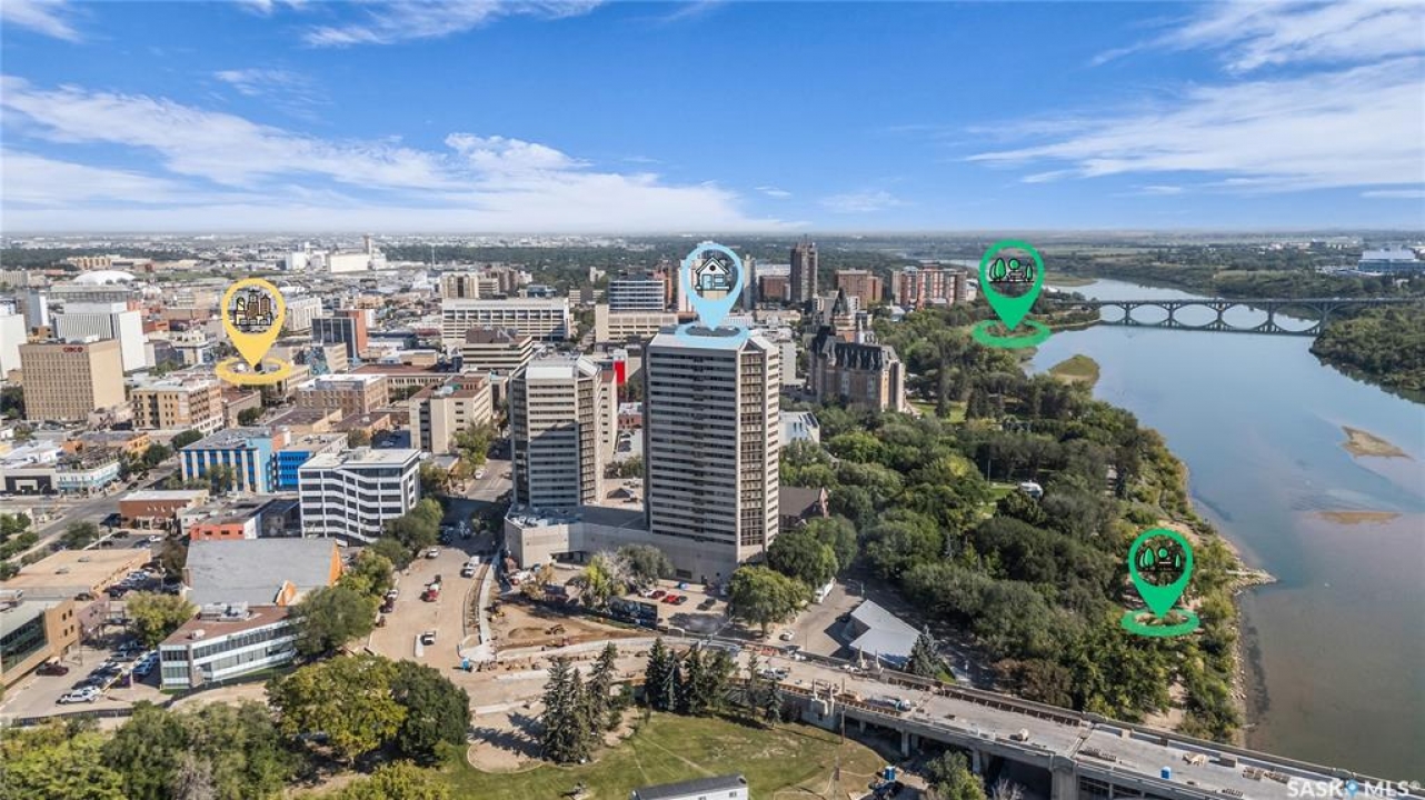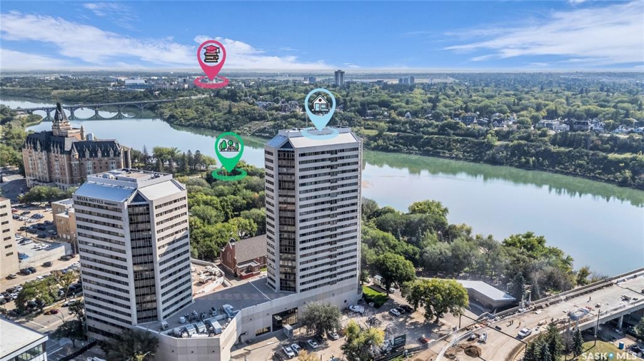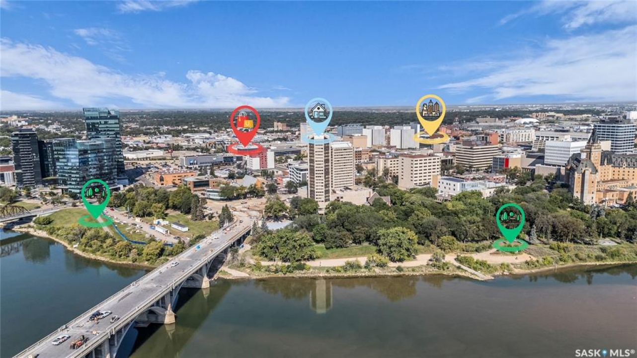 The Renaissance – Iconic Views & Urban Living Welcome to The Renaissance, where location, lifestyle, and luxury come together. This 2-bedroom, 2bathroom condo has been extensively renovated and is completely move-in ready—offering not just a home, but a statement. From the moment you step inside, the unmatched view steals the show—looking directly onto the historic Bessborough Hotel and beyond. Whether it's sunrise coffees or sunset wine, your private space frames one of the best views in Saskatoon. Located just steps from the Saskatchewan River, walking and running trails, and a short stroll to Broadway, you're never far from local gems like Poached, Shelter, and Cafe Del Rey. The best of Saskatoon's dining, coffee, and culture is truly at your doorstep. And when you're not out enjoying the neighbourhood? You'll have access to top-tier amenities including a full gym, indoor pool, and waterslide—making it easy to relax or recharge without leaving the building.