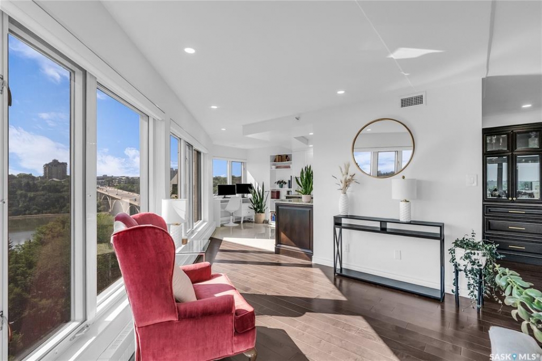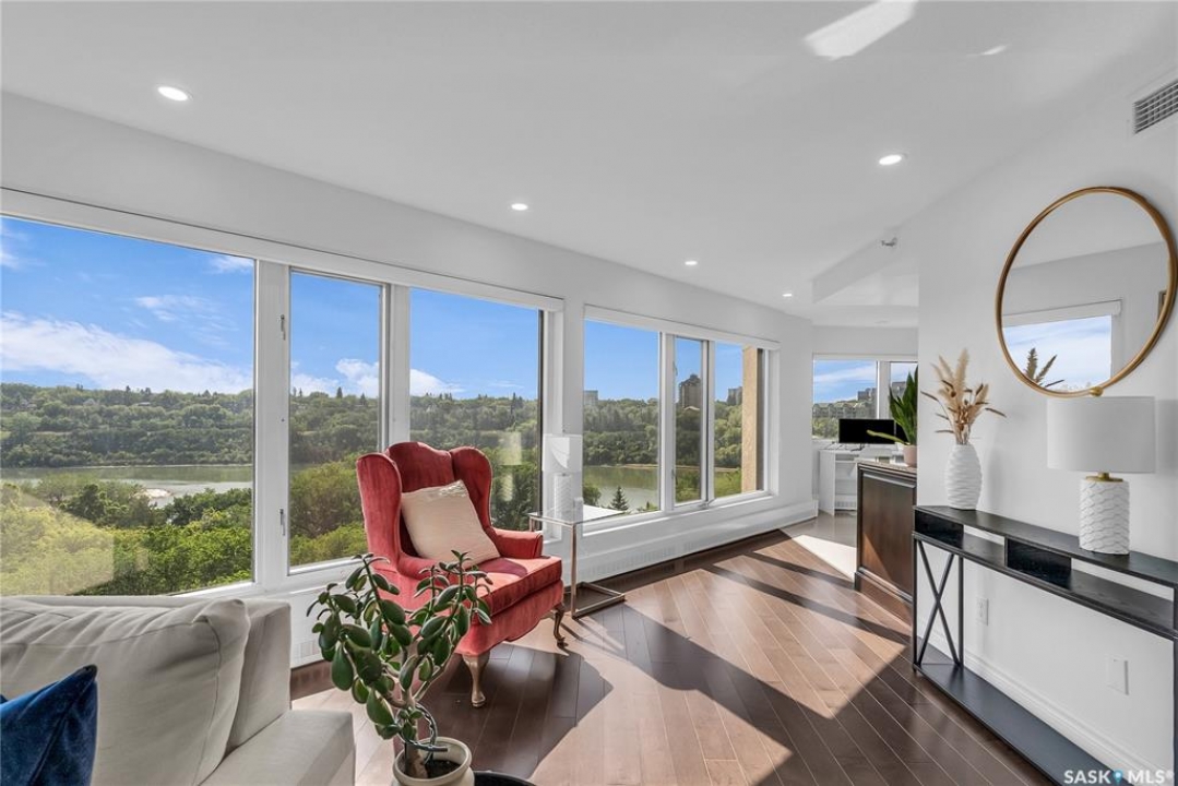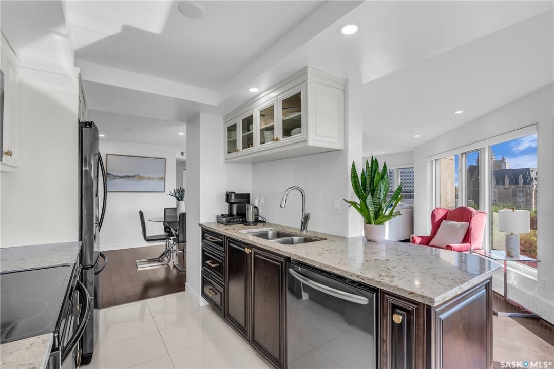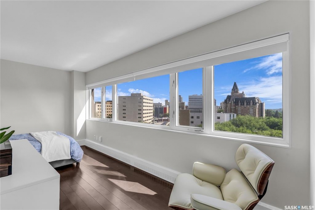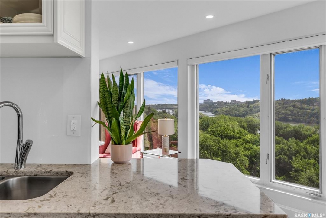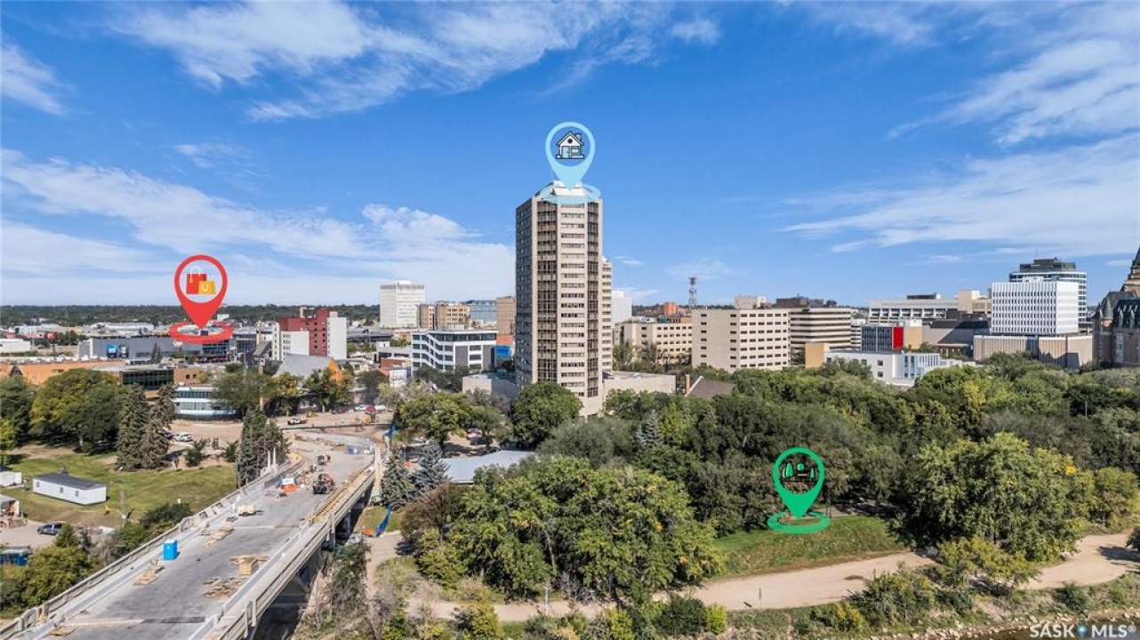 The Renaissance – Iconic Views & Urban Living Welcome to The Renaissance, where location, lifestyle, and luxury come together. This 2-bedroom, 2bathroom condo has been extensively renovated and is completely move-in ready—offering not just a home, but a statement. From the moment you step inside, the unmatched view steals the show—looking directly onto the historic Bessborough Hotel and beyond. Whether it's sunrise coffees or sunset wine, your private space frames one of the best views in Saskatoon. Located just steps from the Saskatchewan River, walking and running trails, and a short stroll to Broadway, you're never far from local gems like Poached, Shelter, and Cafe Del Rey. The best of Saskatoon's dining, coffee, and culture is truly at your doorstep. And when you're not out enjoying the neighbourhood? You'll have access to top-tier amenities including a full gym, indoor pool, and waterslide—making it easy to relax or recharge without leaving the building.