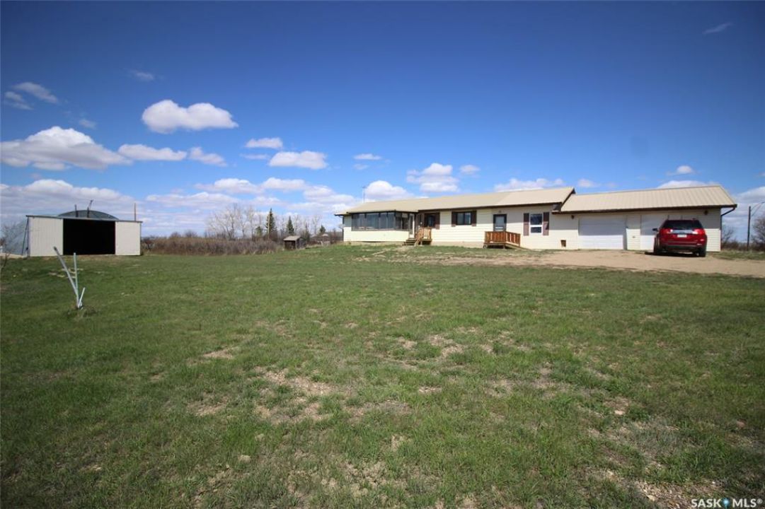 A huge lot with a home that has lots of potential, this is it! There is three large lots that have the possibility to be split into 3-6 separate lots creating a space to build a business or rent the space out for income on the side! The property has a beautiful 3 bedroom home with the potential to develop the basement for more. The big bonus is the 30' x 40' Quonset on the property. The sunroom greets you as you enter the home as a bight and sunny hangout space. The living room is large and open to the dining and kitchen. The dining room has some great built-ins and the kitchen is conveniently laid out. The laundry has dedicated space on the main floor just off the large mudroom. The mudroom has great storage and access to the double attached garage. Bedroom space is easy with the three bedrooms on the main and the primary having an attached 4pc bath. The basement is open and ready for development with some already started. This is a must see in Climax Sk.