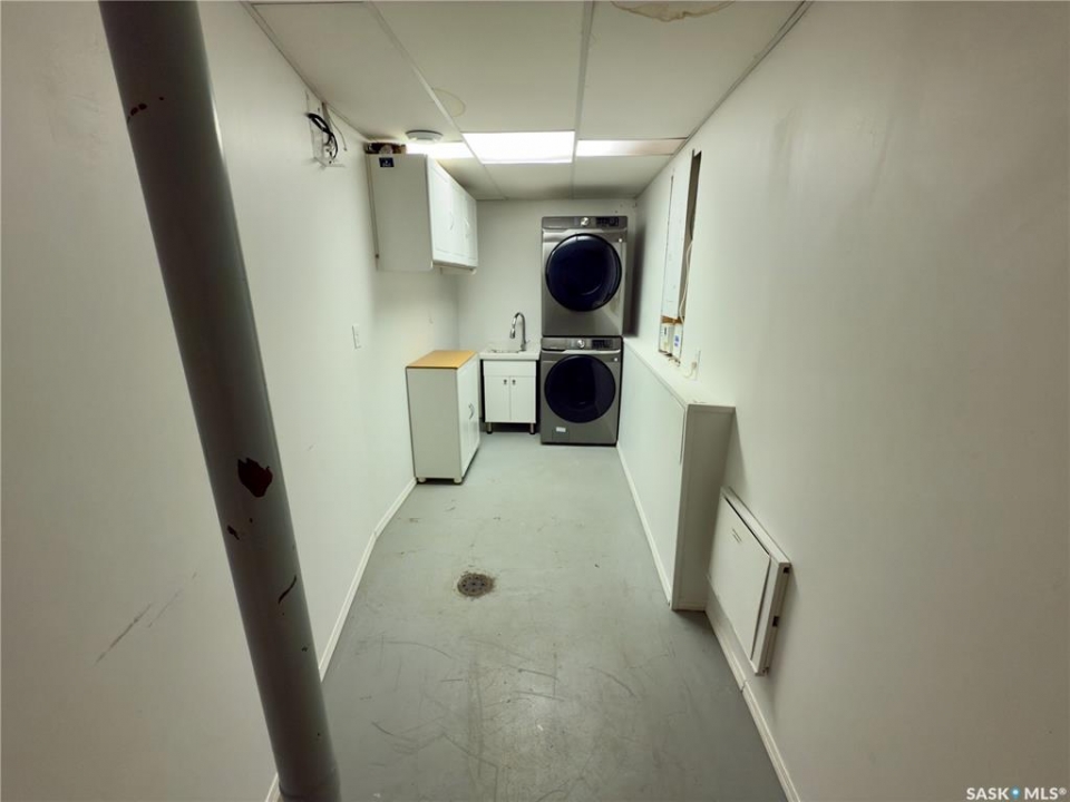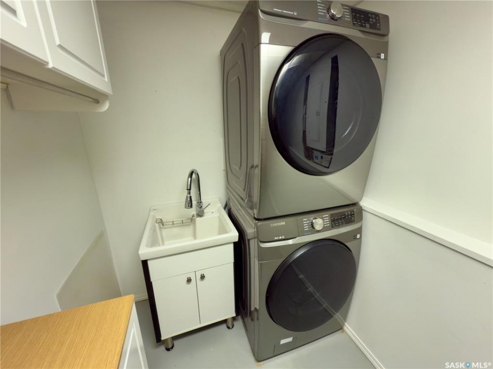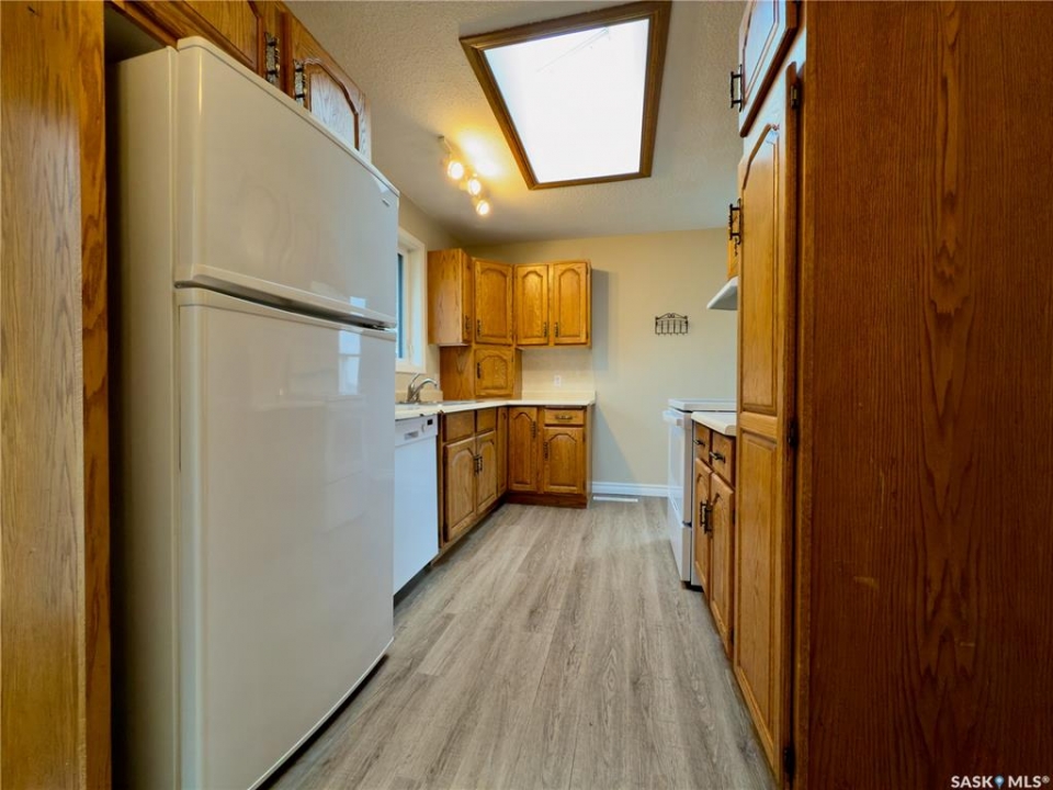 Beautifully maintained 1,000 sq ft bungalow nestled on a quiet street in Prince Albert's East Flat area. Freshly cleaned and touched up with new paint, this home offers comfort, convenience. The bright kitchen features a stunning skylight that fills the space with natural light, while the fully finished basement extends your living area with a cozy family room, wet bar (2016), and in-floor heat in the bathroom with steam shower—perfect for chilly mornings. An insulated, heated double detached garage (built in 2008) includes a large concrete apron, ideal for extra parking or projects. Step outside to enjoy the spacious, tiered deck and fenced backyard—perfect for relaxing or entertaining. Recent updates include a brand-new stove (Aug 2025) and washer/dryer set (Jan 2025). This move-in-ready home is refreshed, spotless, and waiting for its next chapter!
