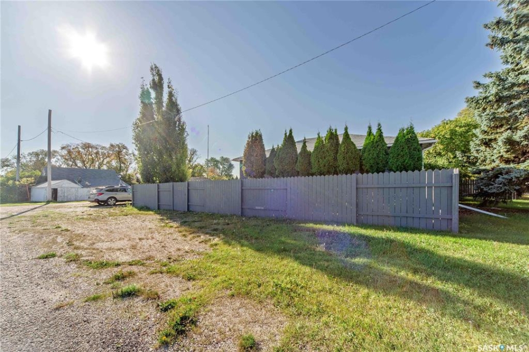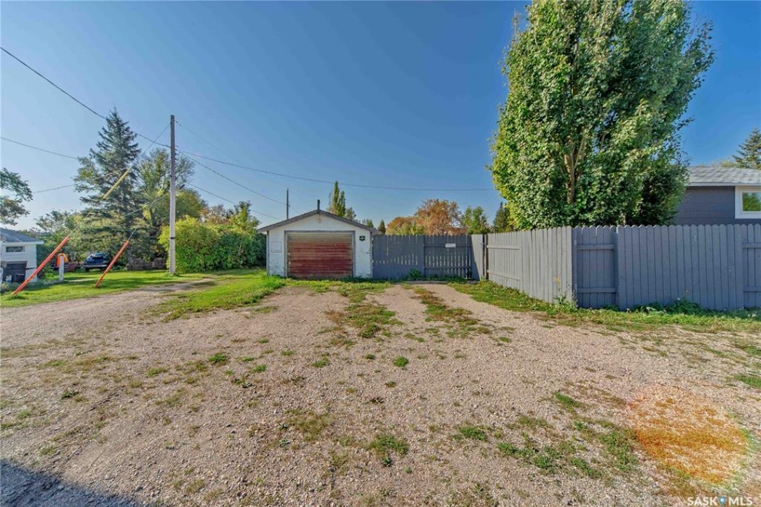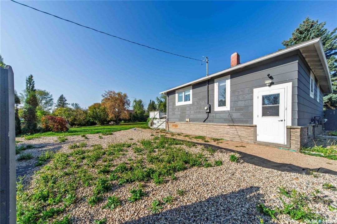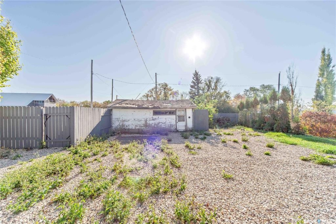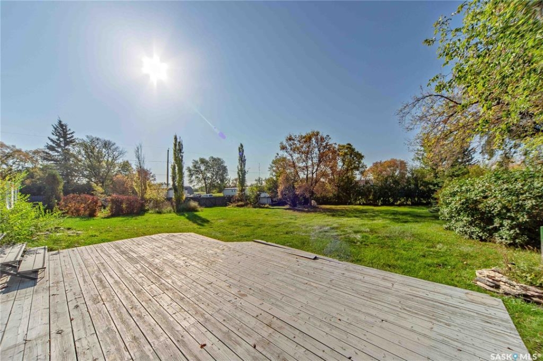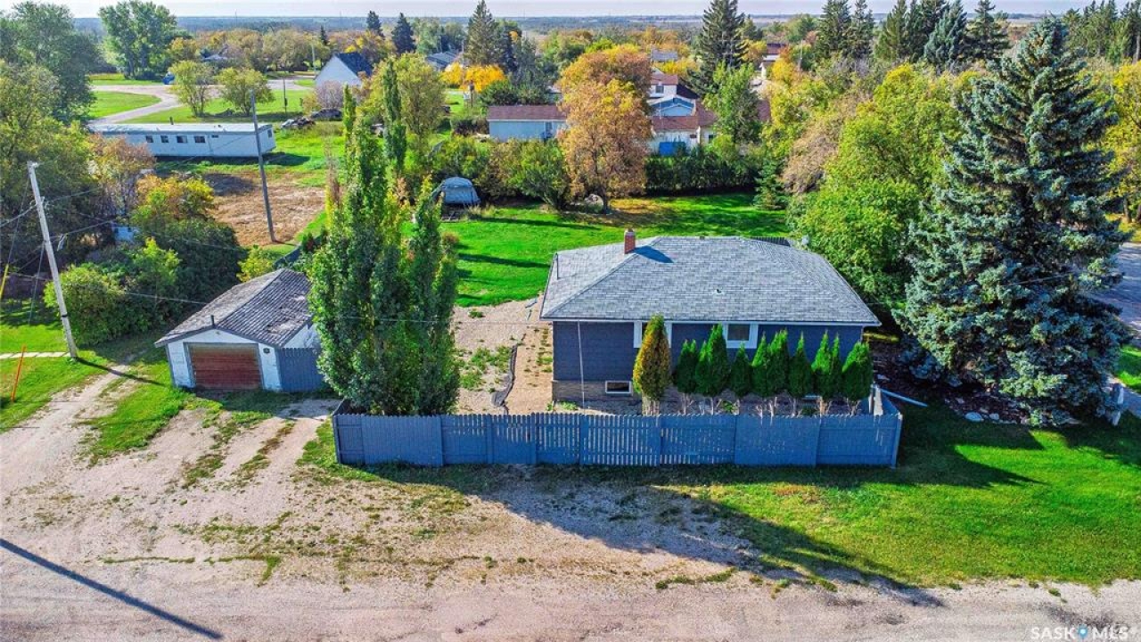 2 + 1 bedroom, 1 bathroom bungalow situated on 4 lots (total of 120' x 165') in the community of Plunkett. Quaint but well situated just 20 minutes from the Colonsay & Lanigan mine sites, 20 minutes from Lanigan, just under one hour from Saskatoon & within 80km of the world-class Jansen Lake project & future mine site. School bus to Viscount. New shingles have just been installed (see photos) along with some repairs to roof sheathing. Good layout with lots of potential, large living & dining area, some vinyl-frame windows, newer kitchen & bathroom, huge deck constructed in 2019 (according to SAMA) facing the vast back yard space. Basement is mostly unfinished, has 1 bedroom completed and another one started, bathroom is framed with a toilet installed, lots of storage space and potential for a rec room to be finished. There is a garden area and patio stone fire pit area that could be revitalized with some clean up. Property is being sold as-is, where-is, no disclosure statement available.