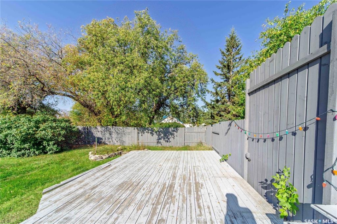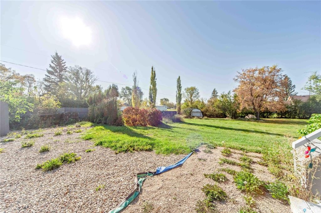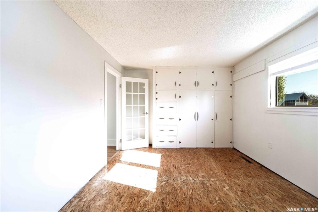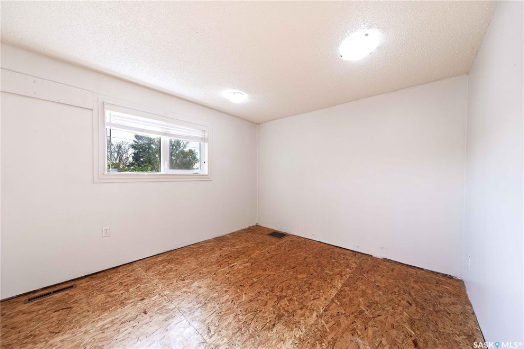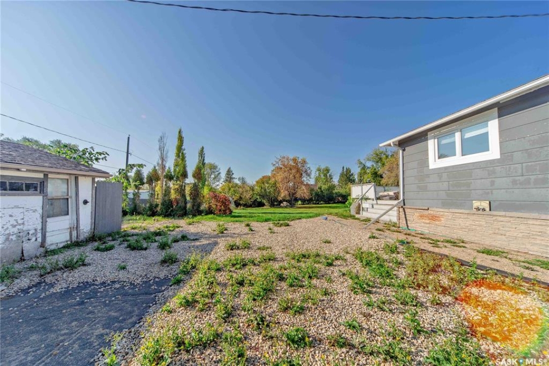2 + 1 bedroom, 1 bathroom bungalow situated on 4 lots (total of 120' x 165') in the community of Plunkett. Quaint but well situated just 20 minutes from the Colonsay & Lanigan mine sites, 20 minutes from Lanigan, just under one hour from Saskatoon & within 80km of the world-class Jansen Lake project & future mine site. School bus to Viscount. New shingles have just been installed (see photos) along with some repairs to roof sheathing. Good layout with lots of potential, large living & dining area, some vinyl-frame windows, newer kitchen & bathroom, huge deck constructed in 2019 (according to SAMA) facing the vast back yard space. Basement is mostly unfinished, has 1 bedroom completed and another one started, bathroom is framed with a toilet installed, lots of storage space and potential for a rec room to be finished. There is a garden area and patio stone fire pit area that could be revitalized with some clean up. Property is being sold as-is, where-is, no disclosure statement available.