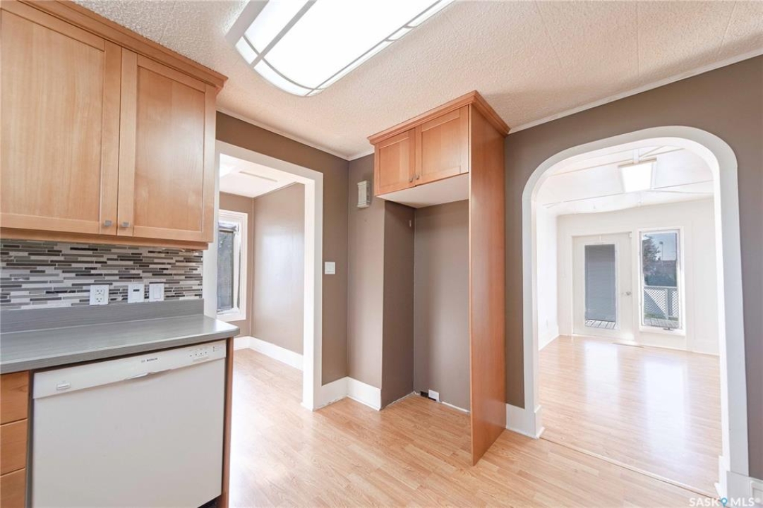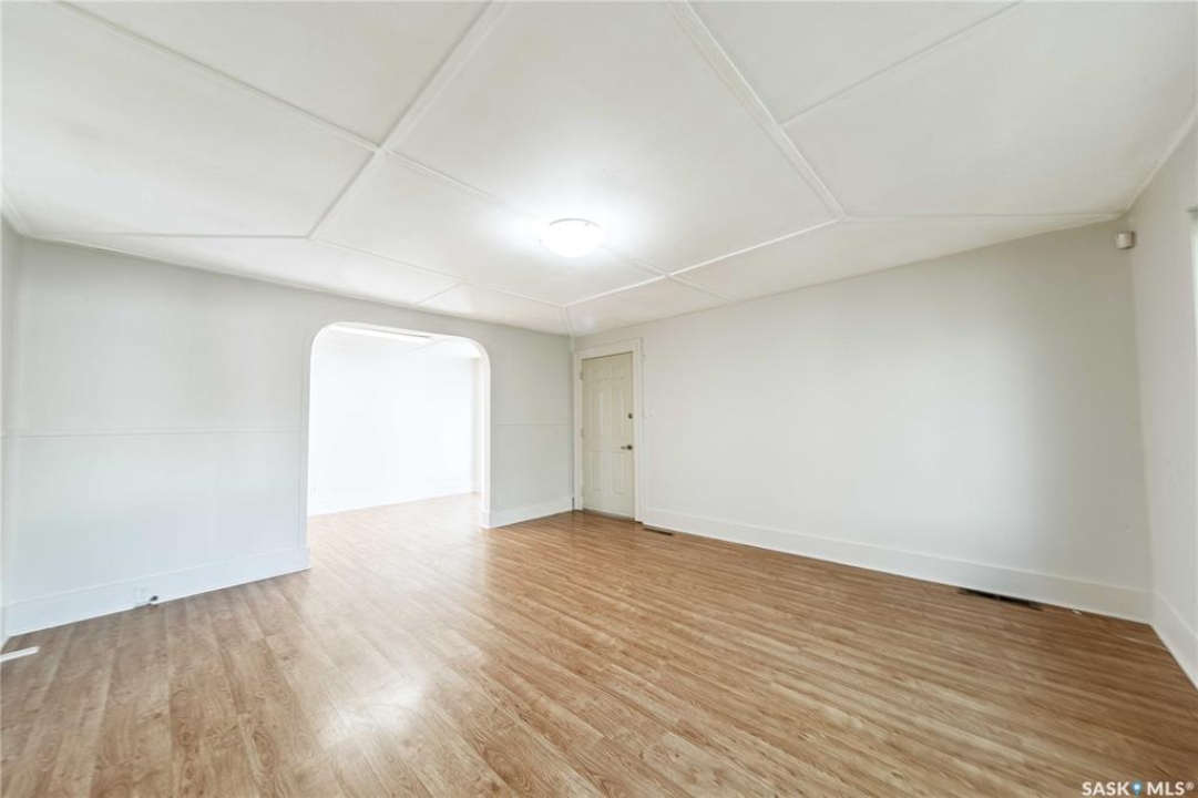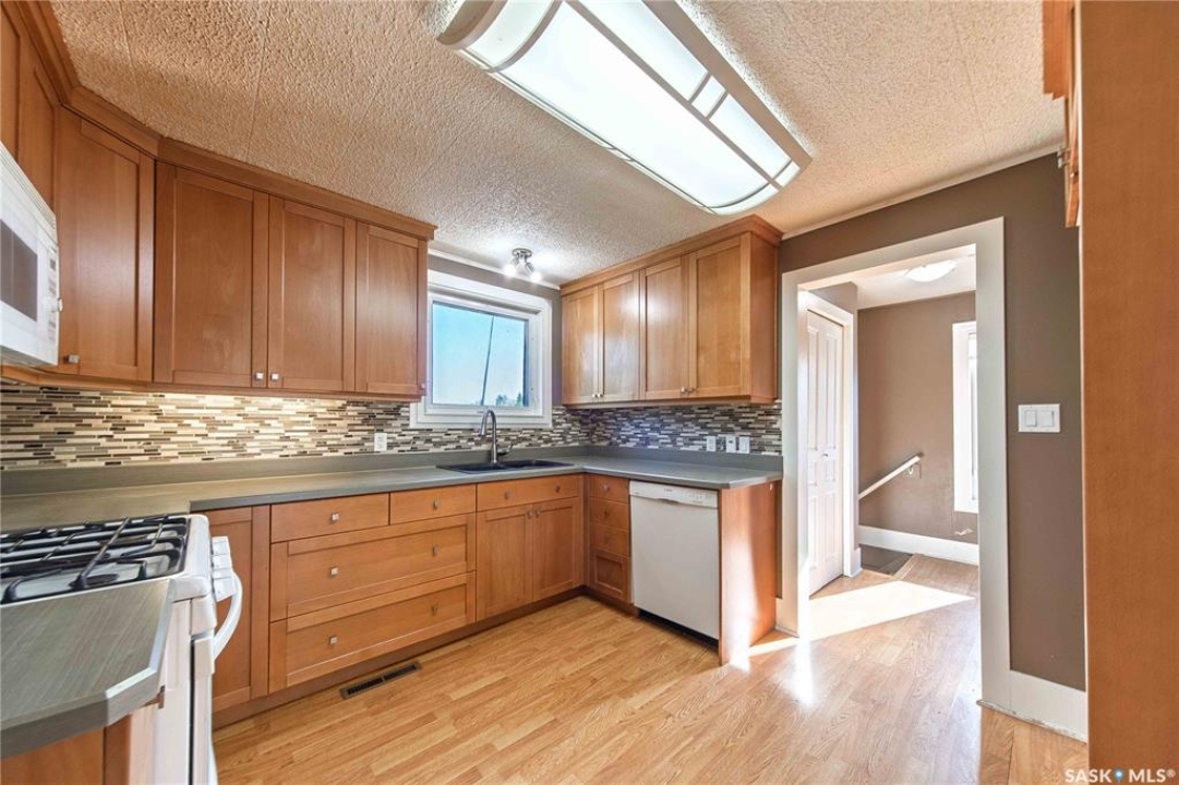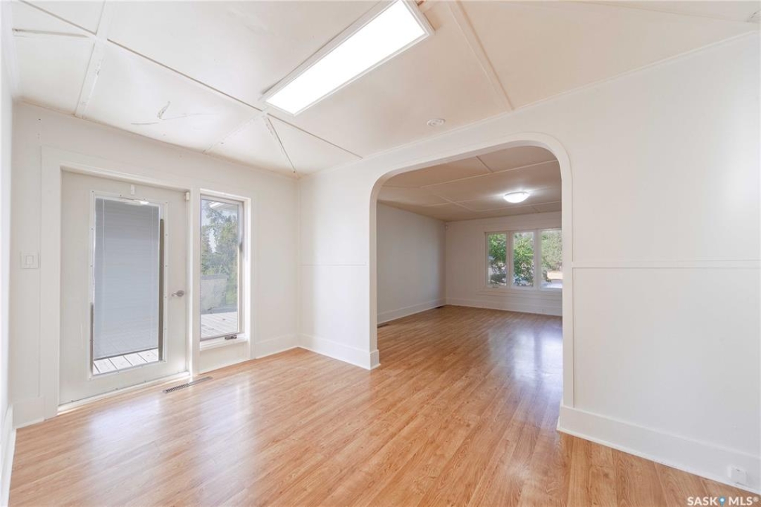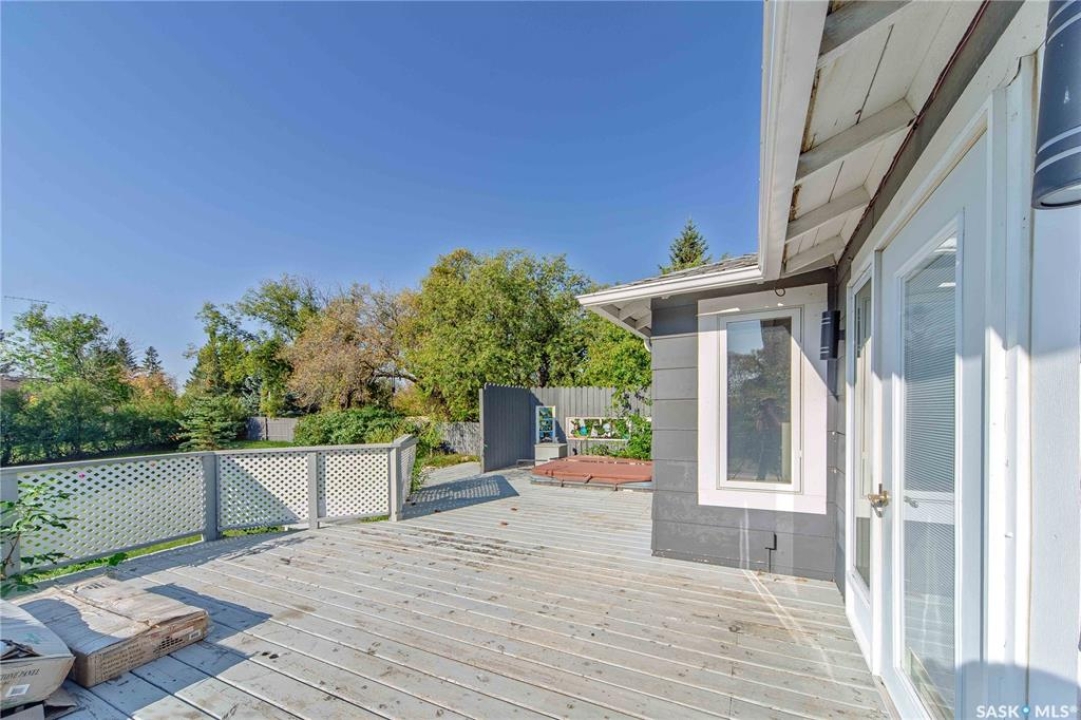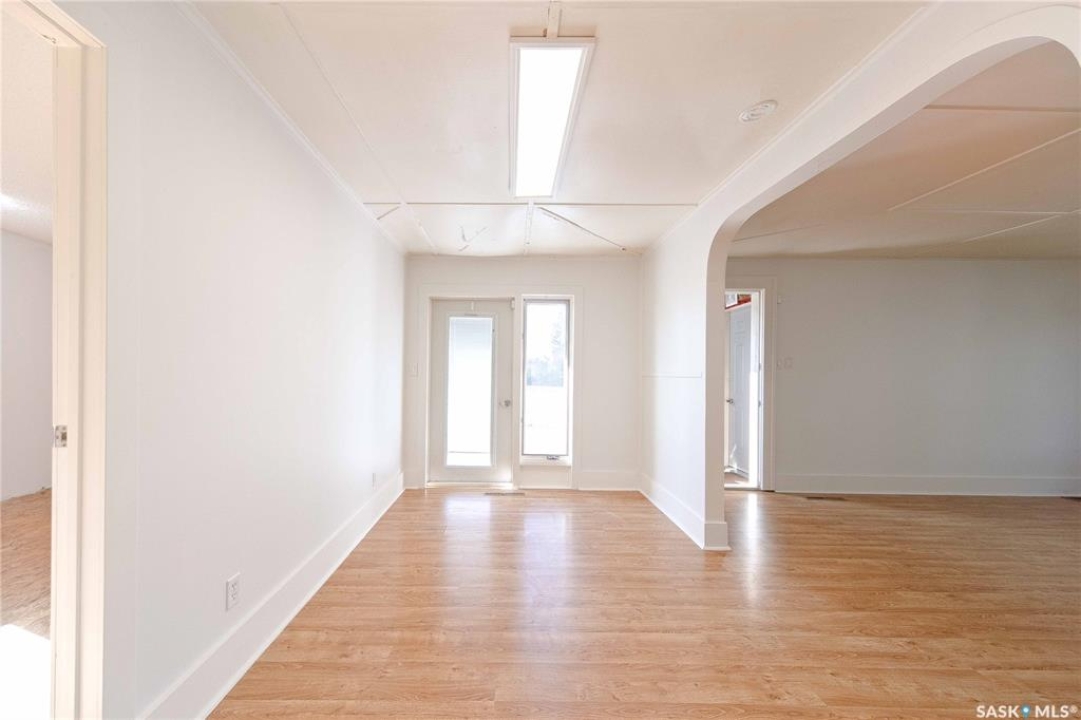 2 + 1 bedroom, 1 bathroom bungalow situated on 4 lots (total of 120' x 165') in the community of Plunkett. Quaint but well situated just 20 minutes from the Colonsay & Lanigan mine sites, 20 minutes from Lanigan, just under one hour from Saskatoon & within 80km of the world-class Jansen Lake project & future mine site. School bus to Viscount. New shingles have just been installed (see photos) along with some repairs to roof sheathing. Good layout with lots of potential, large living & dining area, some vinyl-frame windows, newer kitchen & bathroom, huge deck constructed in 2019 (according to SAMA) facing the vast back yard space. Basement is mostly unfinished, has 1 bedroom completed and another one started, bathroom is framed with a toilet installed, lots of storage space and potential for a rec room to be finished. There is a garden area and patio stone fire pit area that could be revitalized with some clean up. Property is being sold as-is, where-is, no disclosure statement available.