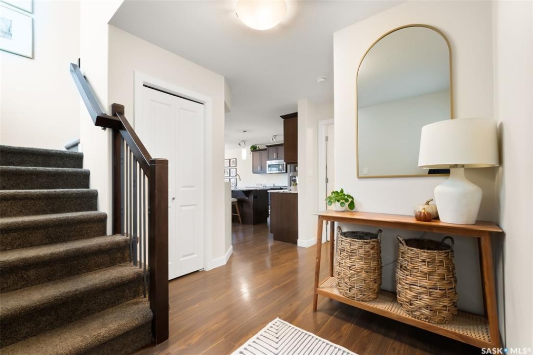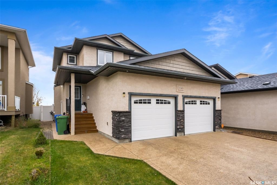 Welcome to 5385 McKenna Crescent – Your Dream Home in Harbour Landing! Step into this beautifully maintained 1507 sq ft two-storey gem nestled in the heart of Regina's sought-after Harbour Landing community. Featuring 3 spacious bedrooms and 3 bathrooms, this home offers the perfect blend of comfort, functionality, and style. The main floor welcomes you with a generous foyer leading to a thoughtfully designed layout that includes a half bath, laundry and mudroom, and an open-concept kitchen, dining, and living area. Enjoy cozy evenings by the electric fireplace and soak in the natural light that fills the space—ideal for family gatherings and entertaining. Step out onto the deck and enjoy a well-cared-for backyard oasis. Upstairs, the primary bedroom boasts a private 3-piece ensuite and a walk-in closet, while two additional bedrooms share a full 4-piece bathroom. The basement is spacious, ready for development, and features a convenient side entrance—perfect for creating a future suite or expanding your living space. Additional highlights include a double attached garage, pride of ownership throughout, and proximity to parks, schools, restaurants, and all amenities Harbour Landing has to offer. Don't miss your chance to own this incredible home—contact your agent today to schedule a private showing!