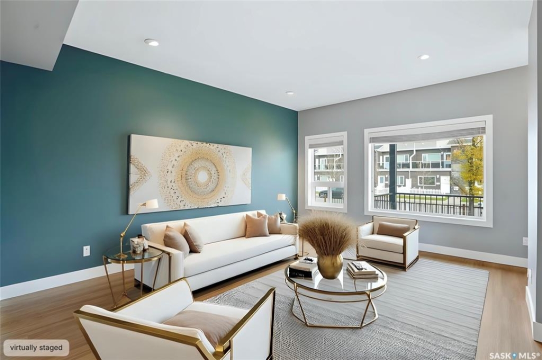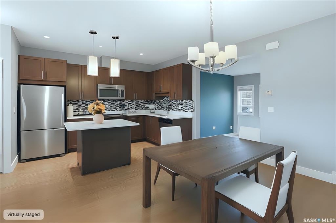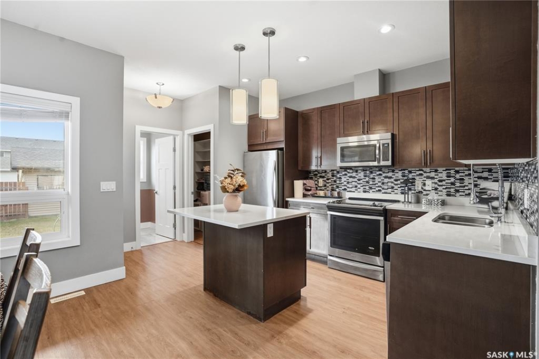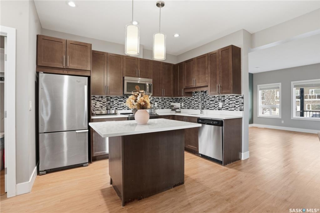 Stunning Townhome in Evergreen! Quality-built by Riverbend Developments this fully finished 4-bedroom, 4-bath home with a single detached garage offers the perfect blend of style, comfort, and convenience. Inside, you'll find elegant finishes throughout — luxury vinyl plank flooring, quartz countertops, maple cabinetry, and stainless steel appliances. The open-concept main floor flows seamlessly from a covered front porch to a covered rear deck and private fenced backyard, ideal for both relaxing and entertaining. Upstairs features three spacious bedrooms, two full bathrooms. The fully developed basement adds a versatile family room, an additional bedroom, and a full bath — perfect for guests or a home office. Recent updates include new basement flooring (2025) and duct cleaning (2025). Additional highlights: central A/C, second-floor laundry, and a single detached garage. Superbly located within 5 minutes' walking distance to two elementary schools and 4 minutes' walk to Evergreen Square (restaurants, convenience store, clinic, chiropractic & more), with easy access to Aspen Ridge shopping center, Willowgrove, and University Heights amenities. Move-in ready and beautifully maintained — a must-see in Evergreen!