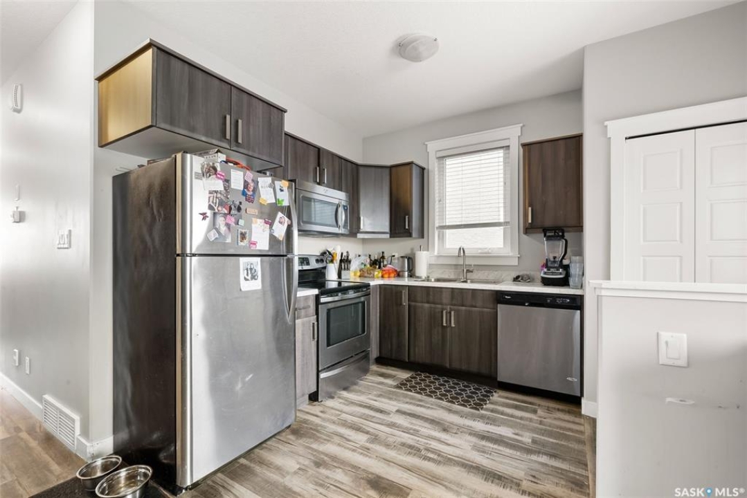 Located in the sought-after Skyview neighbourhood, this property offers a smart way to live comfortably while having tenants pay down the mortgage or lease the entire building out to generate cashflow. The main floor features a bright open layout with a well-planned kitchen finished in grey cabinetry and has stainless-steel appliances. Two bedrooms, a four-piece bathroom and an in-suite laundry closet complete this level. Upstairs is a fully regulated two-bedroom suite with its own entrance and a nearly identical floor plan. One bedroom includes a walk-in closet and the kitchen opens onto a covered private balcony—an inviting space for morning coffee or evening relaxation .The basement provides even more versatility with a rec room, wet bar, two additional bedrooms, a and a full four-piece bathroom. Both the main and second-floor suites have separate utilities for gas, power and water, as well as individual furnaces, water heaters and central air. Designated parking stalls are located at the rear of the property. Whether you're looking for a comfortable home with income potential or a long-term investment to cashflow, this property is a rare on market opportunity!