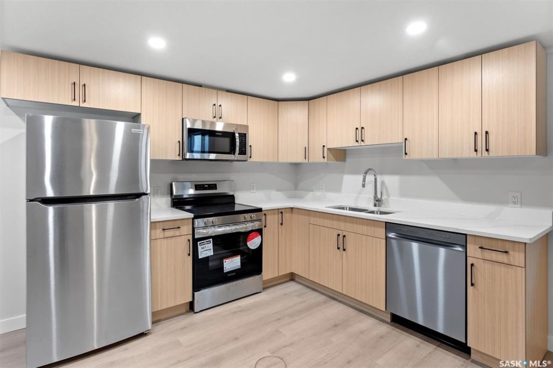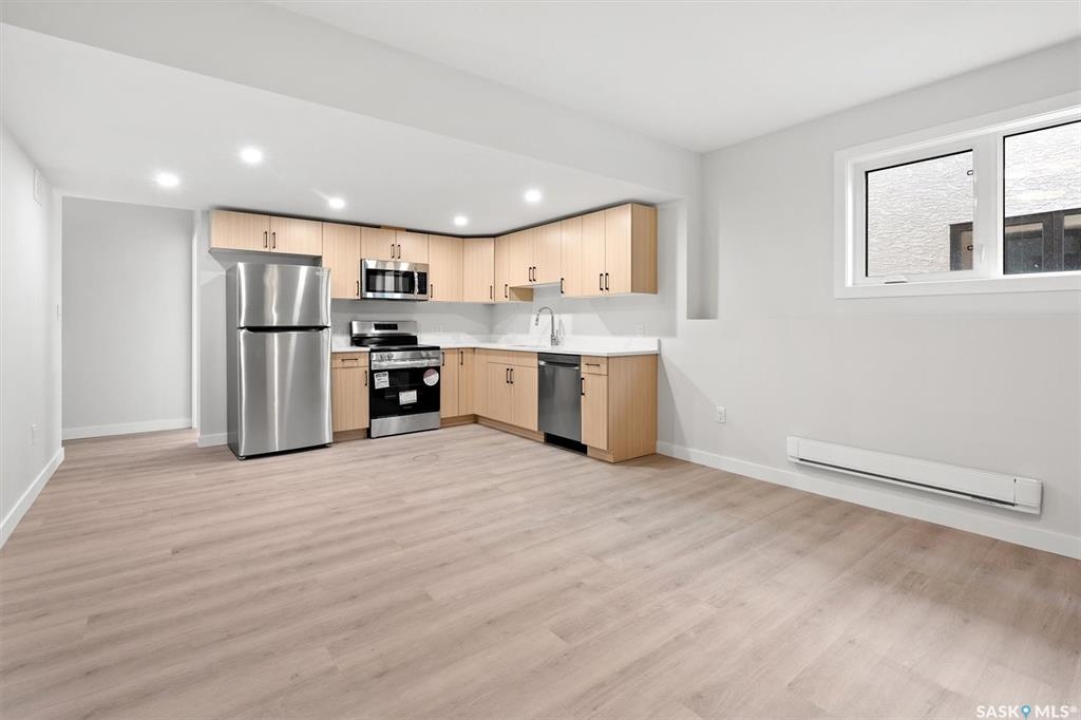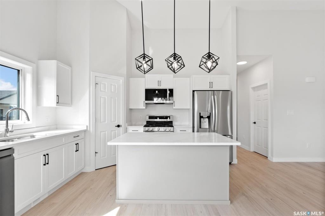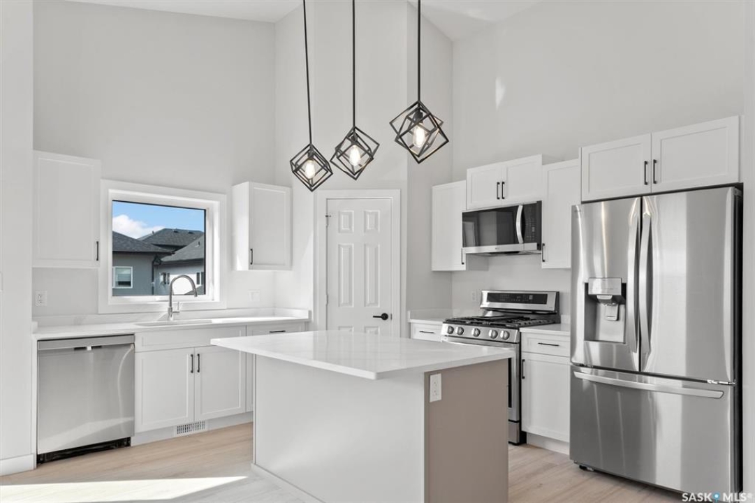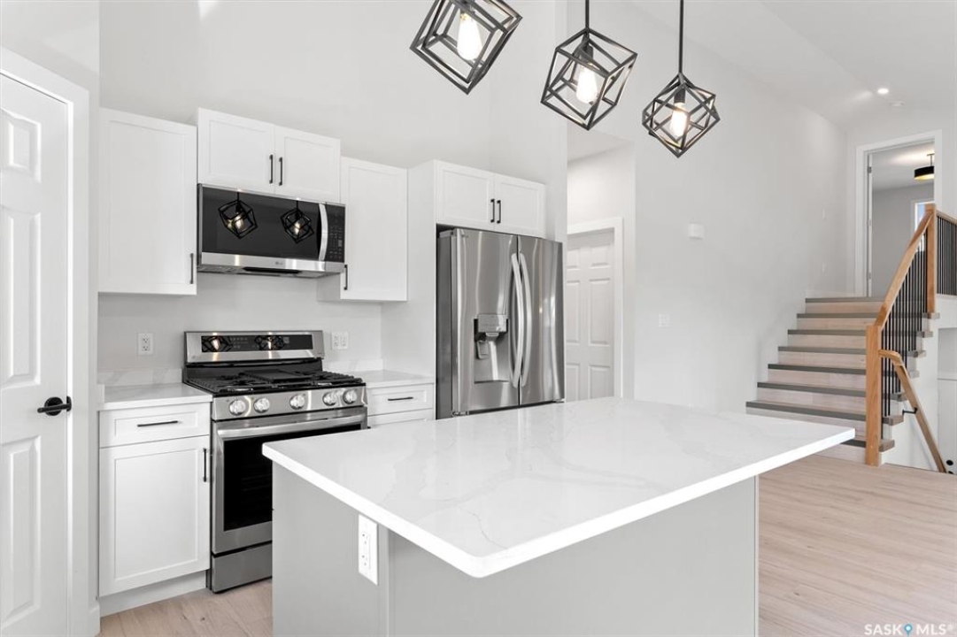 Welcome to 206 Flynn Bend located in Rosewood. This is a brand new built, and an absolute must see, fully finished with 2-bedroom legal suite. The exterior features stucco finish. A double attached garage. When entering, you are greeted with a large foyer. Up to the main level you have an open concept family room featuring vaulted ceilings and lots of windows allowing plenty of natural light. The kitchen features quartz countertop, island, tons of cabinetry and counter space, and a full set of Stainless steel appliances. Off the kitchen is the dining area which has access to the back yard. Also on the main level there are two additional bedrooms along with a 4 pc bathroom. Up to the second level you will find the primary bedroom which features a massive ensuite with soaker tub, his and hers sink, walk in tiled shower and a large walk in closet with custom shelving. The basement comes fully developed and features an additional bedroom on the owner's side which can also be used as an office. And there is a fully finished two bedroom legal suite which will help the mortgage payments. This home is close to the Rosewood business center, Costco, schools and easy access to circle drive. Come view this lovely home today!