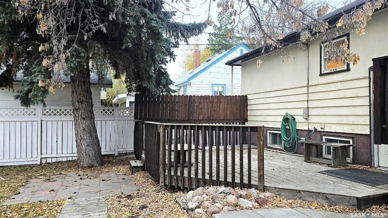 Location, Location, just off Broadway! Solid 2 + 1 Bedroom, 2 Bathroom raised Bungalow with 14' x 22' Detached Garage. Home needs Cosmetic Updates but features Newer Boiler (Hot Water Radiant Heat), New Water Heater October 2025, 100 Amp Electrical Panel & Newer Shingles on House & Garage. The Basement has never been used as a Suite, but has the potential to be modified for one (Kitchenette, Bathroom, Shared Laundry). The Fenced Yard includes Large Deck, Detached Garage & 2 Extra Parking spots off the Alley. Solid Home in a Prime Eastside Location, easy to arrange viewing with any Saskatchewan Real Estate Agent.
