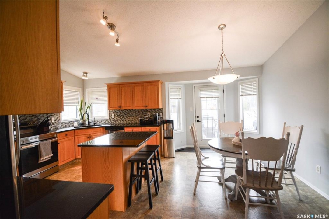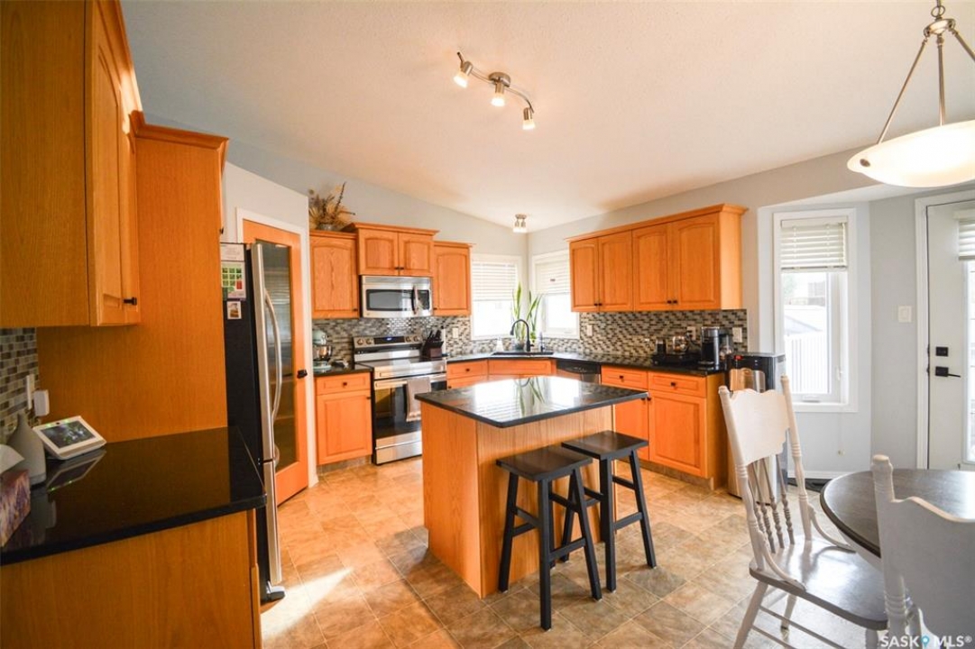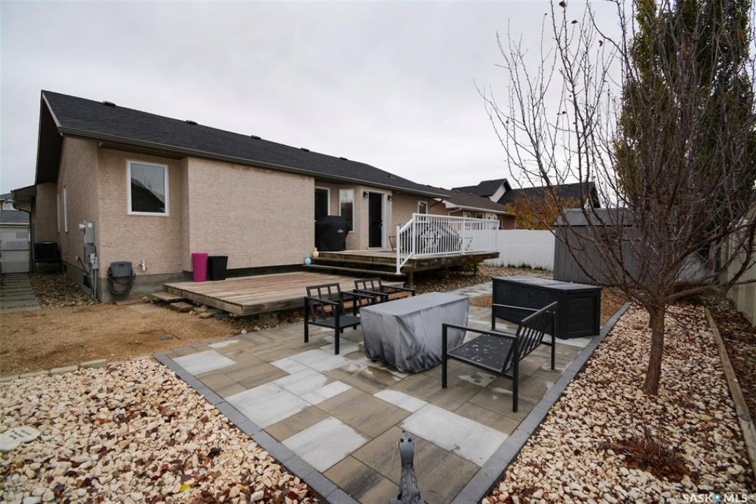 Welcome to 7364 Maple View Crescent, a meticulously maintained 2006 bungalow ideally situated on a quiet crescent in the highly desired Maple Ridge neighborhood. This superb 1,328-square-foot home offers a practical floor plan with three spacious main-floor bedrooms and two bathrooms, making it an excellent choice for families, especially with its close proximity to schools. The home is in outstanding condition and radiates a bright, open feel, enhanced by vaulted ceilings throughout the main living area. Upon entry, you're greeted by a large, inviting living room, a convenient coat closet, and access to the oversized 24' x 24' double attached garage, which is heated for year-round comfort. The open-concept kitchen and dining area is a chef's delight, featuring oak cabinetry, a walk-in corner pantry, stainless steel appliances, granite countertops, and an island with an eat-up bar. From the dining room, step out onto the south-facing, fully landscaped backyard, which includes a large two-tiered deck and a zero-scaped yard for minimal upkeep. The main floor also features two generously sized secondary bedrooms, a four-piece bathroom, main-floor laundry, and a spacious primary bedroom complete with a walk-in closet and a three-piece ensuite. The basement offers excellent potential for future development, with exterior walls already framed, insulated, and vapor-barriered. Value-added features include central vacuum, central air conditioning, an HRV system, and a beautifully landscaped front yard designed for low maintenance. Recent updates include new shingles (2022), fresh paint throughout the home and on the trim, modern black accents such as door handles and faucets, new bathroom lighting, (updated in 2025) a new patio and shed (2022), and updated eavestroughs and fascia. With all these thoughtful upgrades and features, this home is truly move-in ready.