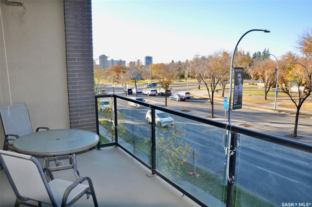 Welcome to this lovely condo in J.B. Black Estates situated across the street from the University of Saskatchewan and both Royal University and Jim Pattison Children's Hospitals. Ideally located within close proximity to downtown, river valley and walking trails and the vibrant Broadway District, this great unit offers two bedrooms two baths large bright open living area featuring hardwood and tile floors. natural gas fireplace, ample kitchen cabinets with granite counter tops, snack bar and tile backsplash and offers stainless steel appliances with natural gas range plus 9 ' ceilings. The primary bedroom has double walk thru closets leading to a spa like ensuite with 6'ft jet tub. double sinks, granite counter tops and heated tile floors. The main bathroom has a walk in shower with body jets and full glass doors. Also includes a large storage room/ laundry room, one underground parking stall and storage locker plus natural gas on balcony for your bbq or grill. Call your Realtor to view this fine condo today!