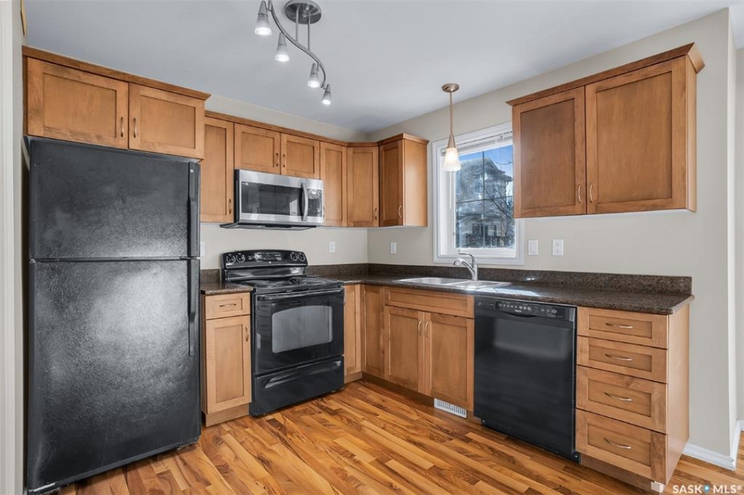 Welcome to the Bordeaux complex in Stonebridge! This fully developed corner-unit townhouse offers 3 bedrooms, 2 surface parking stalls, and a bright, spacious layout. The main floor has been freshly painted with a large living room off the front entrance, perfect for entertaining or relaxing. The kitchen is well-appointed with maple cabinetry, granite countertops, a pantry, and all appliances included. Just off the kitchen, the dining area provides plenty of room for family meals and offers direct access to the patio doors. Upstairs, you'll find 3 comfortable bedrooms with new carpet and a full bathroom. The fully finished basement adds even more living space with a cozy family room, laundry area, and plenty of storage. Located in the heart of Stonebridge, you'll enjoy unmatched convenience with quick access to Stonegate Shopping Centre (Walmart, restaurants, services, and more), nearby Market Mall, and numerous parks such as Blair Nelson Park and Howard Harding Park—perfect for outdoor activities and family fun. Stonebridge also offers excellent schools, playgrounds, walking paths, and easy access to public transit, making this a fantastic family-friendly neighborhood. This pet-friendly complex allows a pet that does exceed 40lbs.